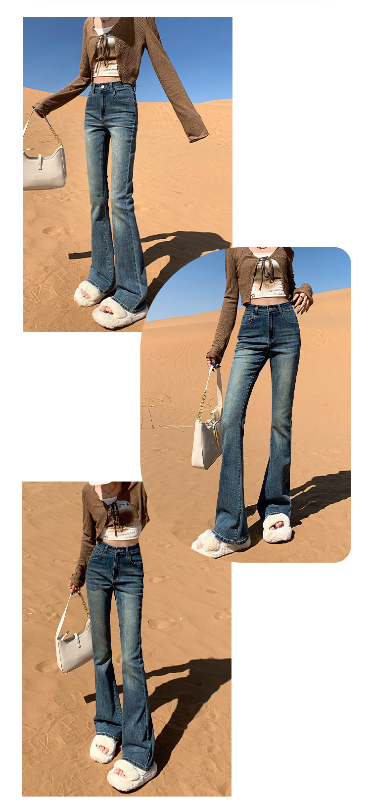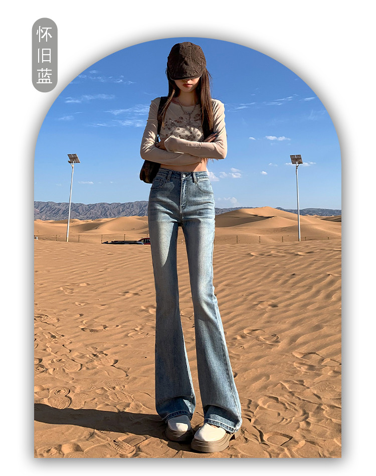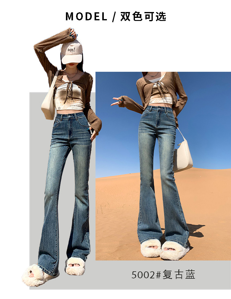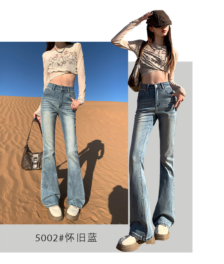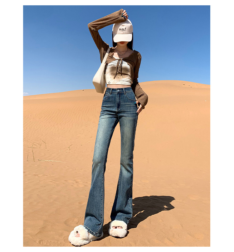 复古蓝高腰微喇牛仔裤女春秋季2025新款弹力修身显瘦马蹄喇叭裤子