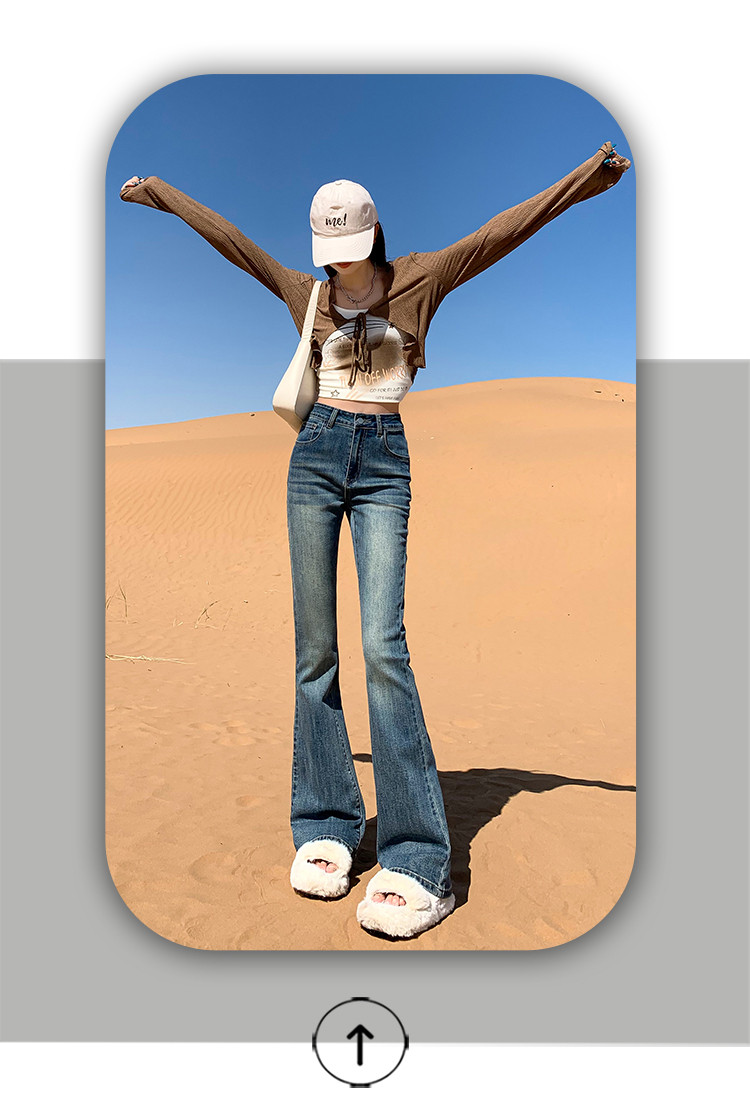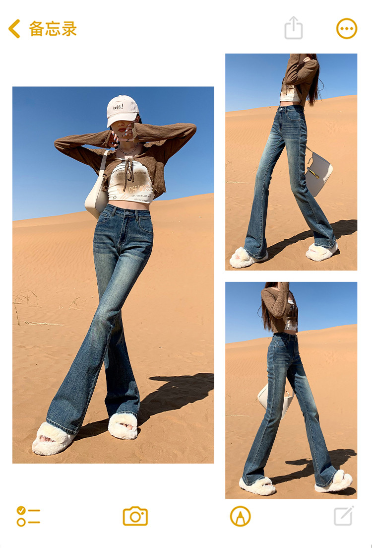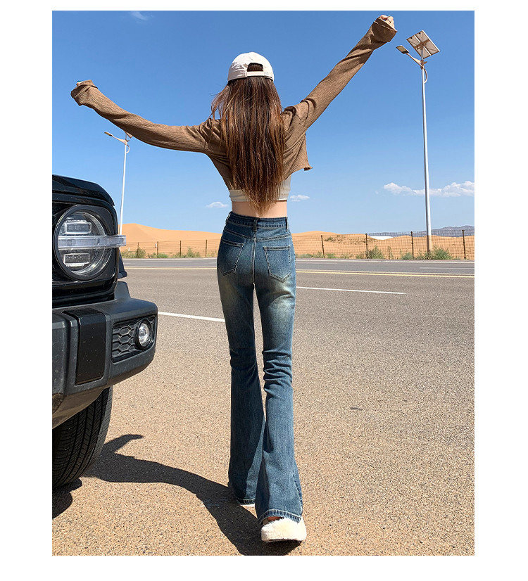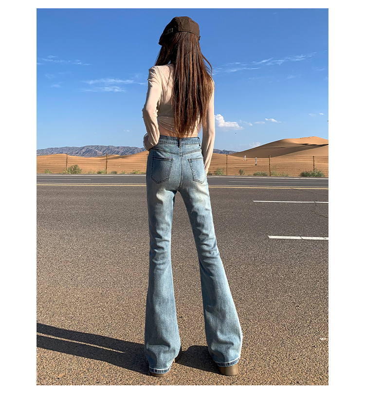 复古蓝高腰微喇牛仔裤女春秋季2025新款弹力修身显瘦马蹄喇叭裤子