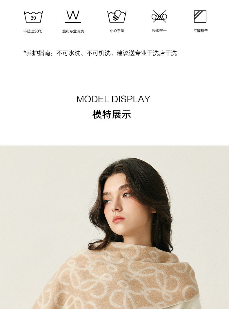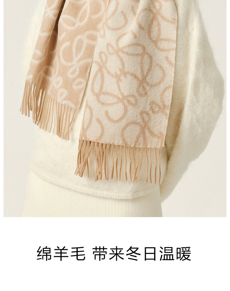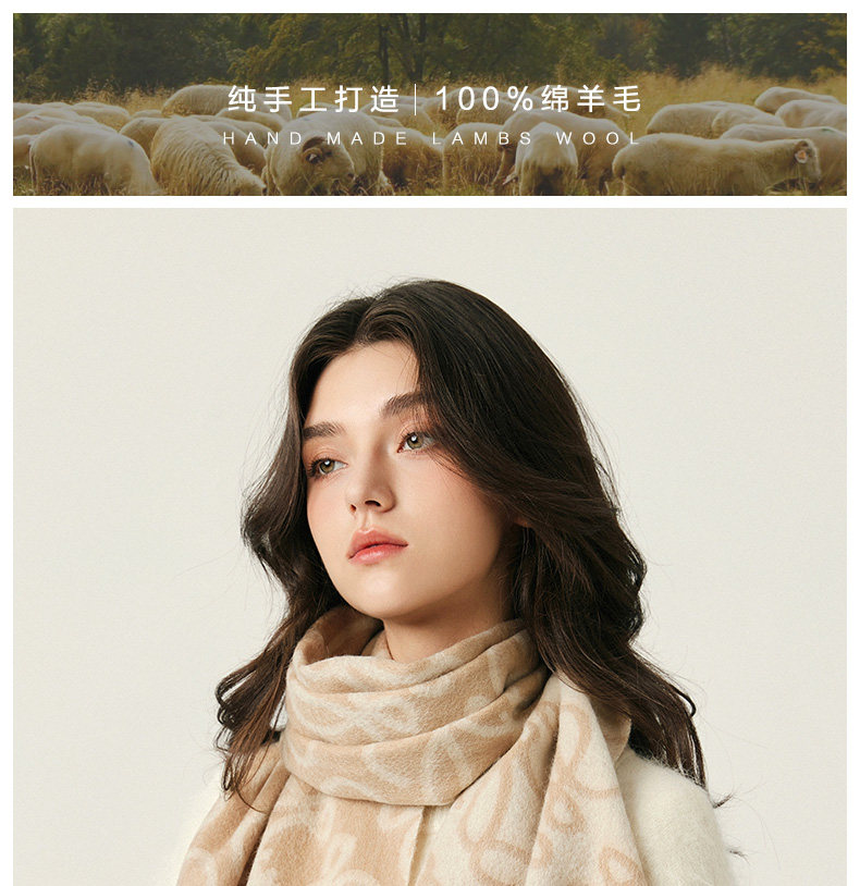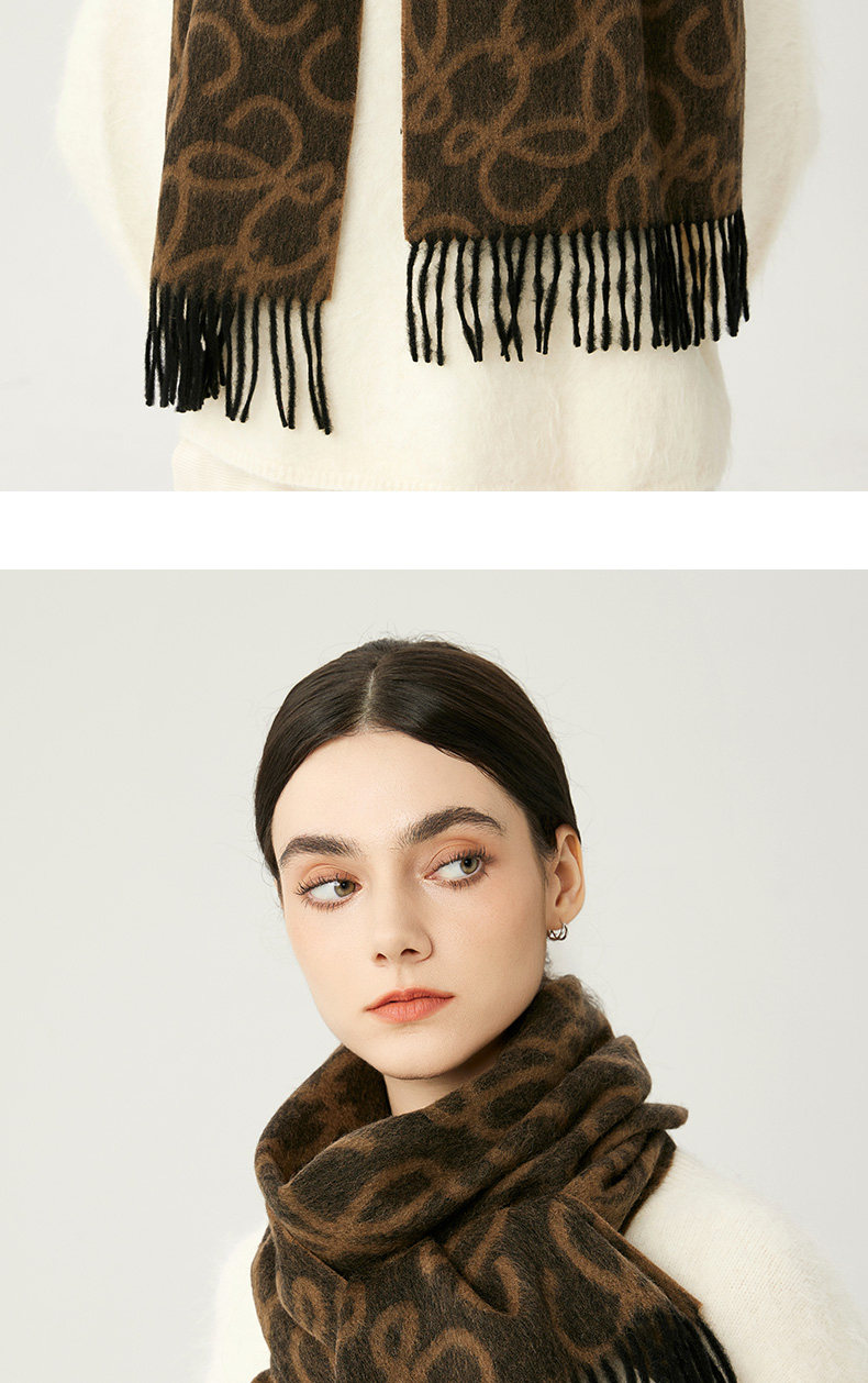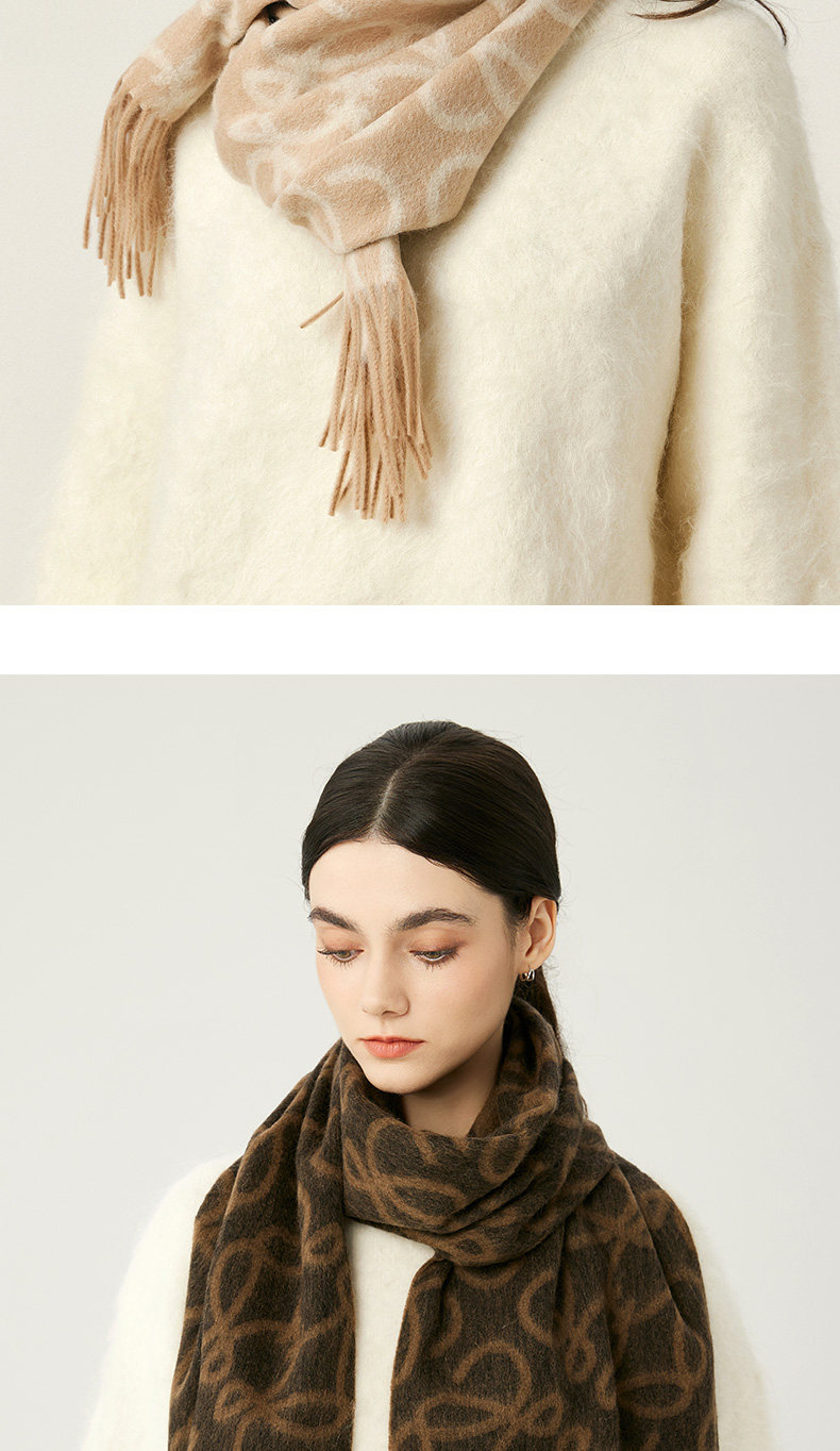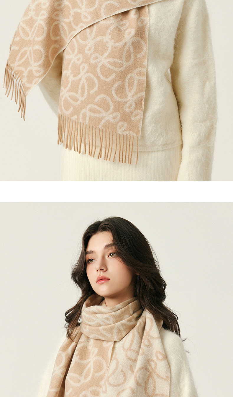 High-End 100% Wool Double-Sided Scarf for Women, Versatile and Warm for Winter, Letter Design, 2025 New Model, Luxurious Shawl, Dual-Use
