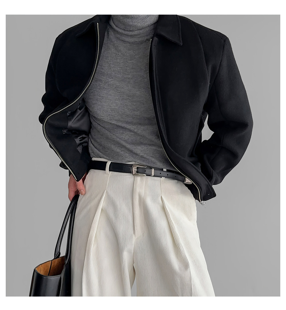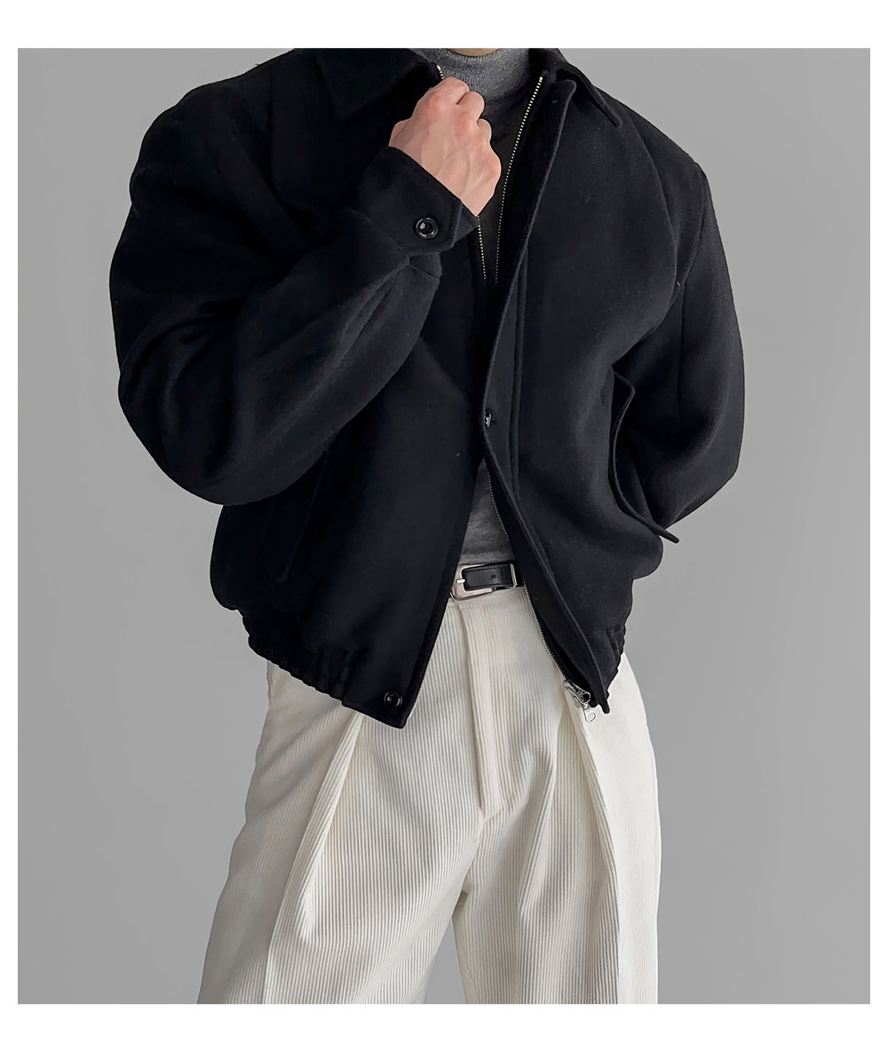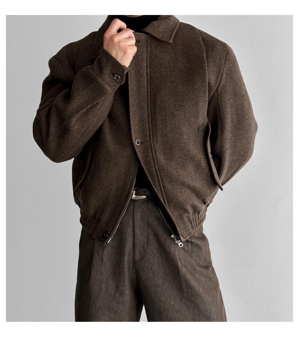 Short Melard-Style Woolen Coat for Men, American Retro Lapel Jacket, Thickened for Autumn and Winter, Versatile Biker Jacket, Trendy