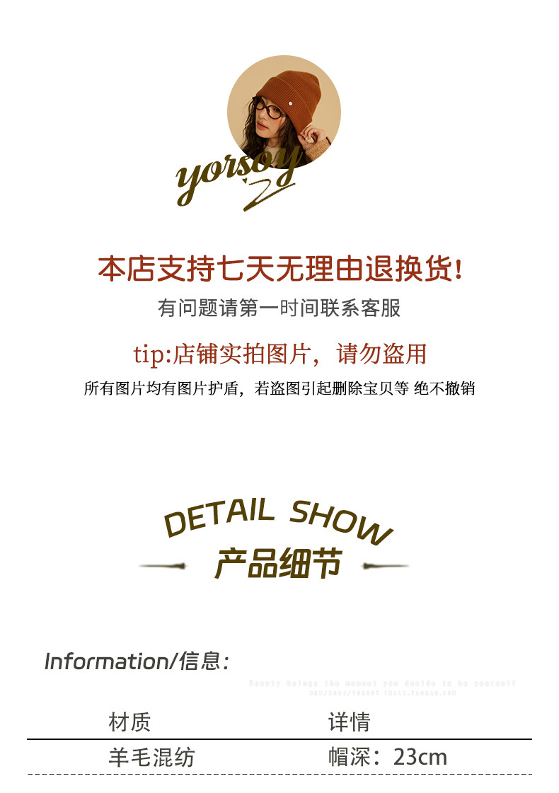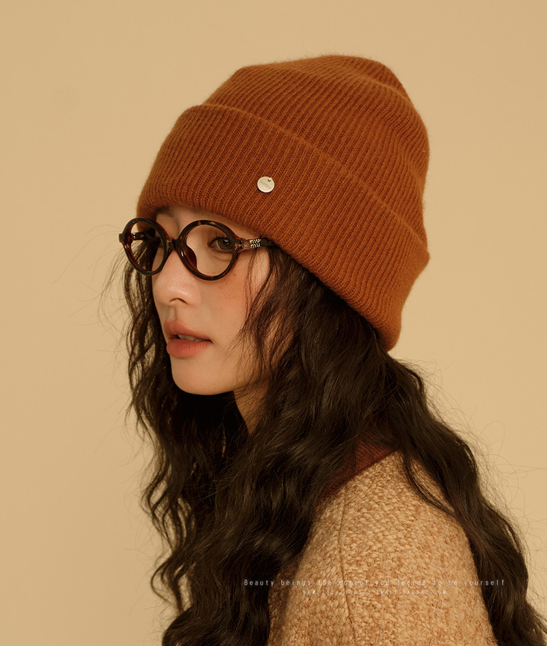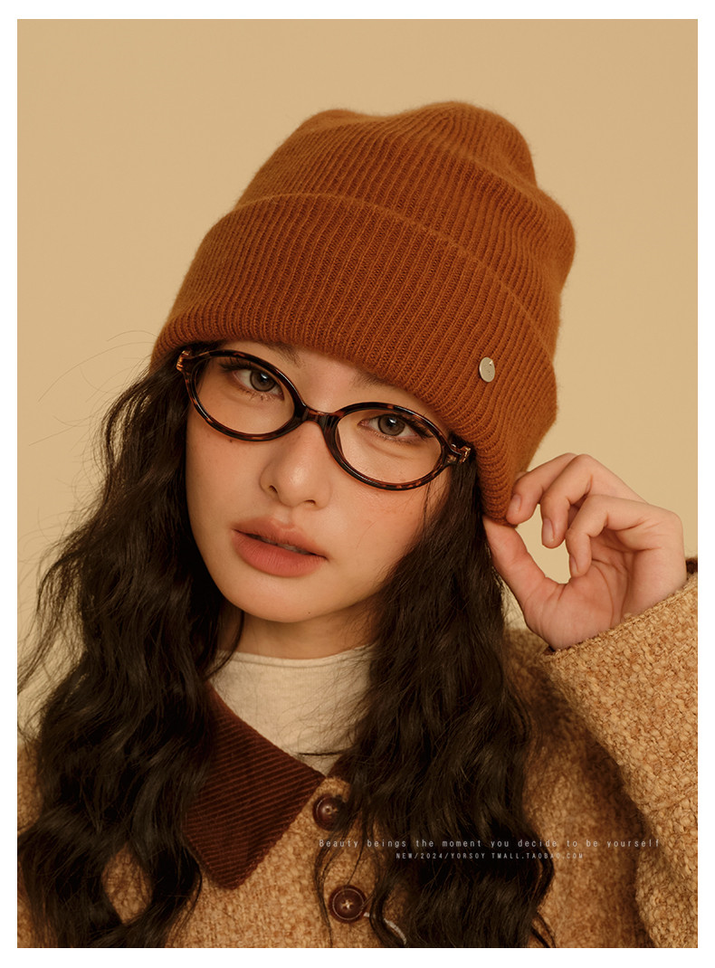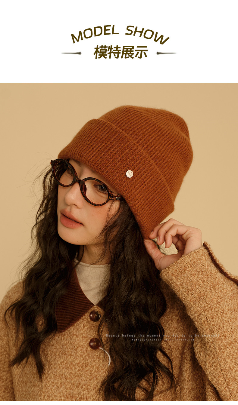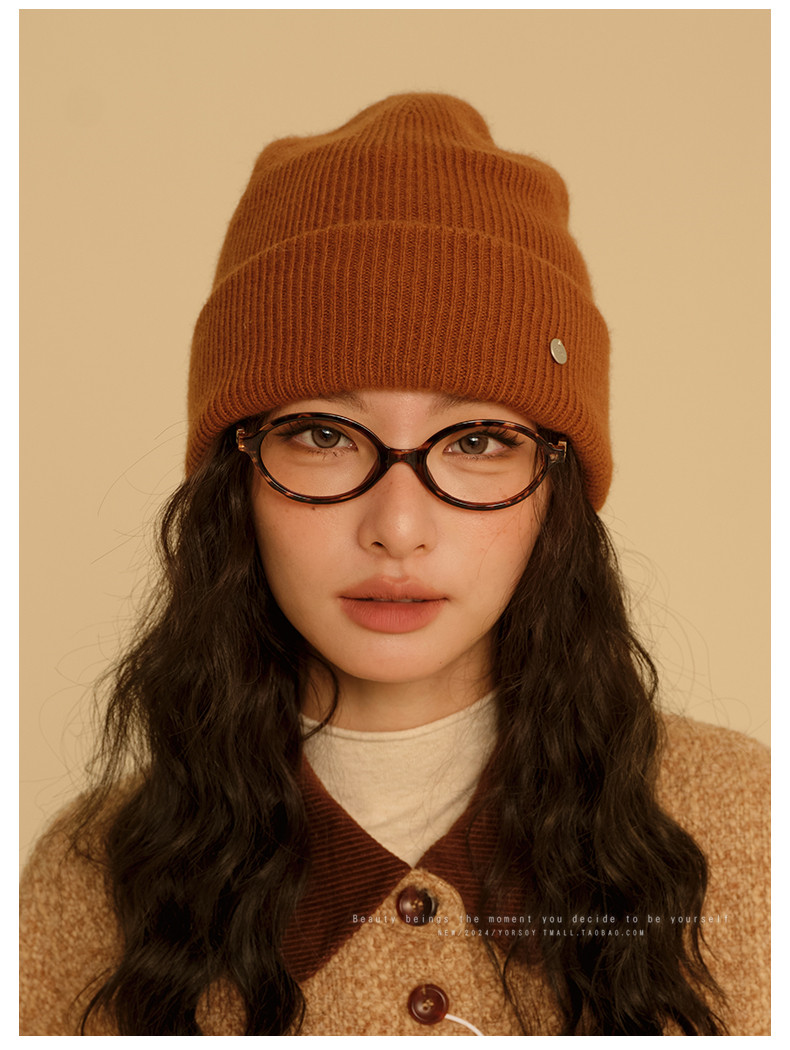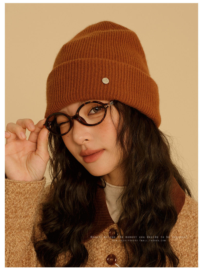 Retro Maillard Caramel-Colored Knitted Woolen Hat for Women in Winter, Gentle Pumpkin-Colored Preppy Style Turban Hat