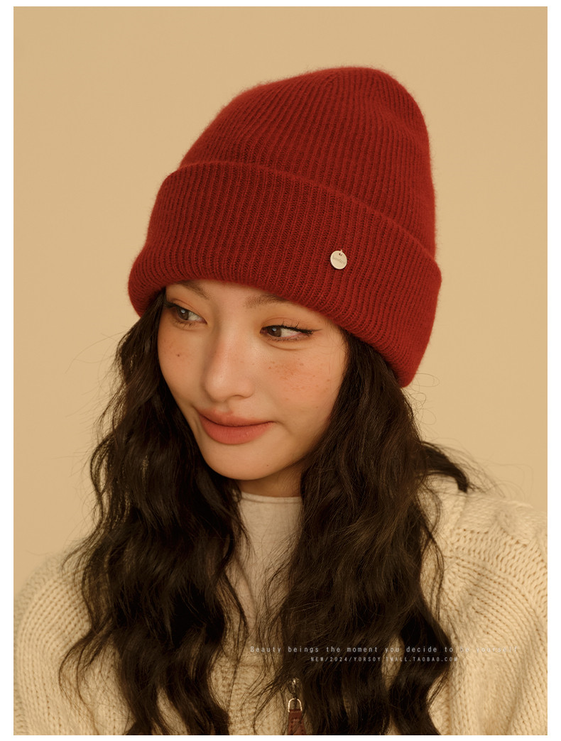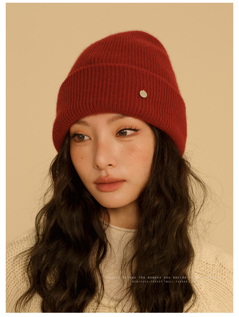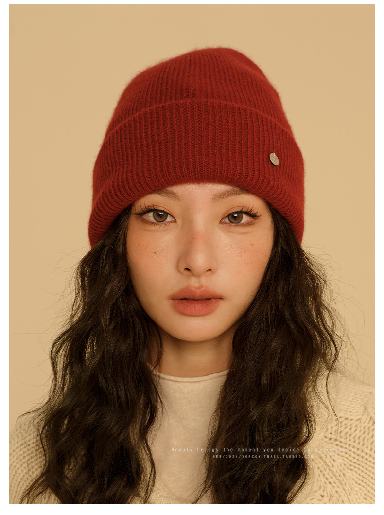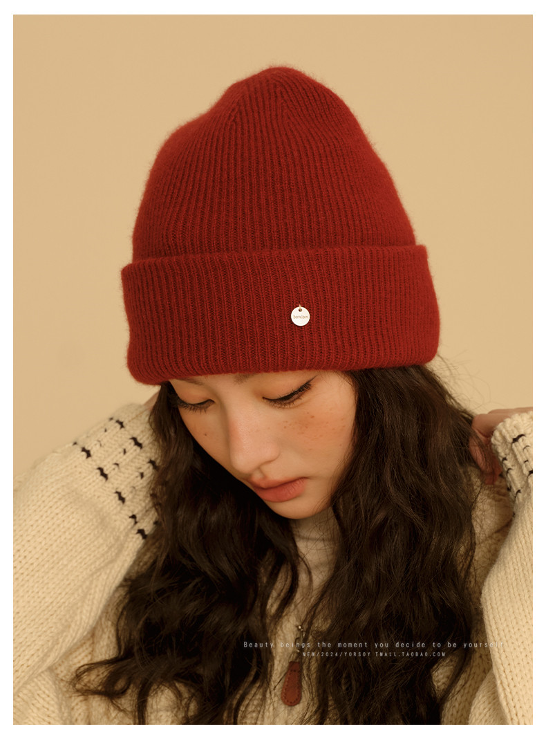 Retro Ankora Red Hat for Women, Winter New Year Knitted Woolen Hat, Student Warm Ear Protection Woolen Cap