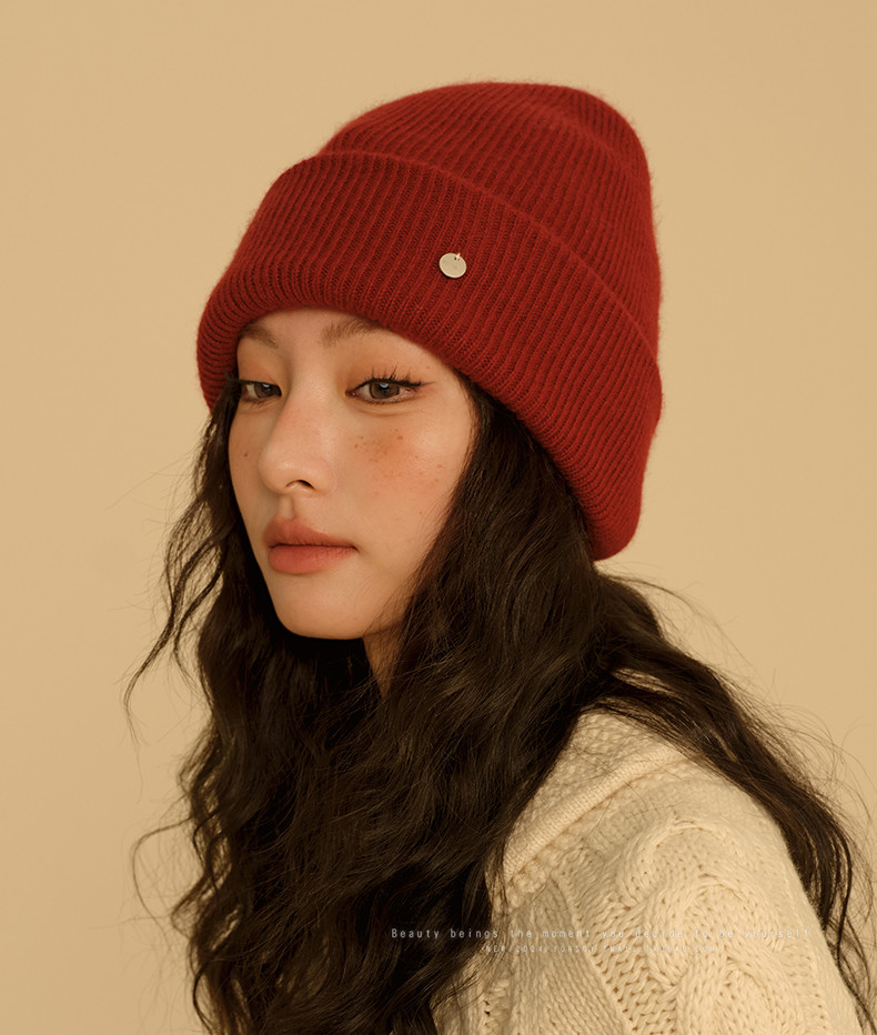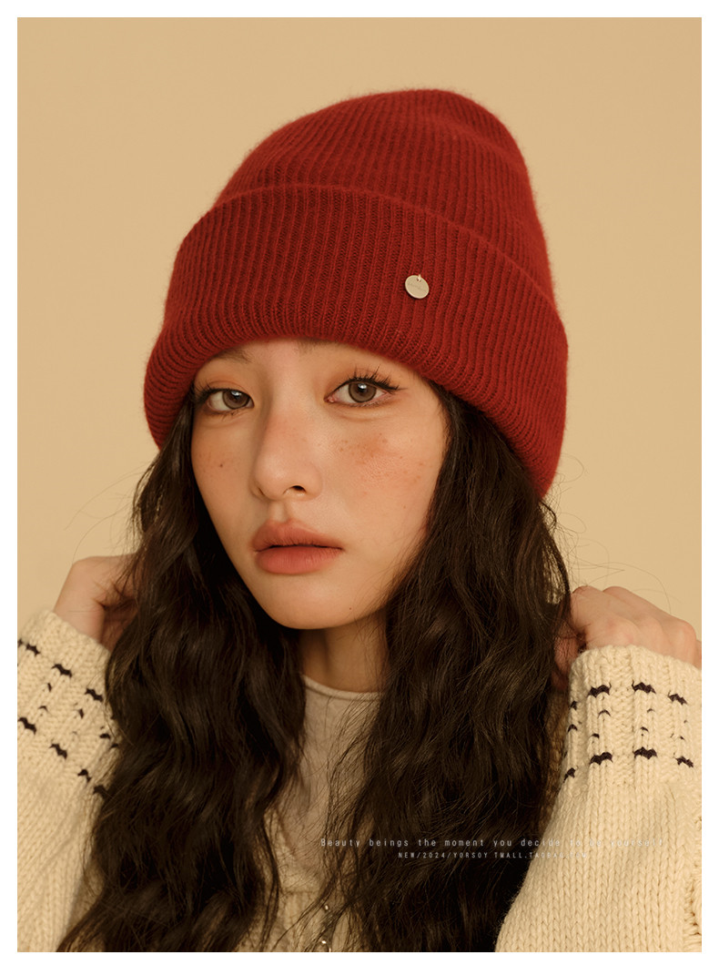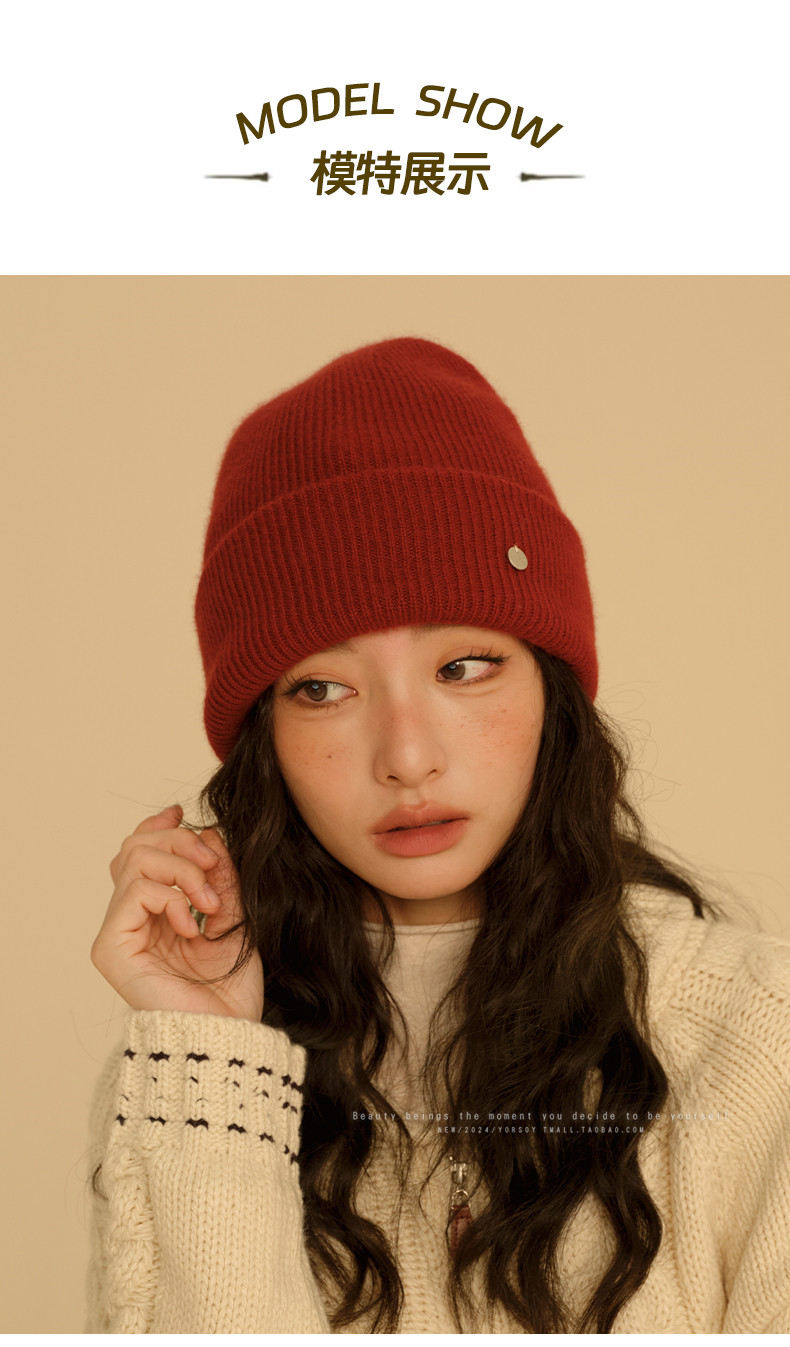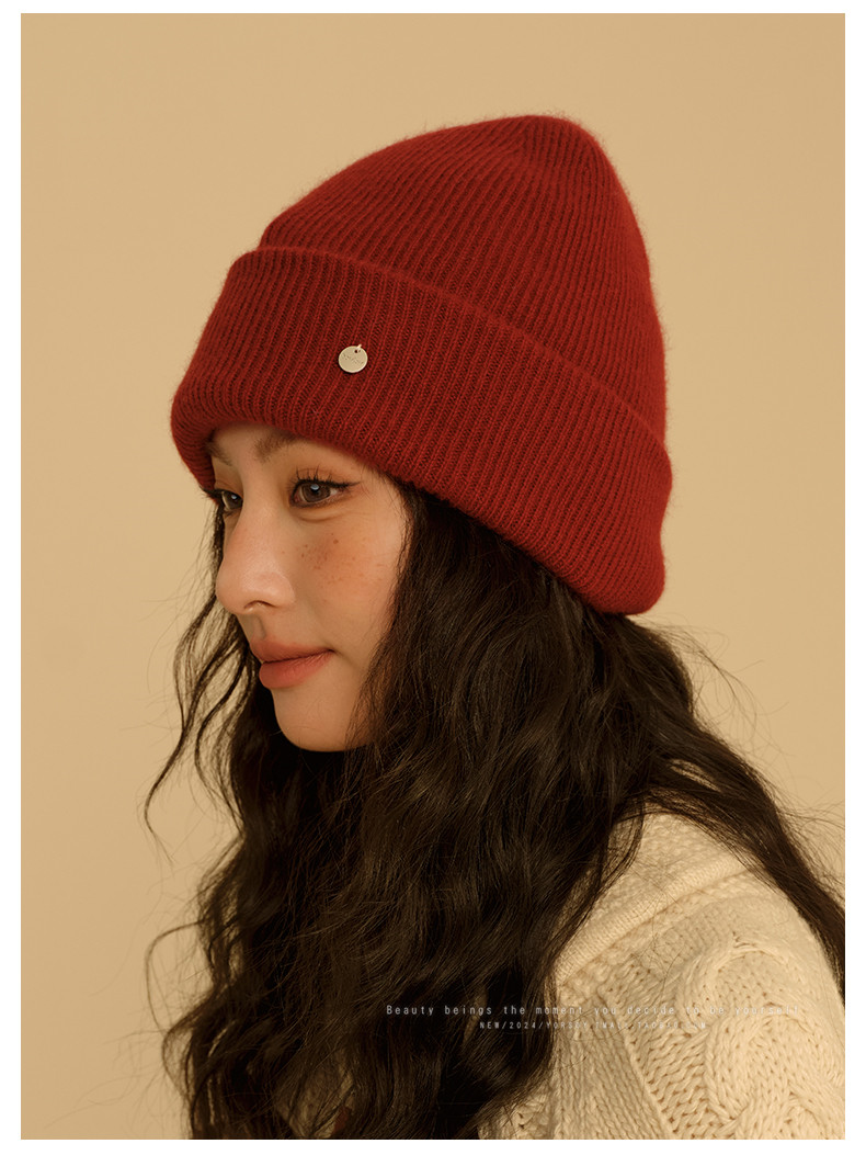 Retro Ankora Red Hat for Women, Winter New Year Knitted Woolen Hat, Student Warm Ear Protection Woolen Cap