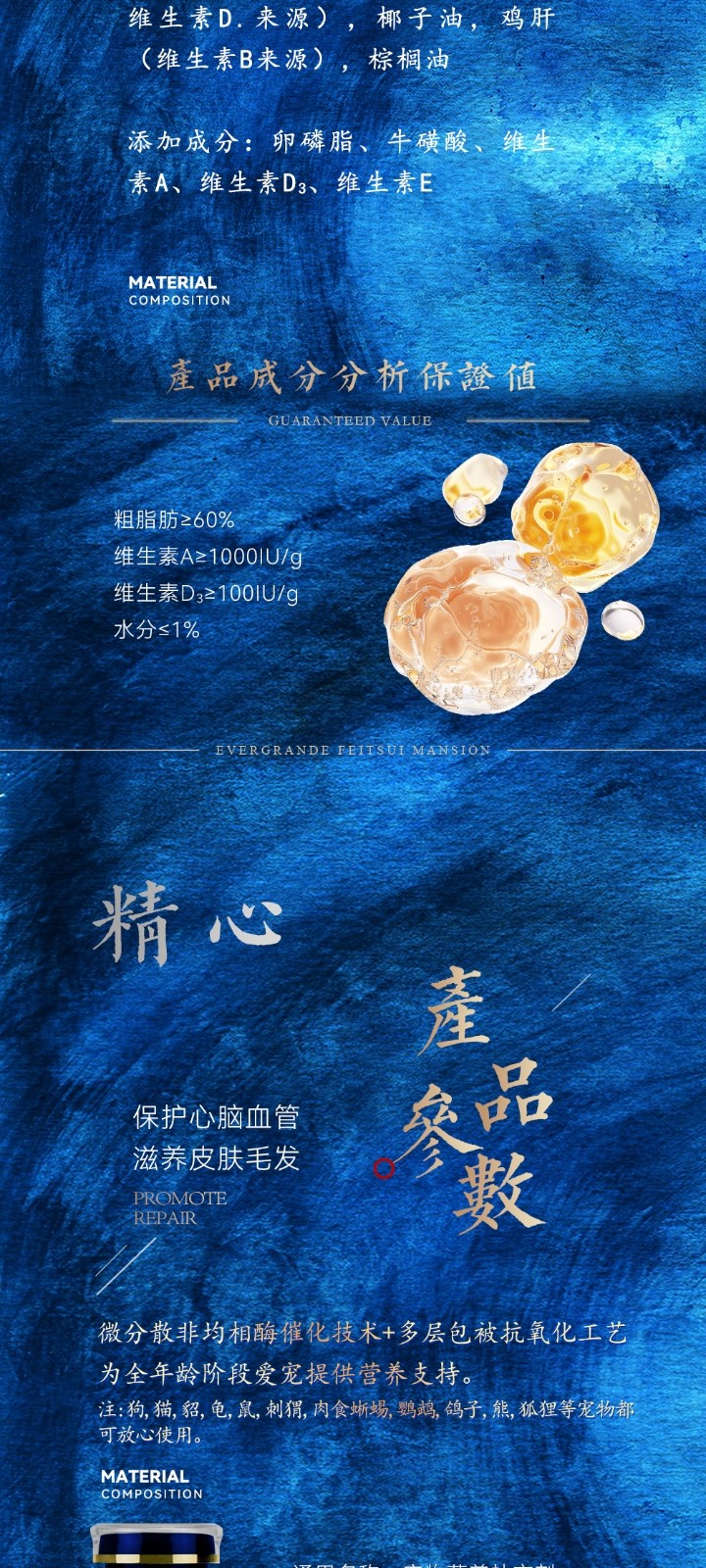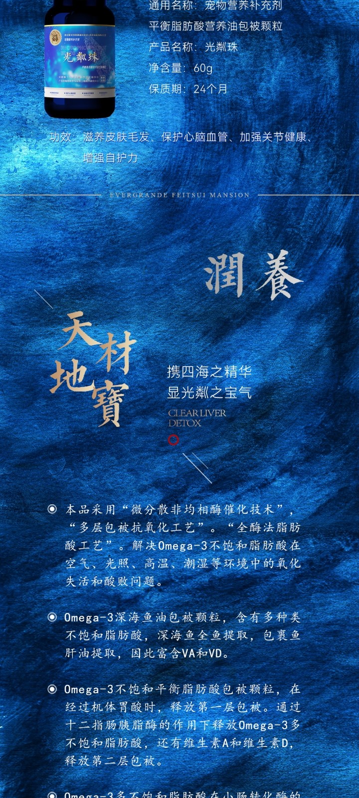 Eternal pampering sparkling beads coated solid small particle fish oil for cats, dogs, pets, hair beauty skin care, hair care and joint protection