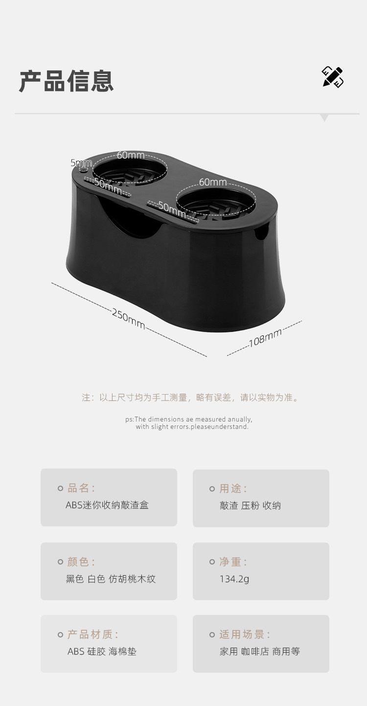 Color Classification Abs Knock Box Tamper Base - White,Abs Knock Box Tamper Base - Black,Abs Slag Tapping Powder Base Walnut Grain,Abs Slag Tapping Powder Base Black + Dark Wood Color Powder + Light Powder Distributor 51mm,Abs Slag Tapping Powder Base Black + Dark Wood Color Powder + Light Powder Distributor 58mm,Abs Slag Tapping Powder Base White + Dark Wood Color Powder + Light Powder Distributor 51mm,Abs Slag Tapping Powder Base White + Dark Wood Color Powder + Light Powder Distributor 58mm,Abs Slag Pressing Powder Black + Dark Wood Pressing Powder + Light Cloth Powder + Walnut Flower Needle + Water Distribution Net 51mm,Abs Slag Pressing Powder Black + Dark Wood Pressing Powder + Light Cloth Powder + Walnut Flower Needle + Water Distribution Net 58mm,Abs Slag Pressing Powder White + Dark Wood Pressing Powder + Light Cloth Powder + Walnut Flower Needle + Water Distribution Net 51mm,Abs Slag Pressing Powder White + Dark Wood Pressing Powder + Light Cloth Powder + Walnut Flower Needle + Water Distribution Net 58mm,Abs Slag Knocking Powder Base Black 51mm Package Three,Abs Slag Knocking Powder Base Black 58mm Package Three,Abs Knock Slag Pressing Powder Base White 51mm Package Three,Abs Slag Knocking Powder Base White 58mm Package Three,Abs Slag Tapping Walnut Wood + Constant Force Powder Press + Light Powder Distributor 51mm,Abs Slag Tapping Walnut Wood + Constant Force Powder Press + Light Powder Distributor 58mm,Abs Slag Pressing Walnut Wood + Constant Force Pressing Powder + Light Cloth Powder + Walnut Wood Drawing Needle + Water Distribution Net 51mm,Abs Slag Pressing Walnut Wood + Constant Force Pressing Powder + Light Cloth Powder + Walnut Wood Drawing Needle + Water Distribution Net 58mm,Abs Slag Tapping Powder Base Walnut Grain 51mm Package Three,Abs Slag Tapping Powder Base Walnut Grain 58mm Package Three