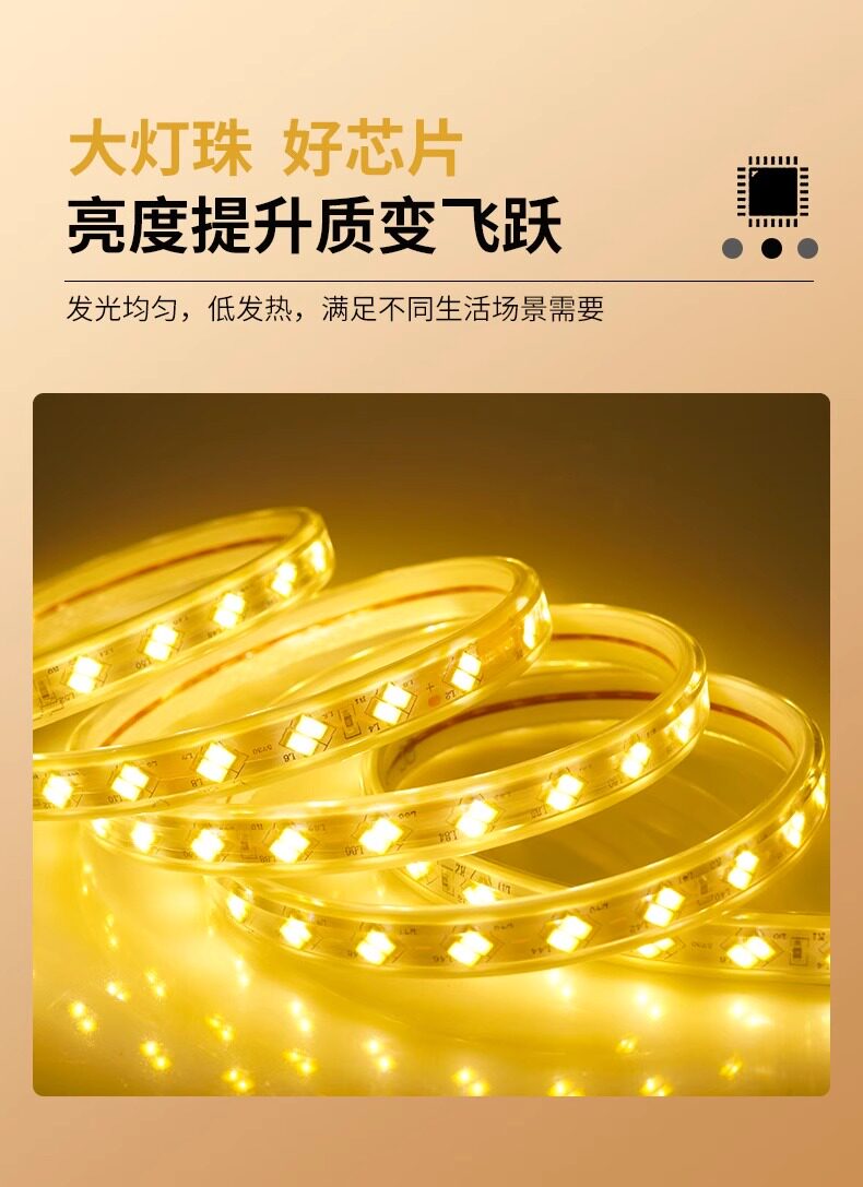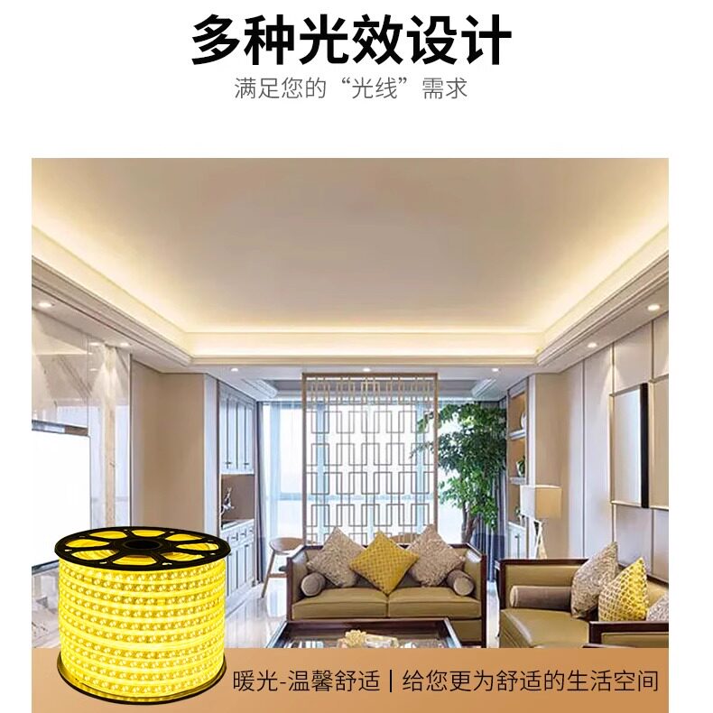 Led Strip Light Super Bright Outdoor Waterproof Engineering Atmosphere Light Outdoor Warm Light 220V Living Room Ceiling Light Strip