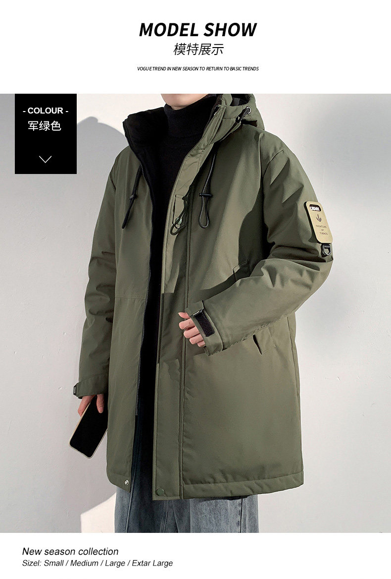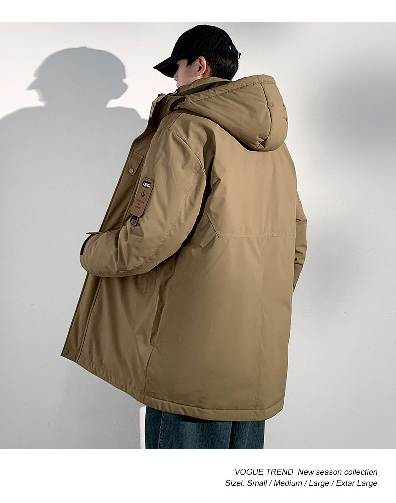 Jeanswest hooded cotton coat men's autumn and winter mid-length top 2025 new trendy loose cotton coat K