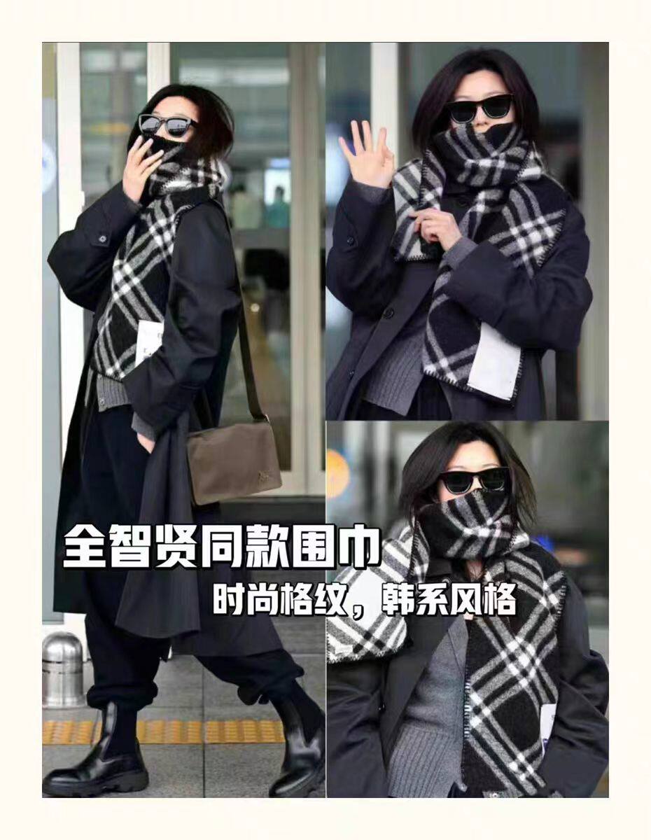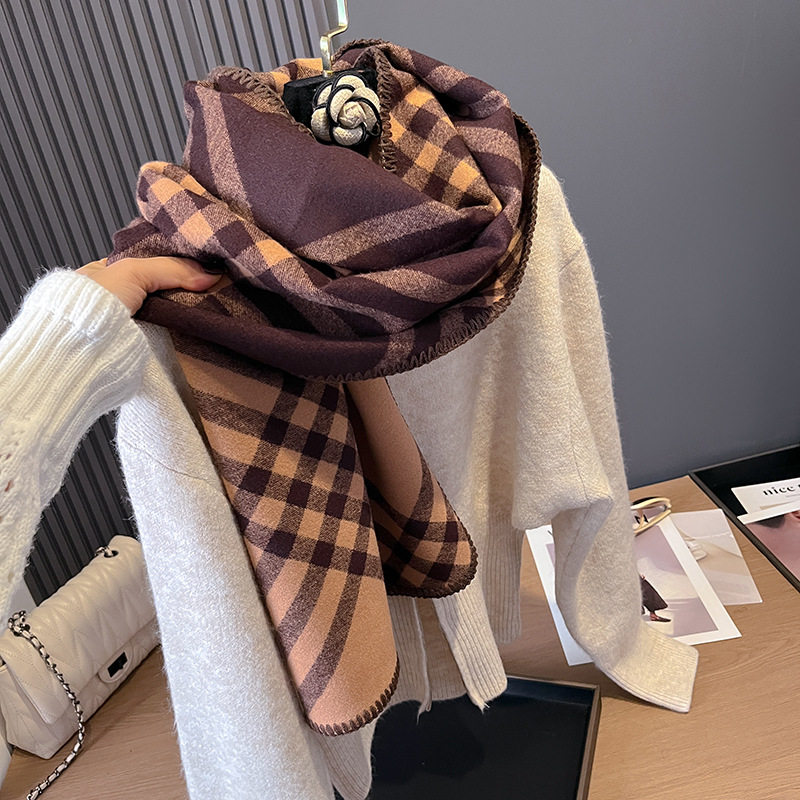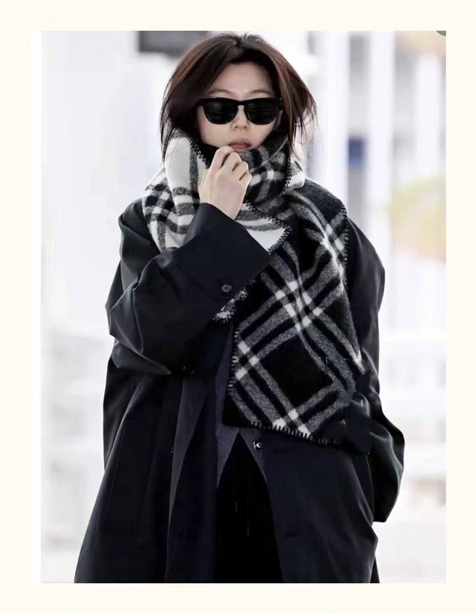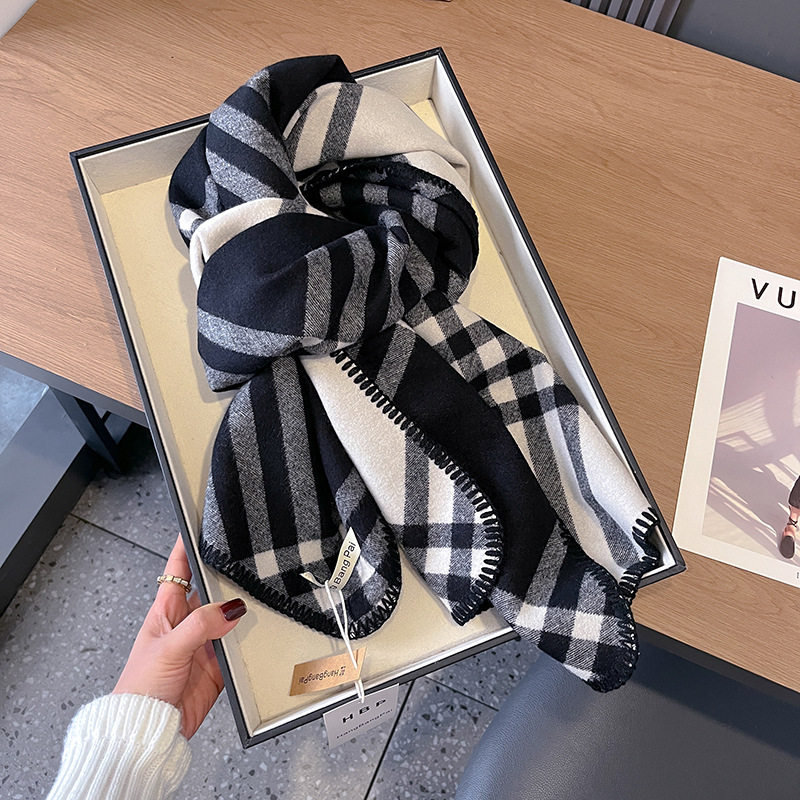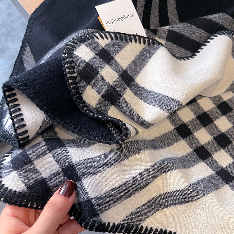 Jun Ji-hyun's same scarf for women 2024 new autumn and winter double-sided plaid warm scarf Korean style shawl and scarf