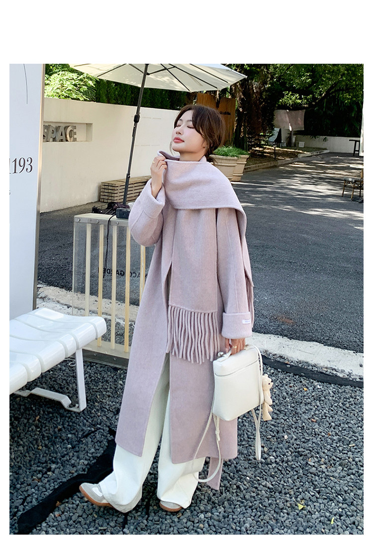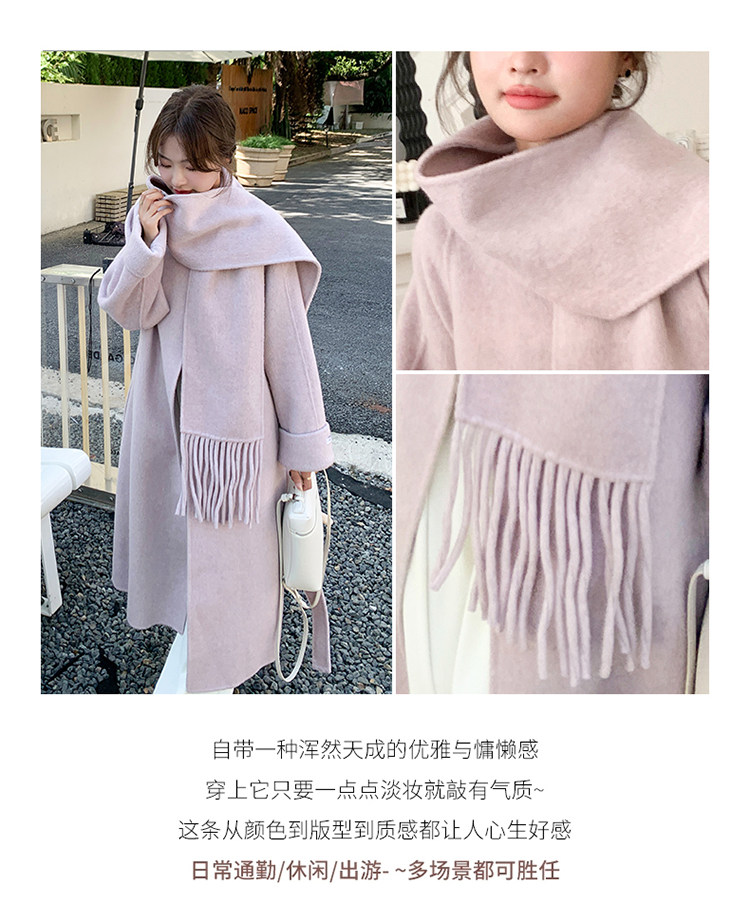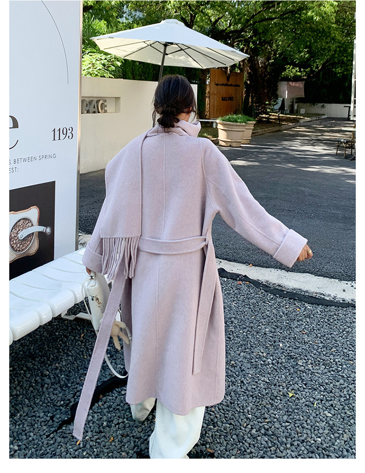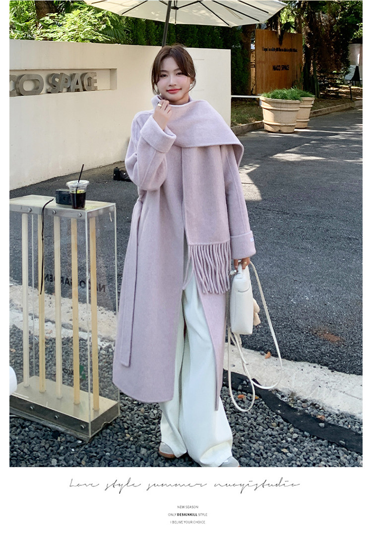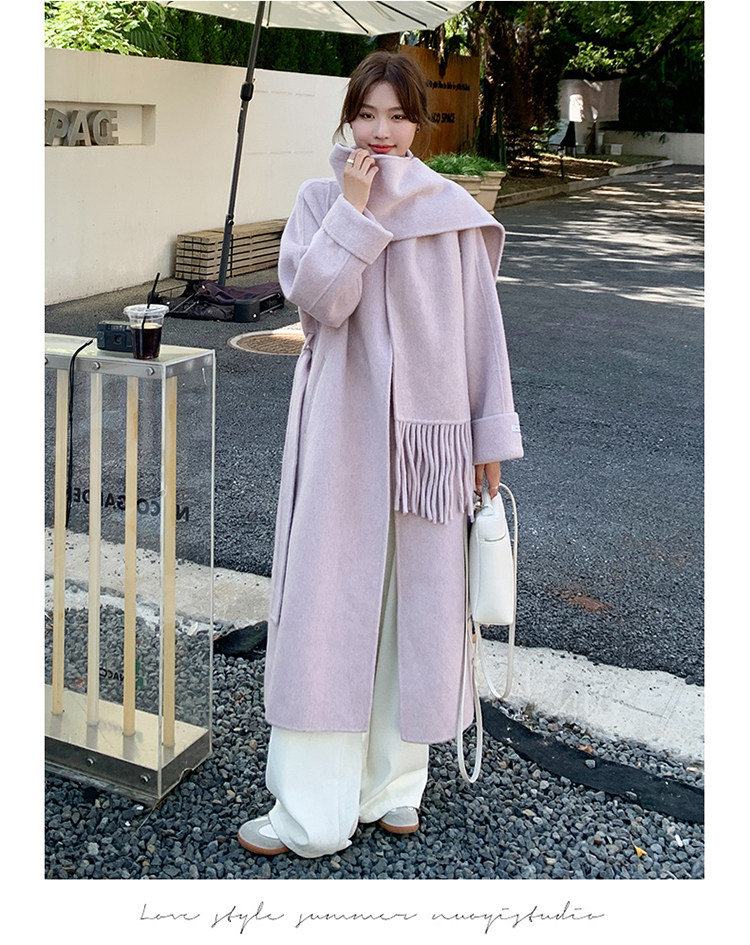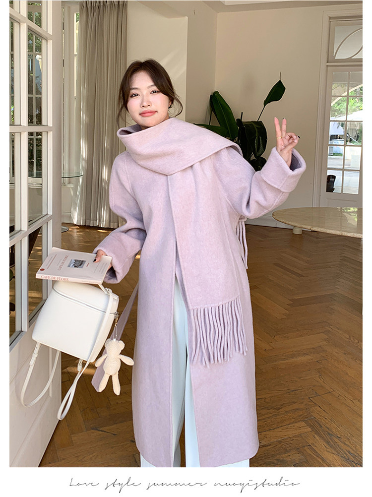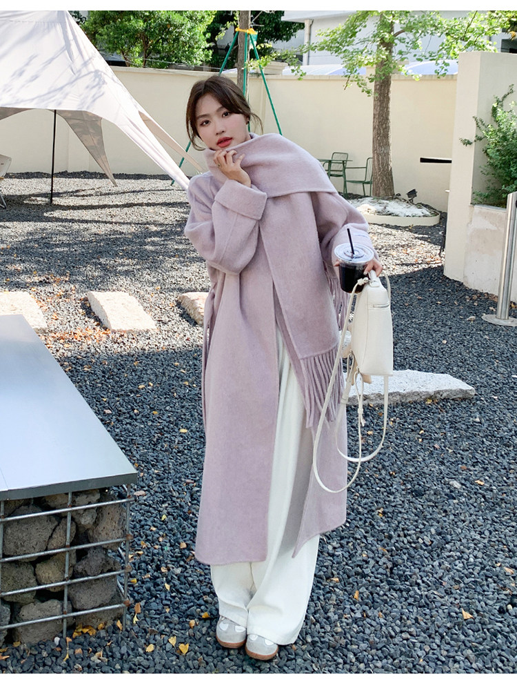 Purple high-end long over-the-knee double-sided wool coat for women 2025 winter new style temperament scarf woolen coat