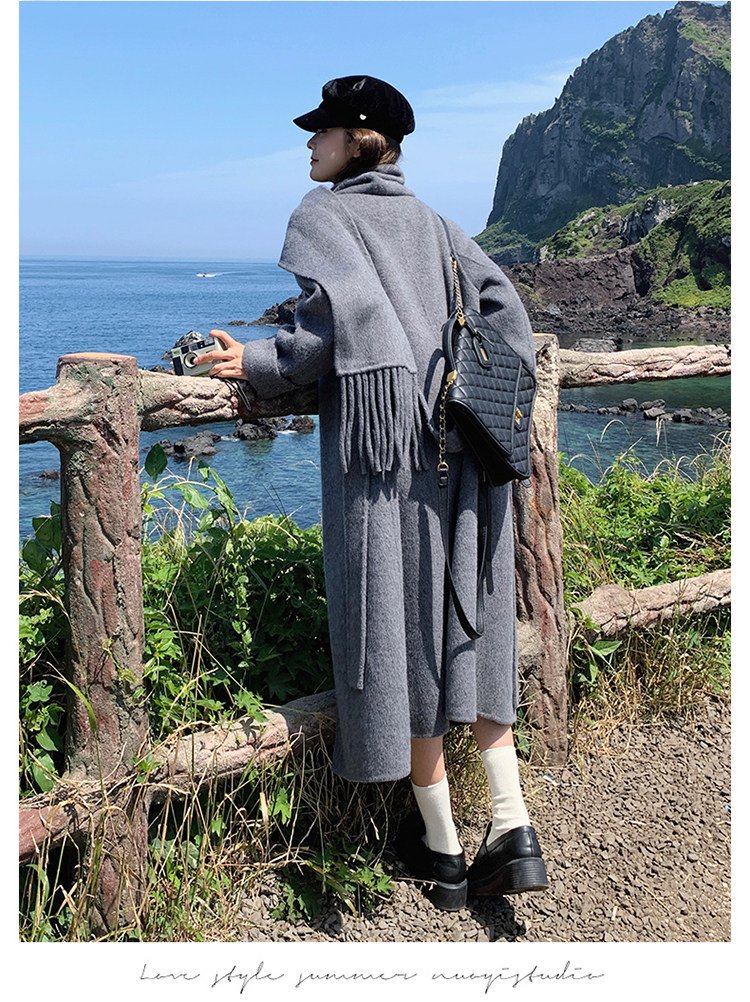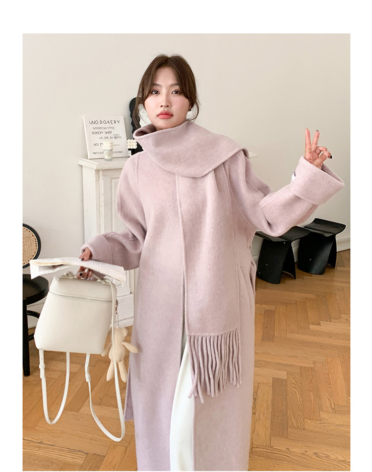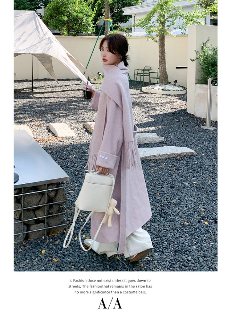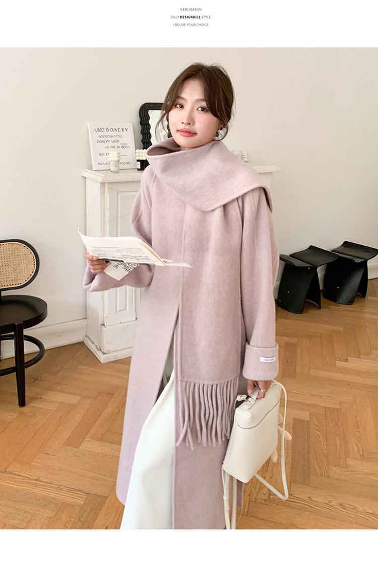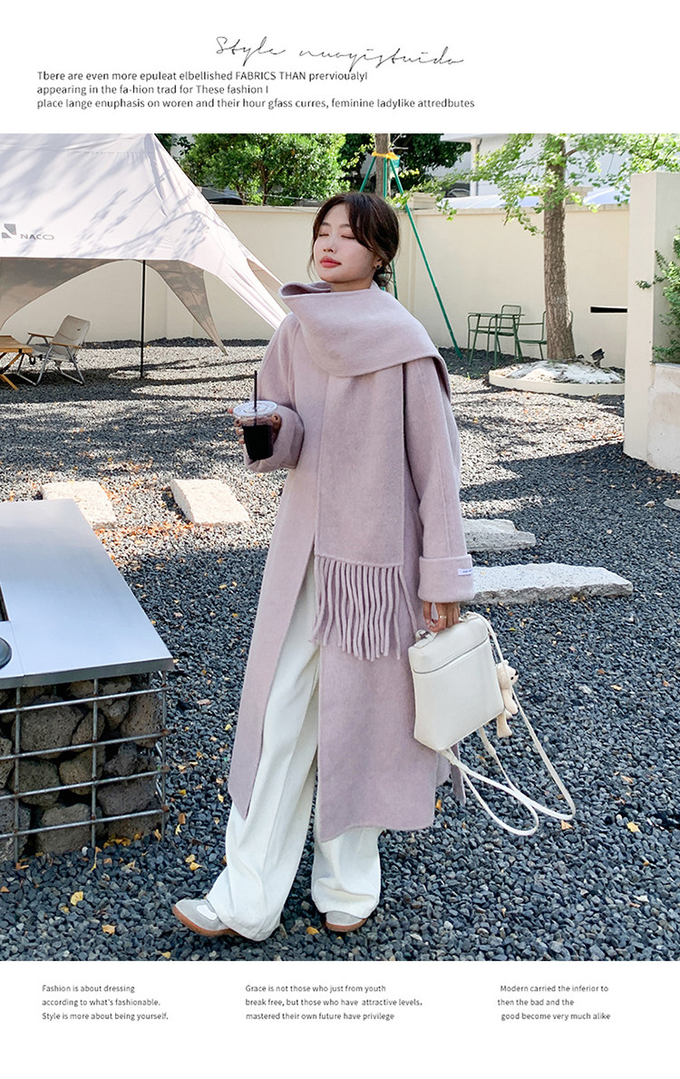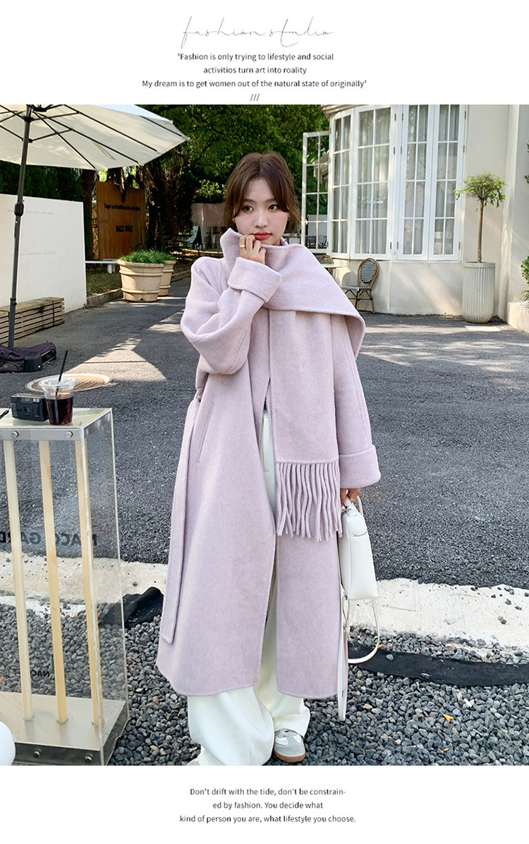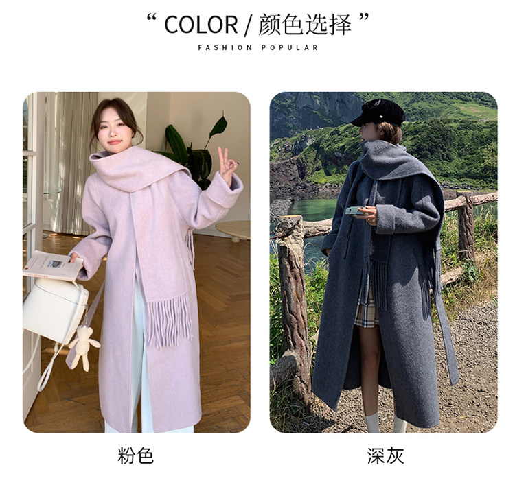 Purple high-end long over-the-knee double-sided wool coat for women 2025 winter new style temperament scarf woolen coat