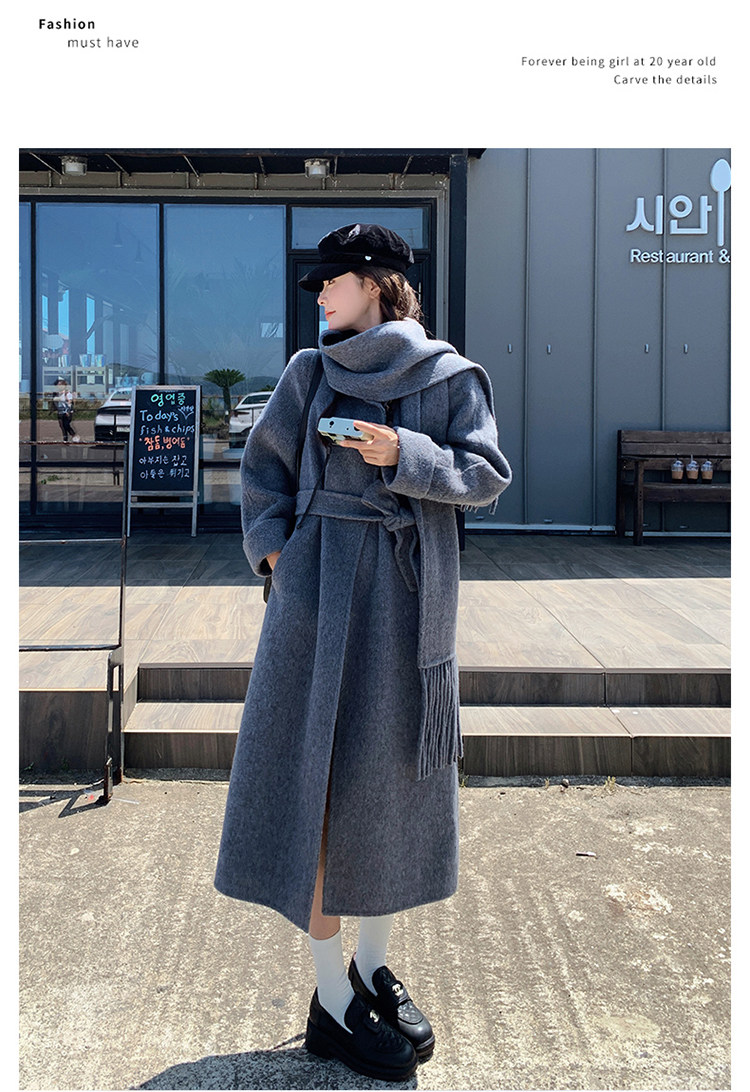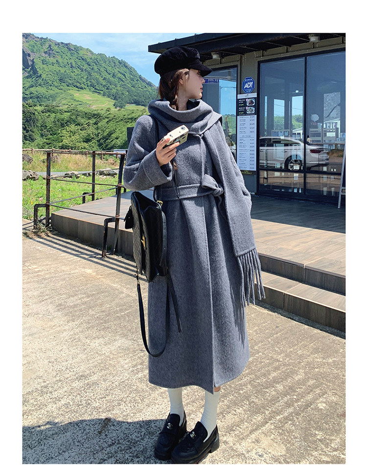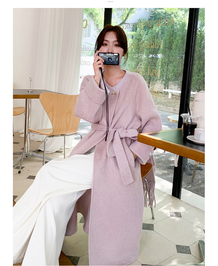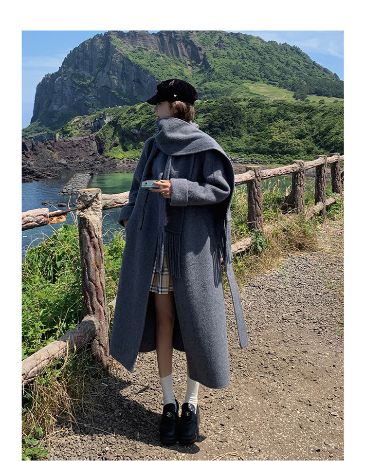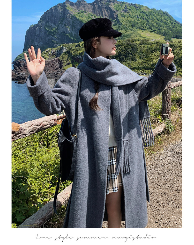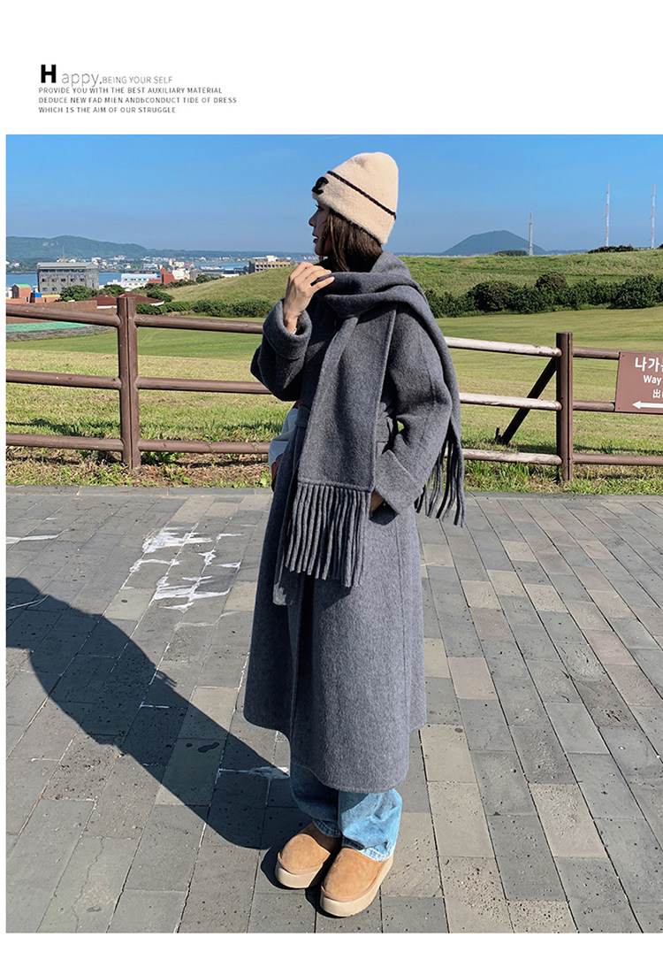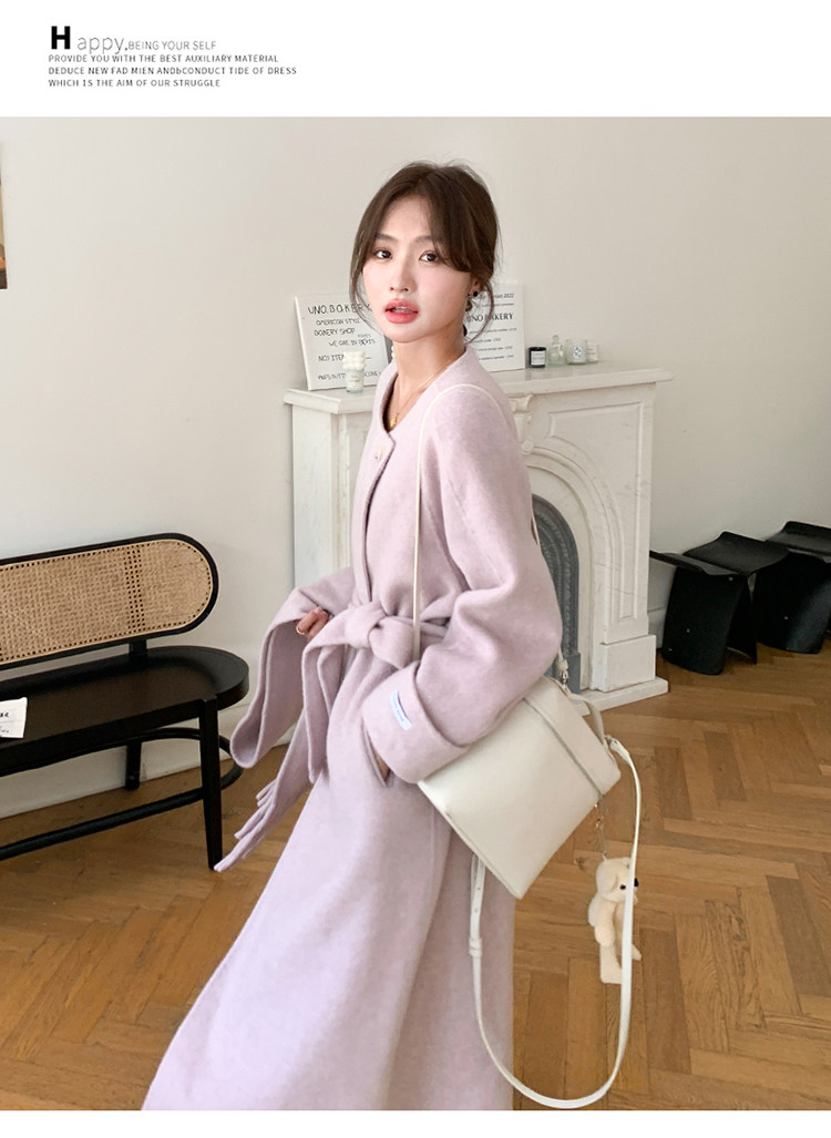 Purple high-end long over-the-knee double-sided wool coat for women 2025 winter new style temperament scarf woolen coat