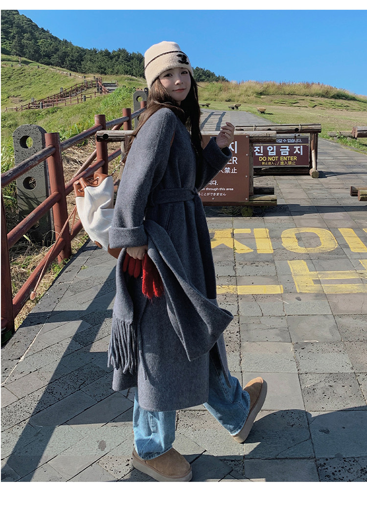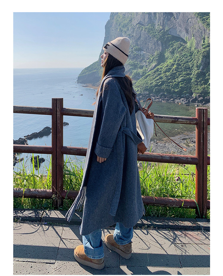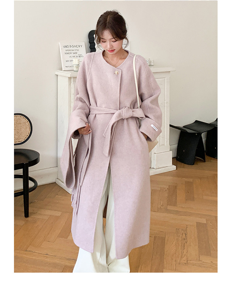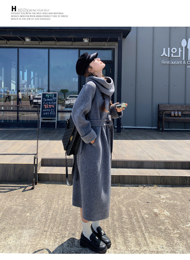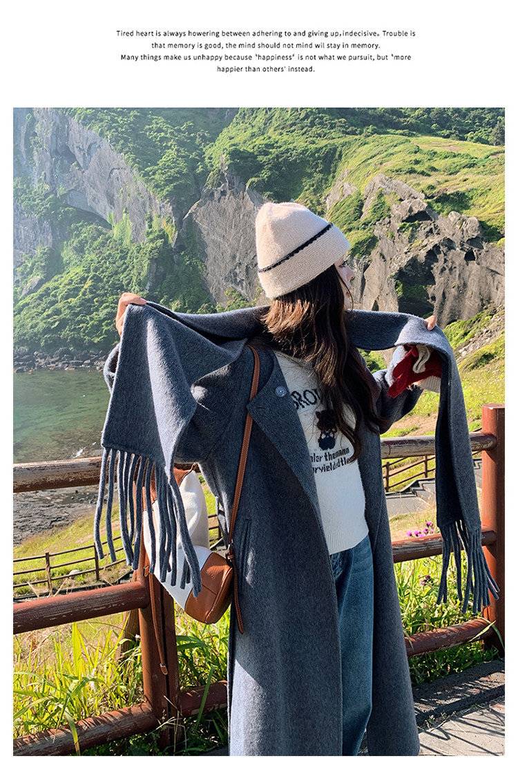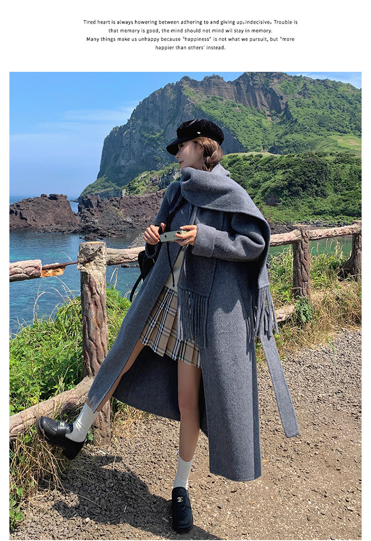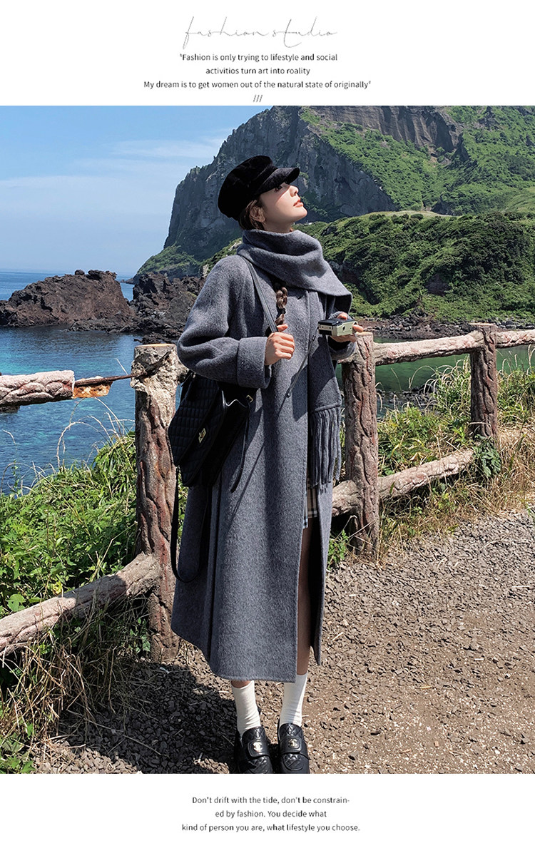 Purple high-end long over-the-knee double-sided wool coat for women 2025 winter new style temperament scarf woolen coat