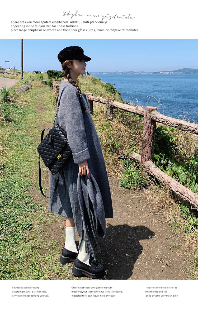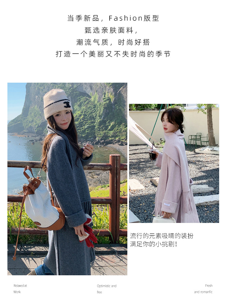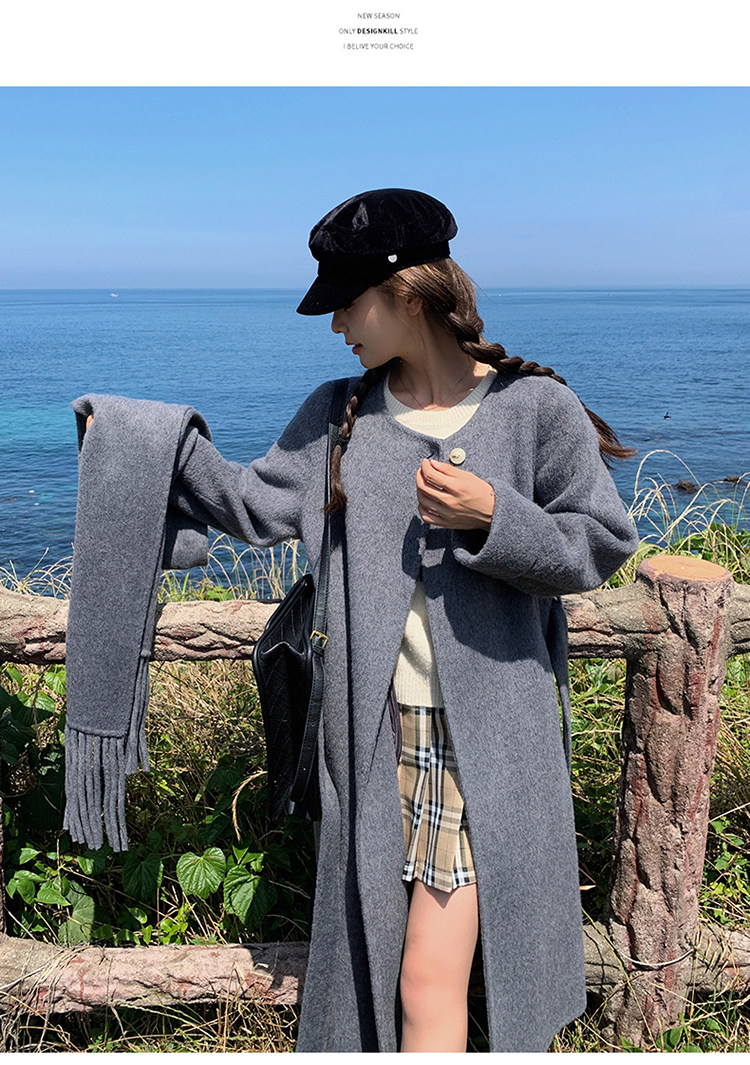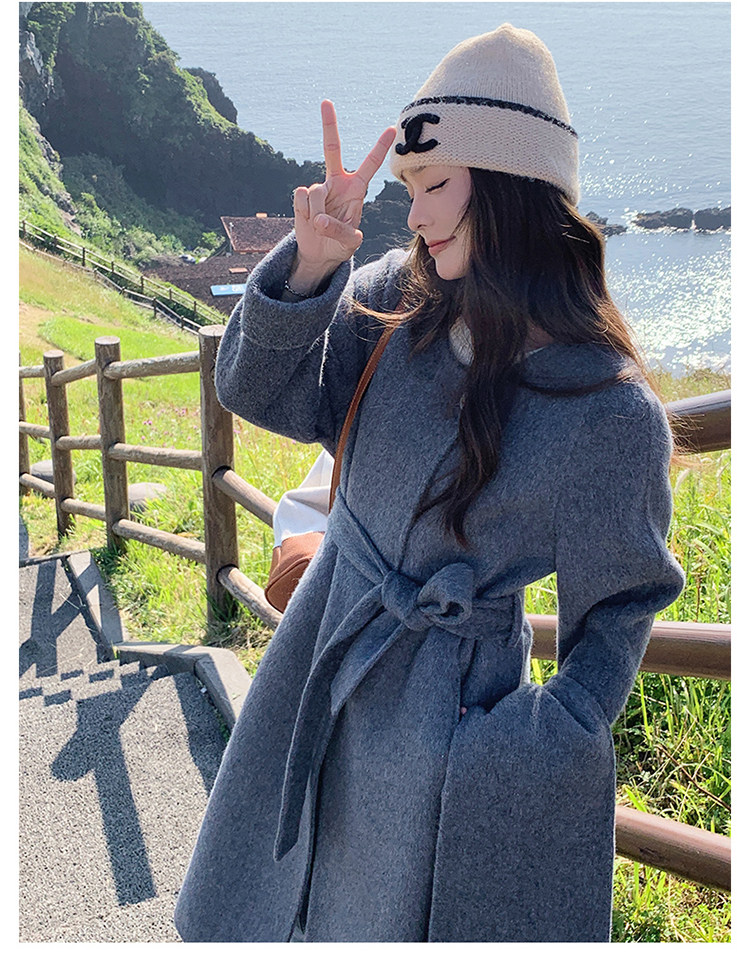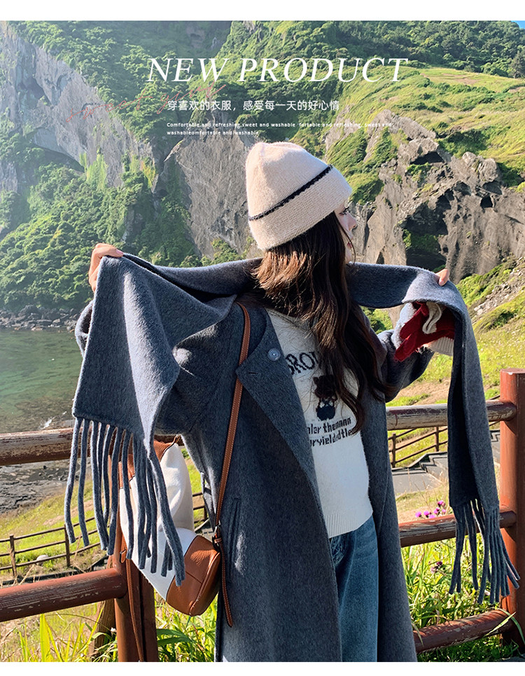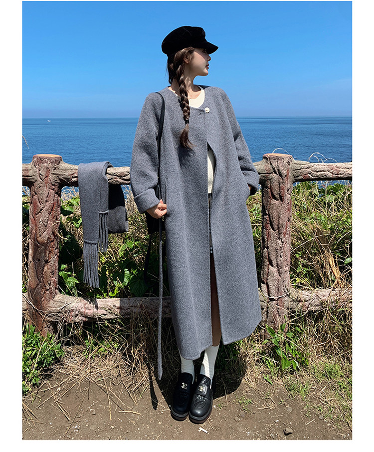 Purple high-end long over-the-knee double-sided wool coat for women 2025 winter new style temperament scarf woolen coat