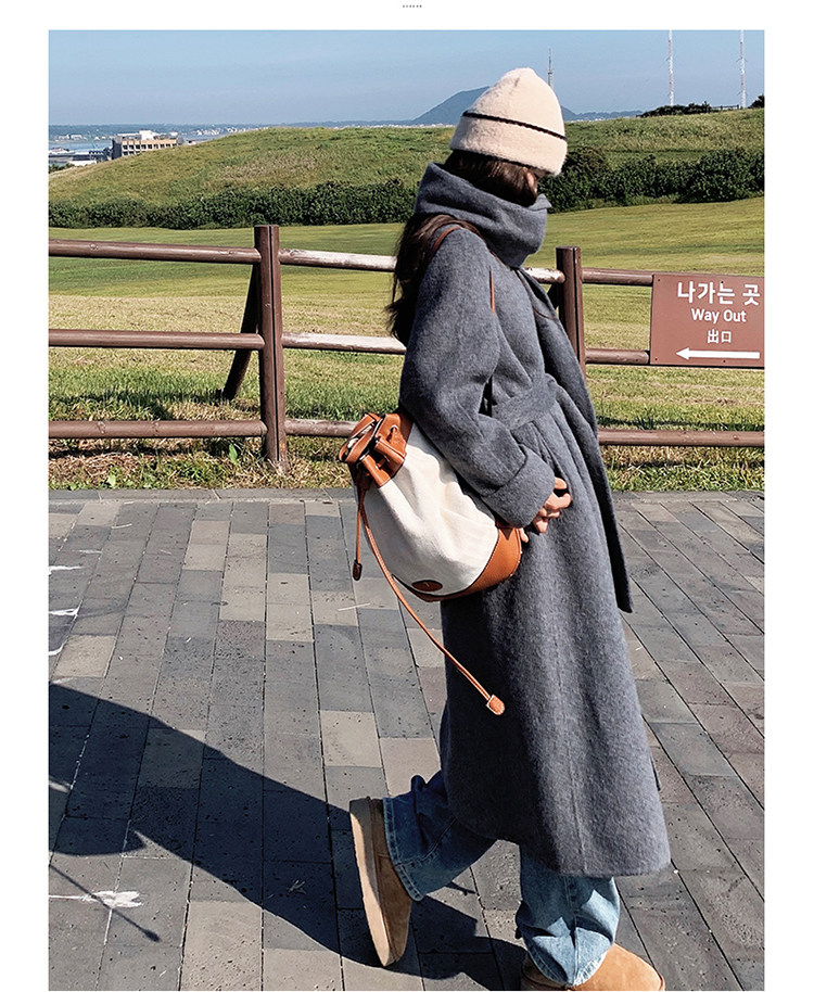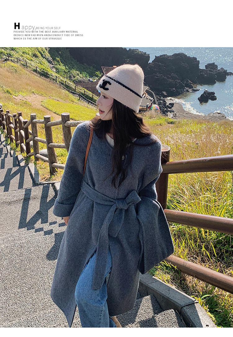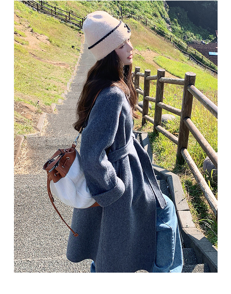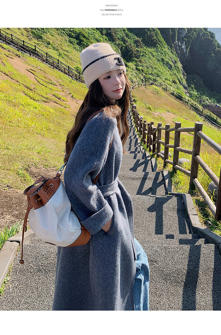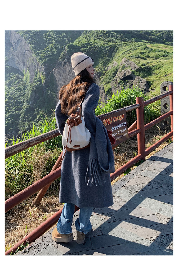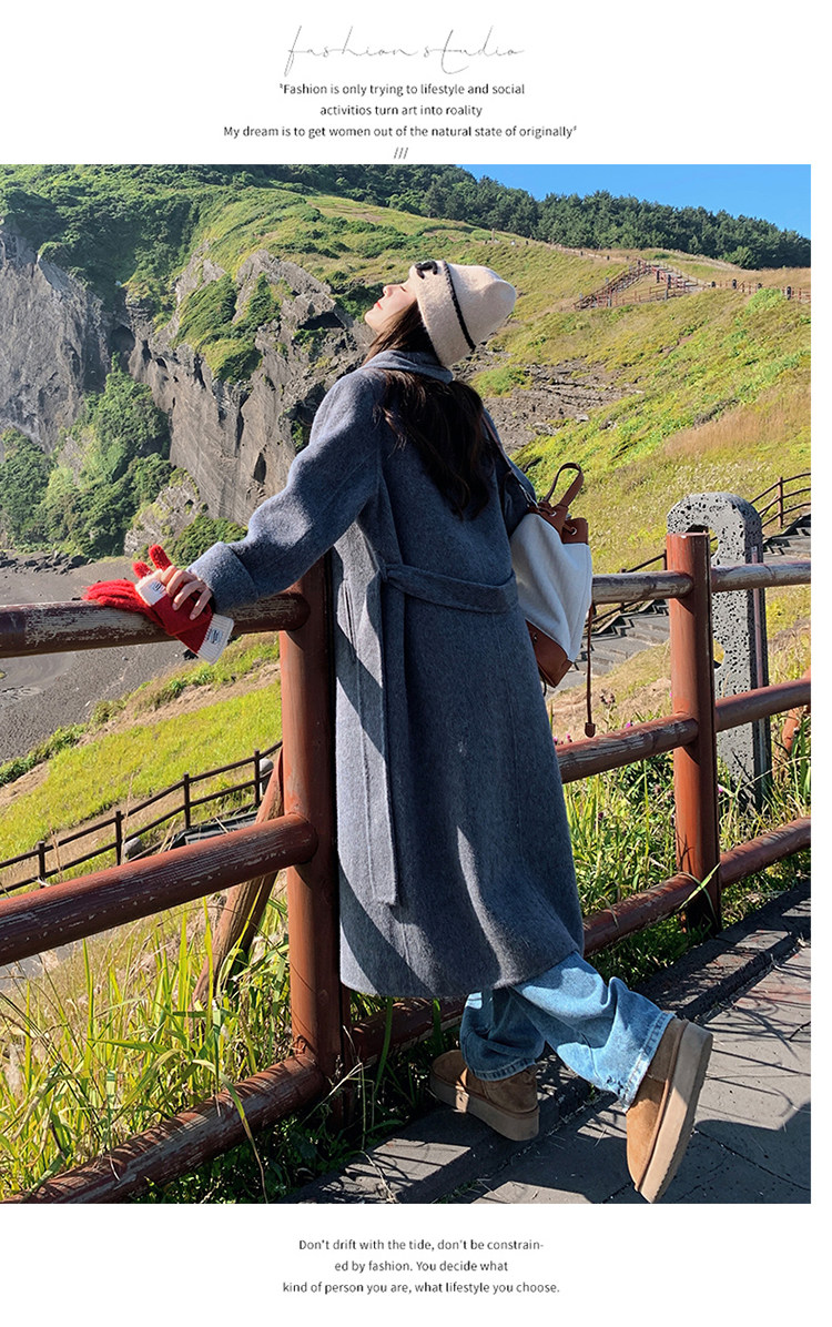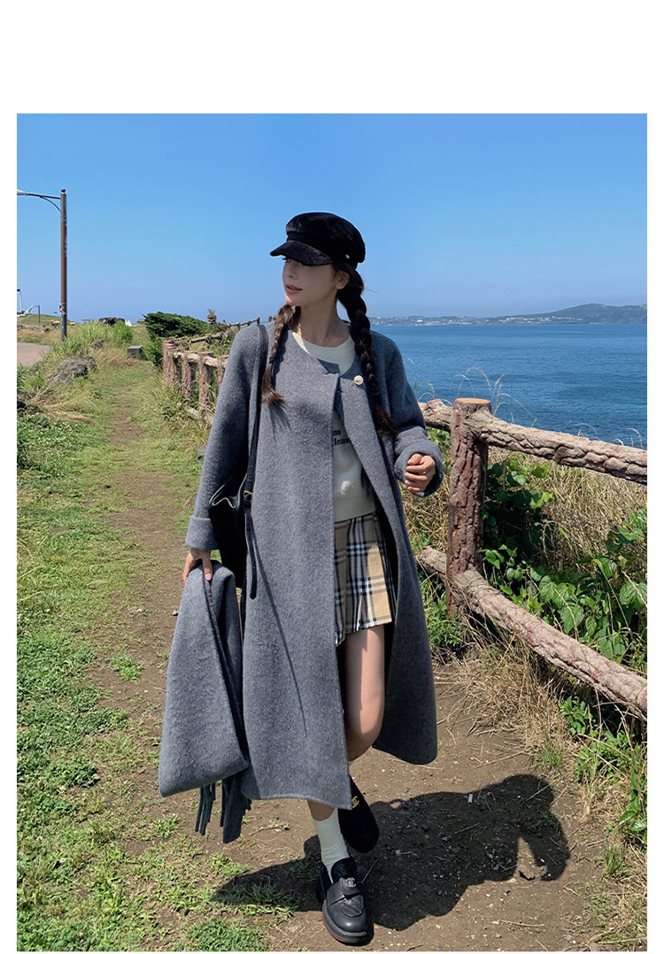 Purple high-end long over-the-knee double-sided wool coat for women 2025 winter new style temperament scarf woolen coat