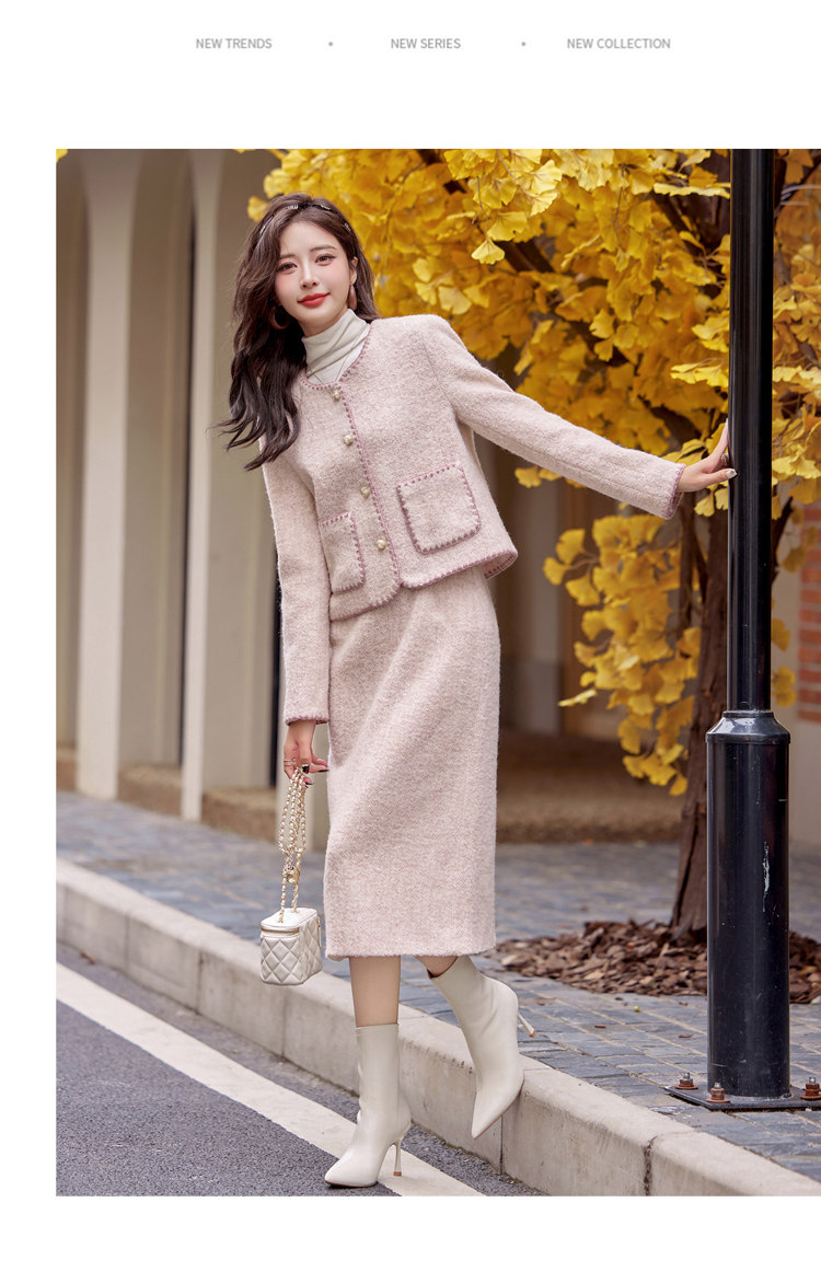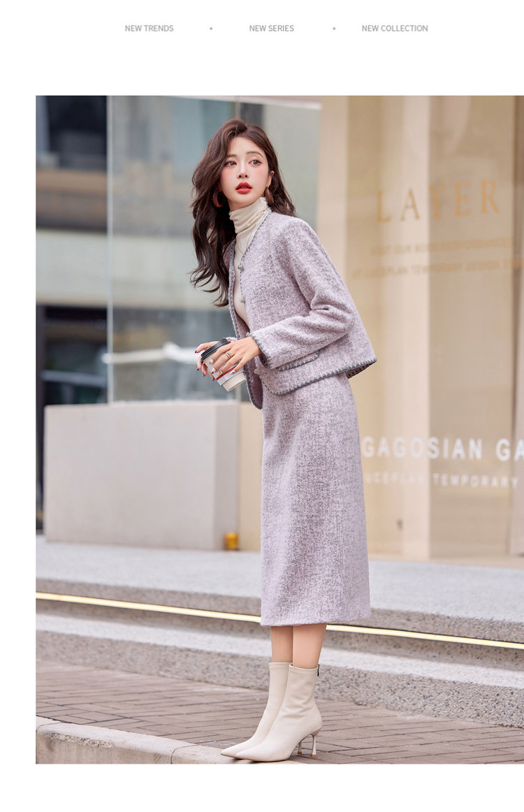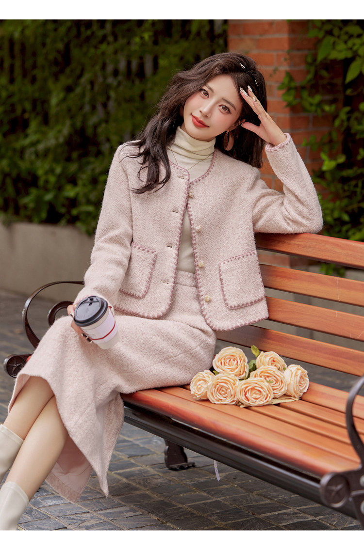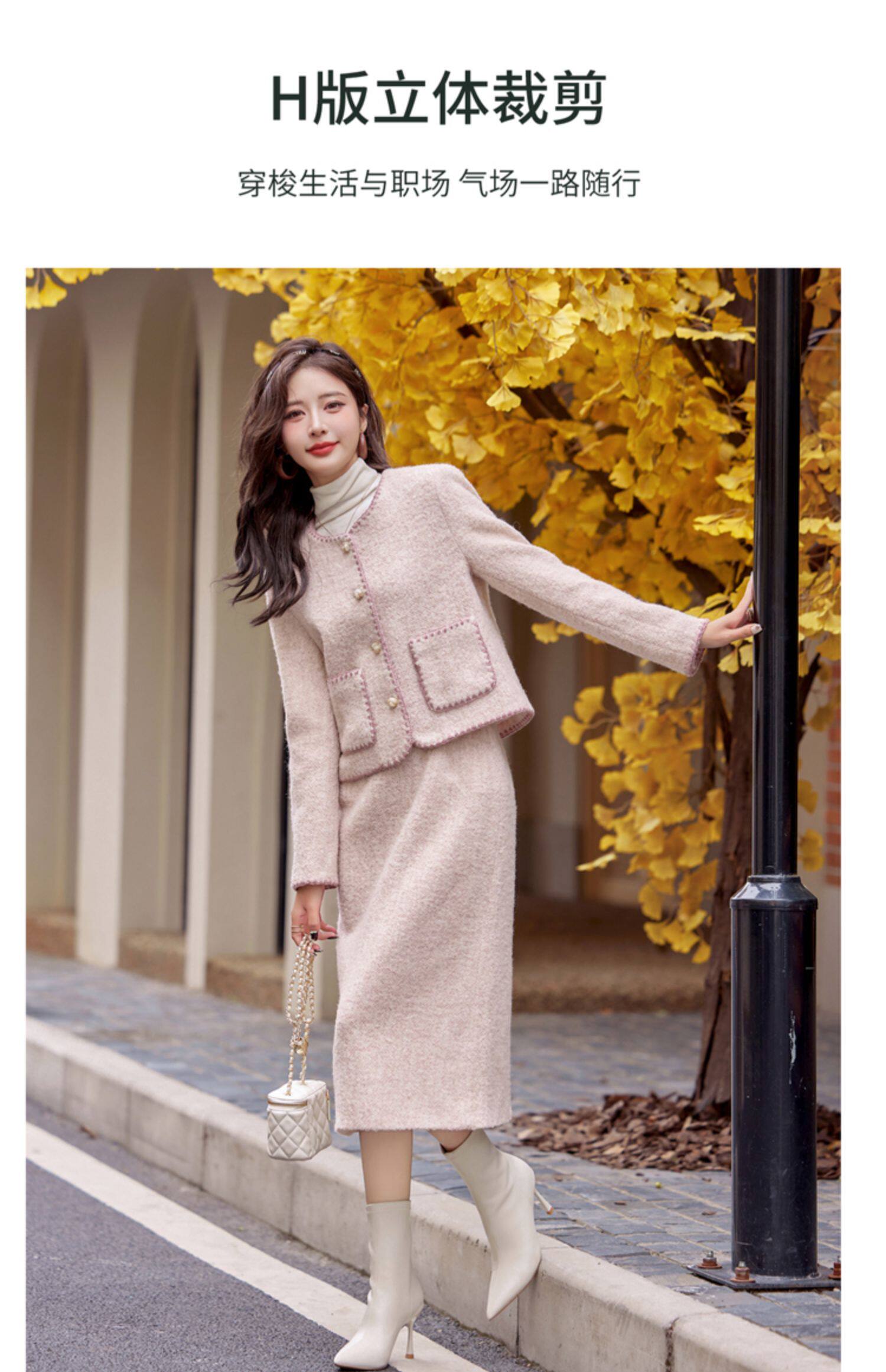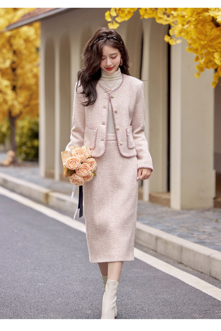 Cormusse woolen small fragrant suit autumn and winter 2025 new gold-like temperament skirt two-piece set