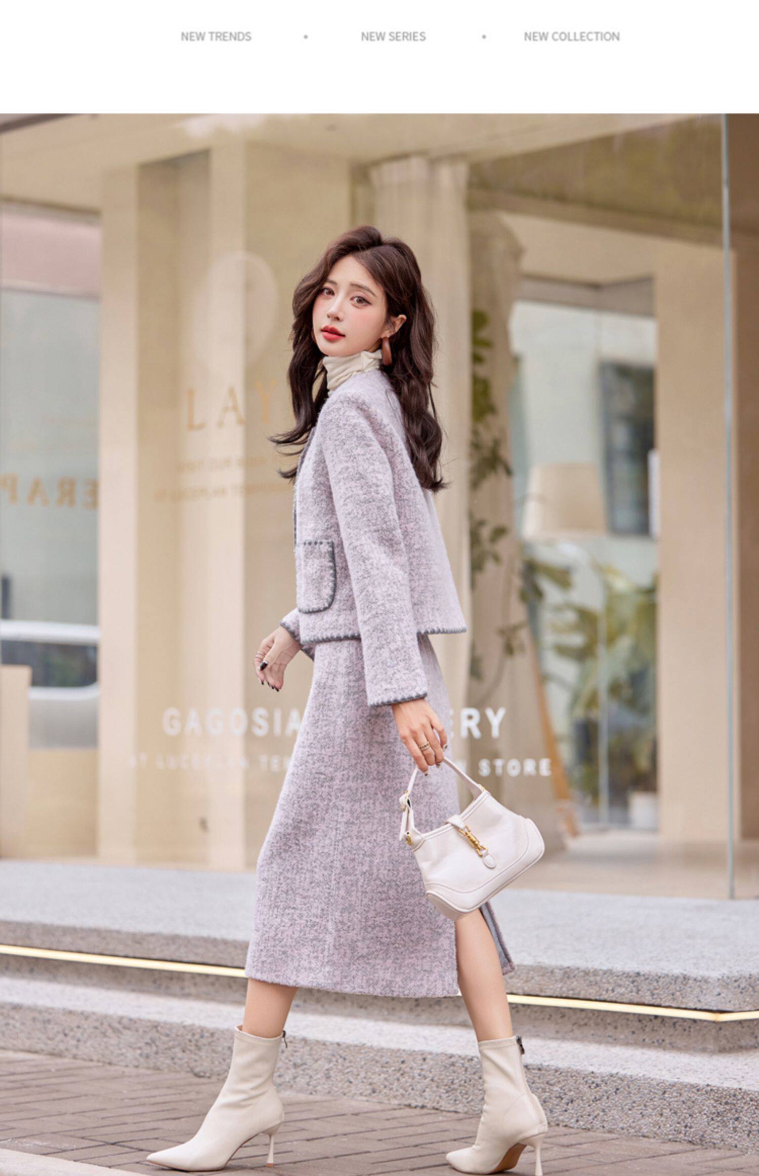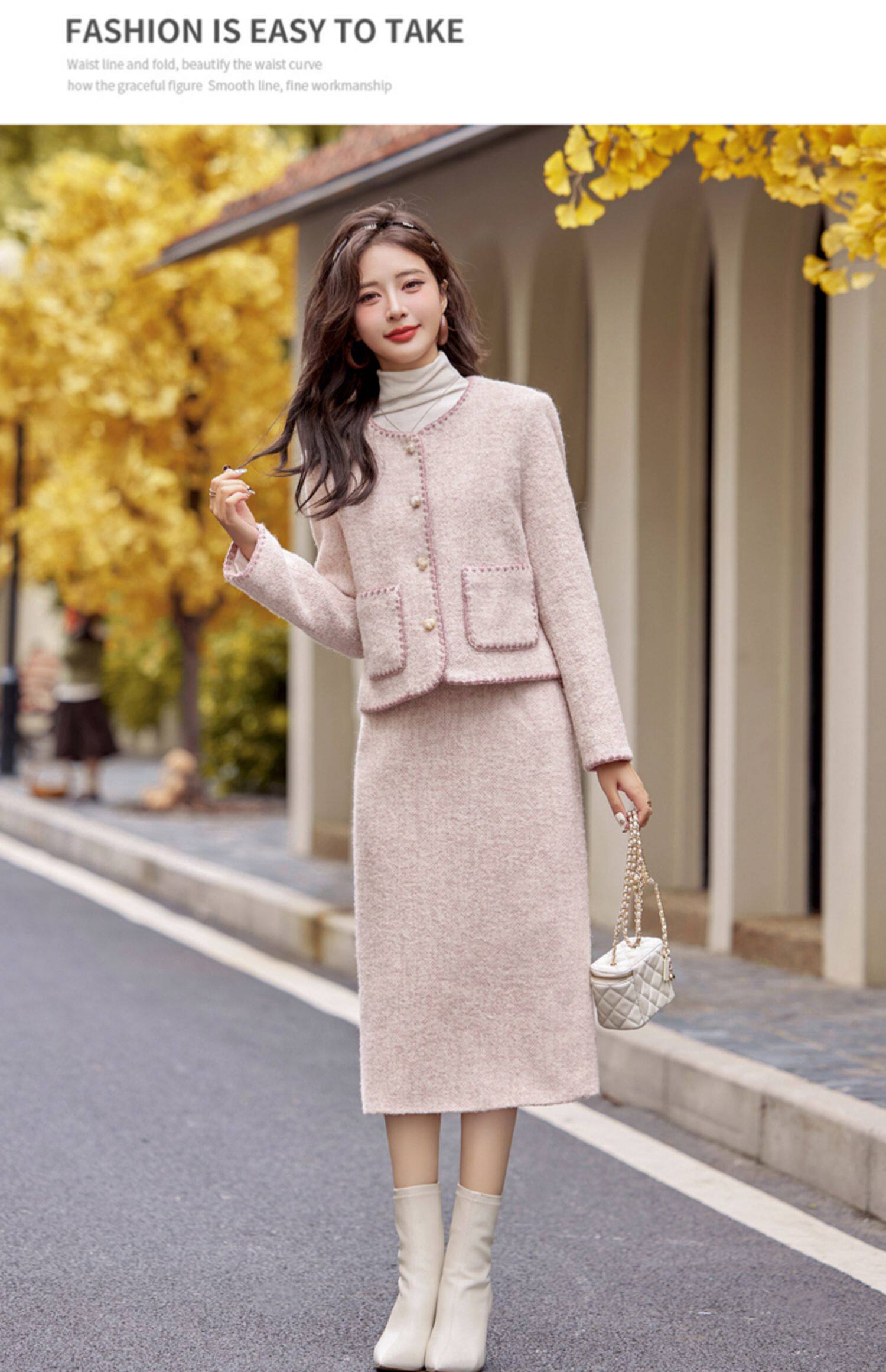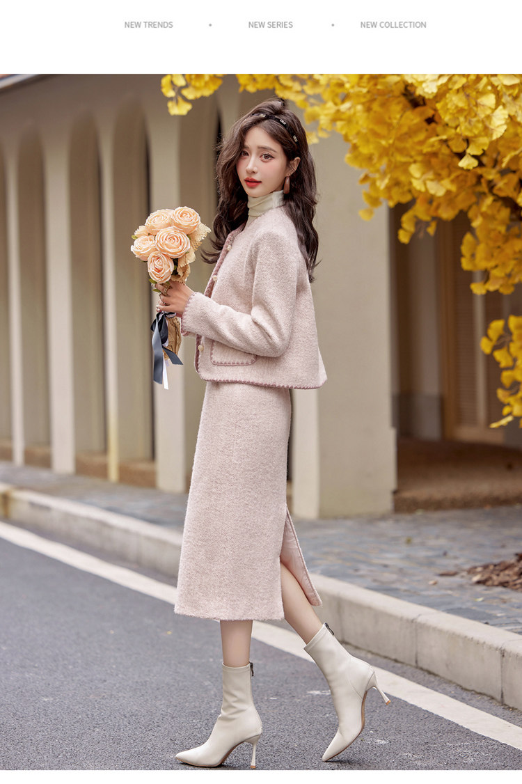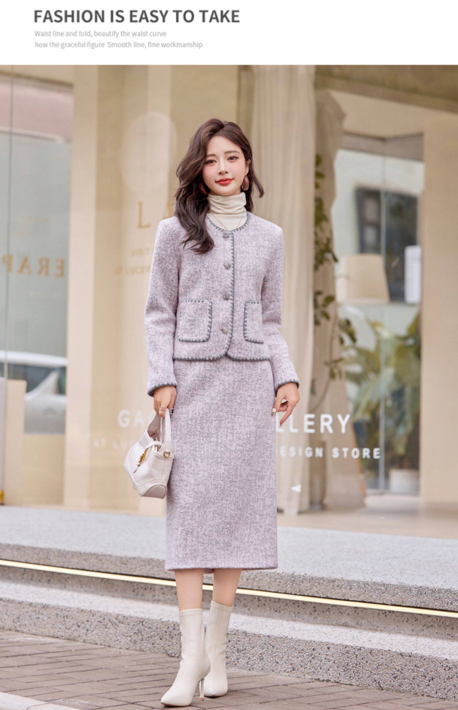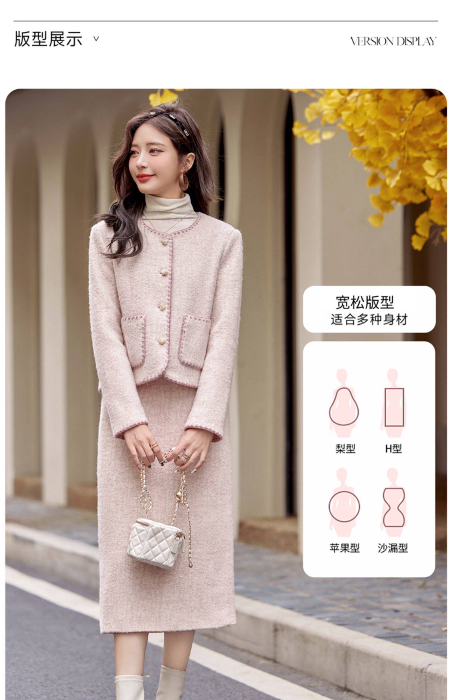 Cormusse woolen small fragrant suit autumn and winter 2025 new gold-like temperament skirt two-piece set