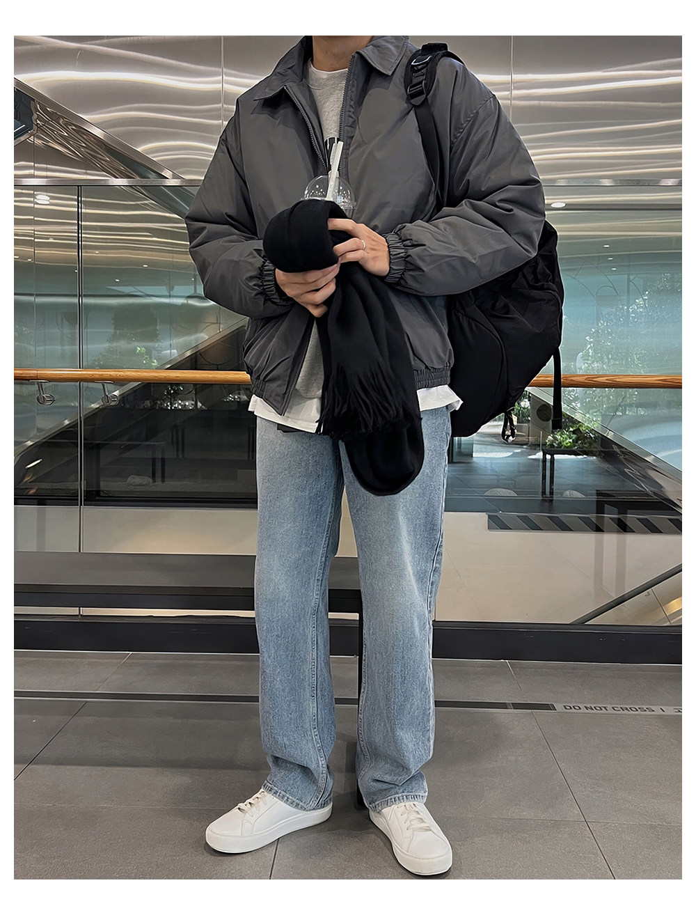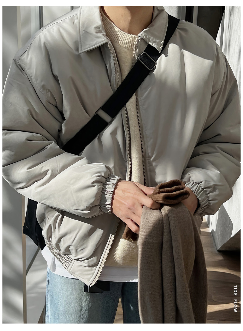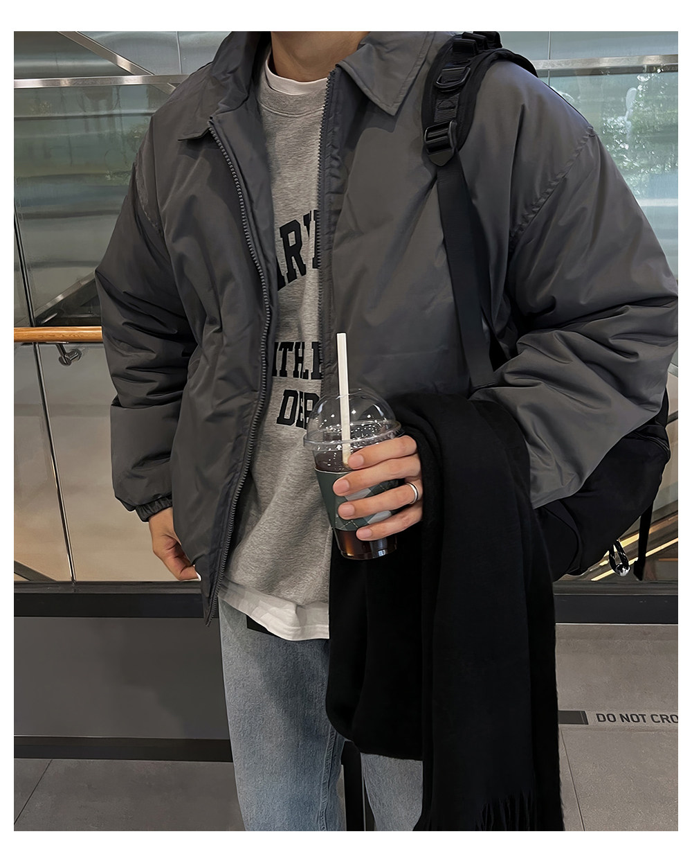 Light gray lapel cotton coat men's winter thickened jacket cotton coat Japanese simple short warm cotton jacket