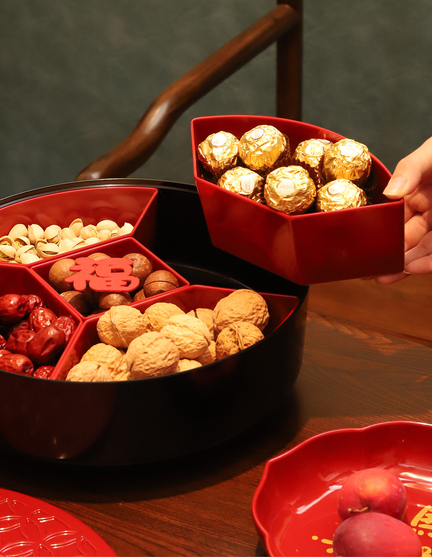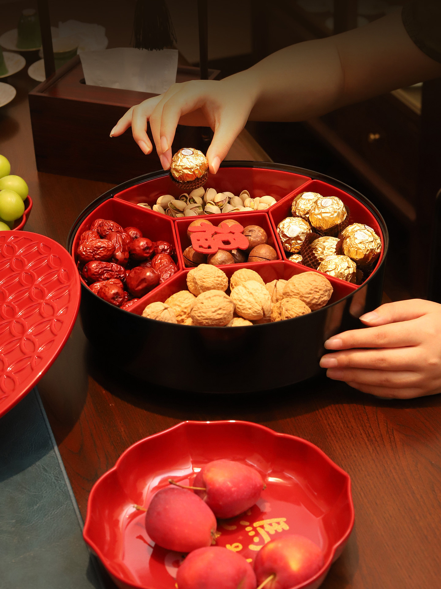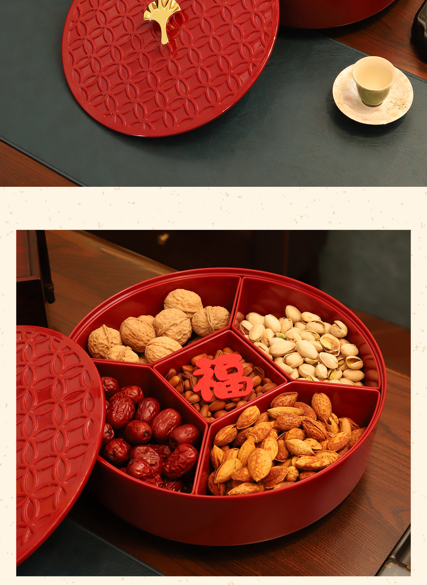 Color Classification [Red] 5-Part Detachable/Bottom 360°Rotate,[Black] 5-Part Detachable/Bottom 360°Rotate,[Shishi Ruyi] 5-Point Grid Detachable/Bottom 360°Rotate,【Abundance Year after Year】5-Compartment Removable/360° Rotating Base°Rotate,[Light up and Decorate] 6-Part Detachable/Bottom 360°Rotate,【Abundance Year after Year】6-Compartment Removable/360° Rotating Base°Rotate,【Peace & Joy】7-Compartment Removable / 360° Rotating Base°Rotate,[Ginkgo] 7-Part Detachable/Bottom 360°Rotate