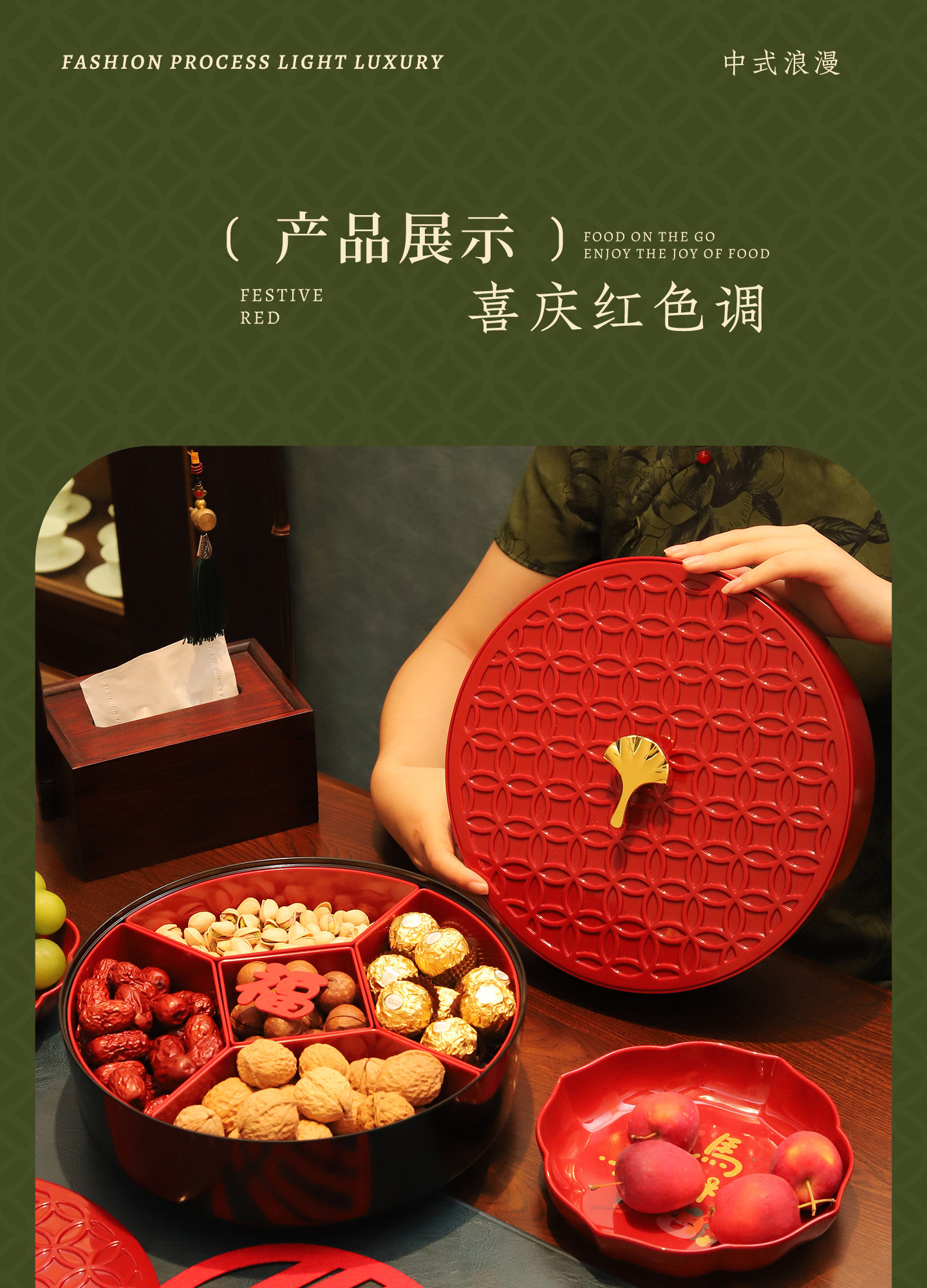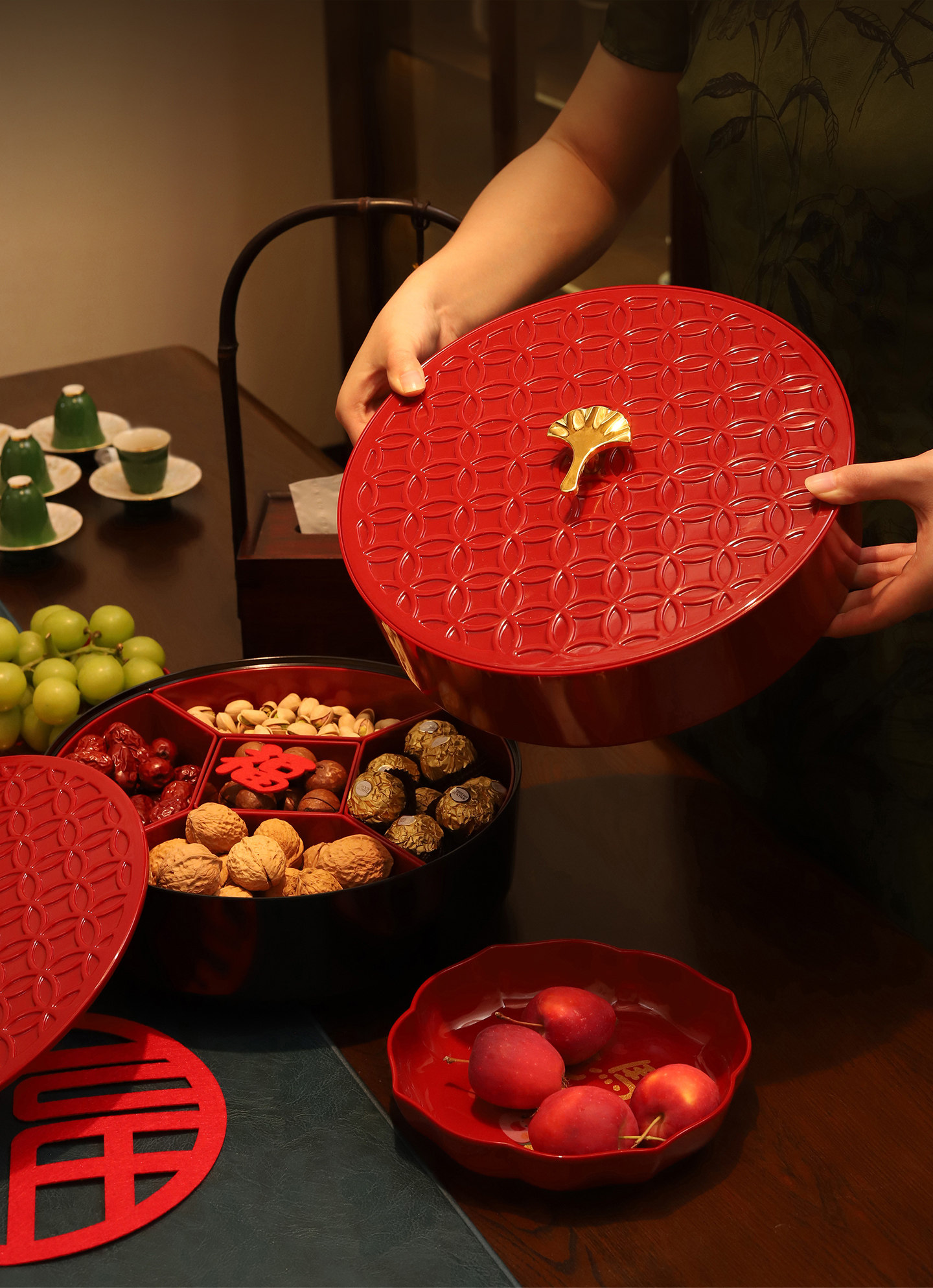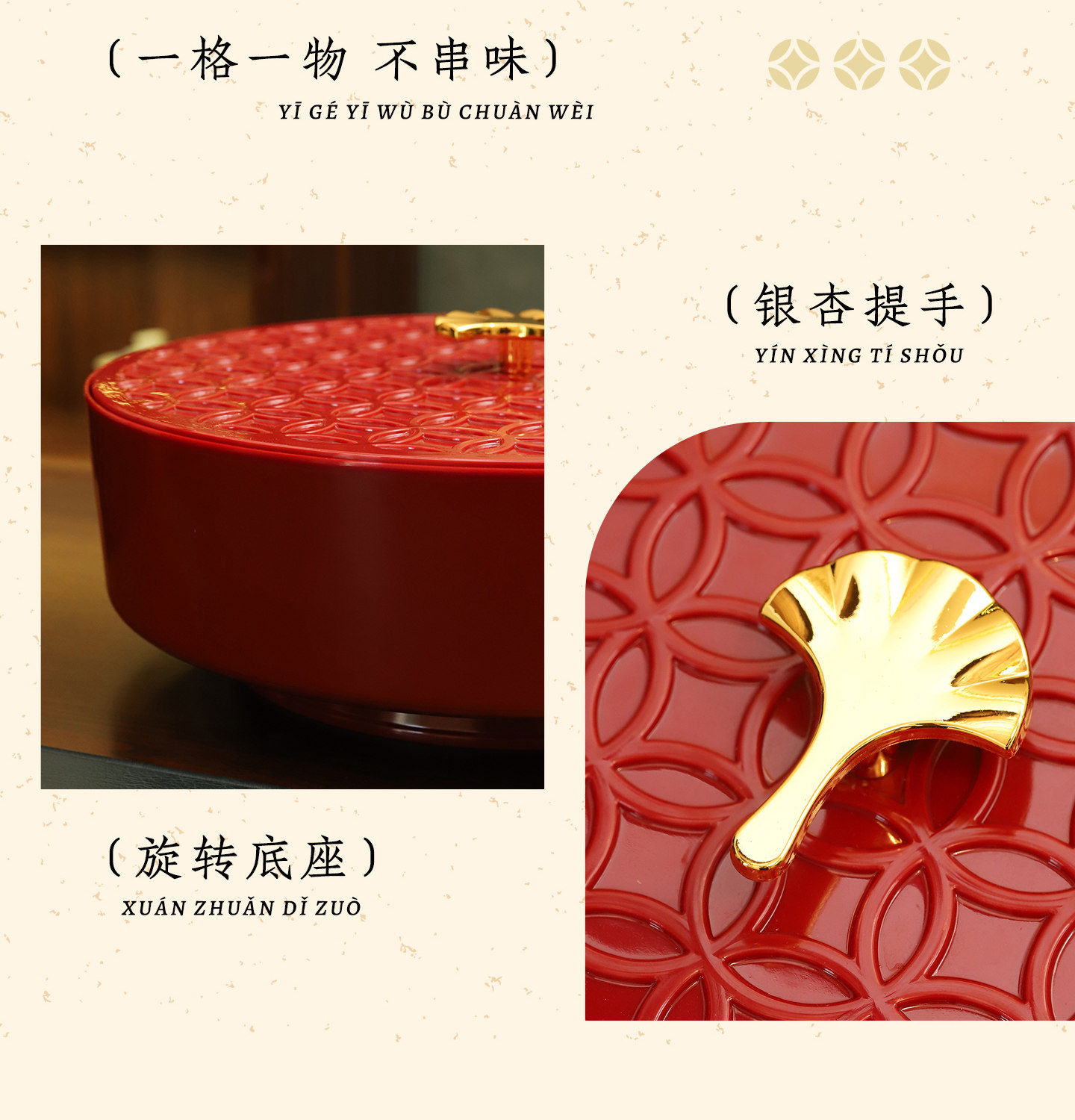 Color Classification [Red] 5-Part Detachable/Bottom 360°Rotate,[Black] 5-Part Detachable/Bottom 360°Rotate,[Shishi Ruyi] 5-Point Grid Detachable/Bottom 360°Rotate,【Abundance Year after Year】5-Compartment Removable/360° Rotating Base°Rotate,[Light up and Decorate] 6-Part Detachable/Bottom 360°Rotate,【Abundance Year after Year】6-Compartment Removable/360° Rotating Base°Rotate,【Peace & Joy】7-Compartment Removable / 360° Rotating Base°Rotate,[Ginkgo] 7-Part Detachable/Bottom 360°Rotate