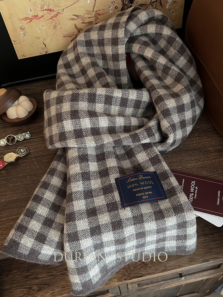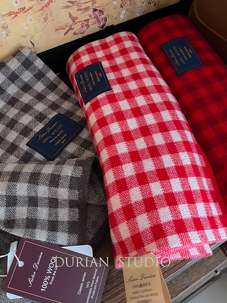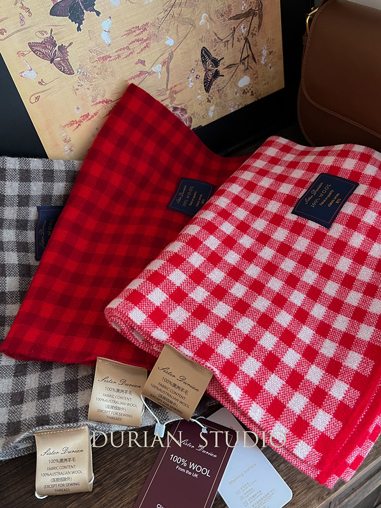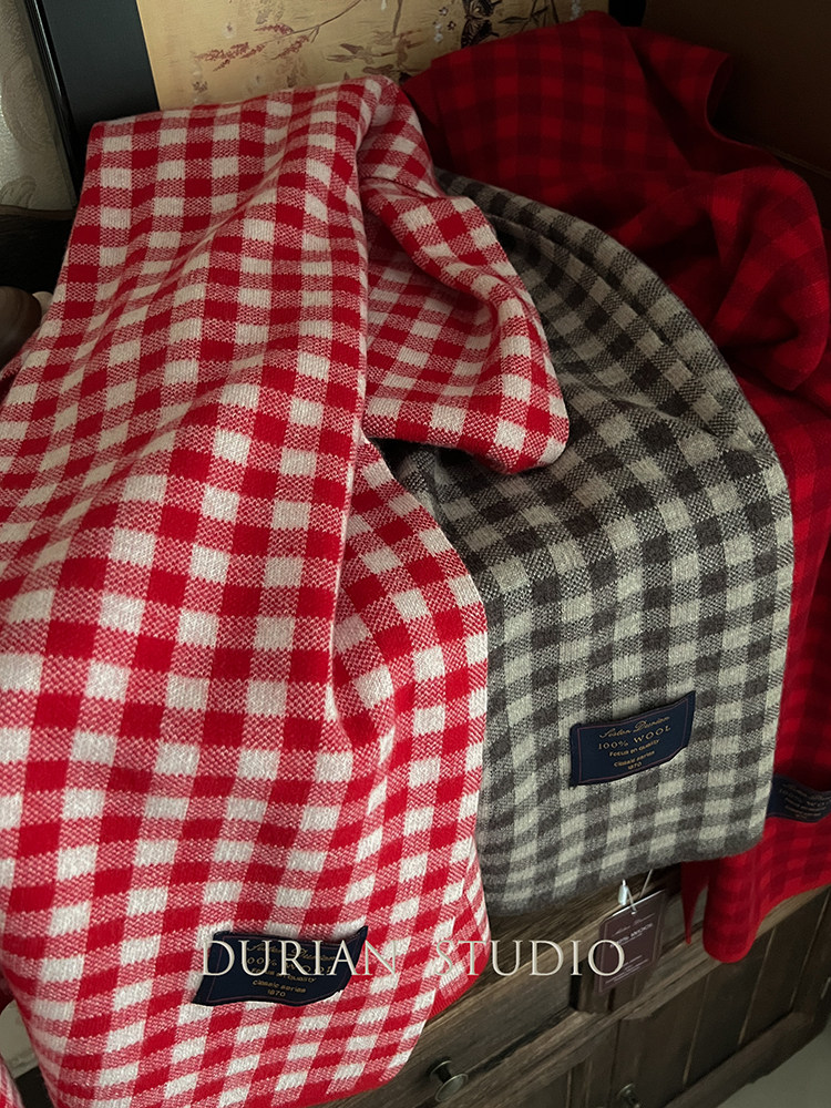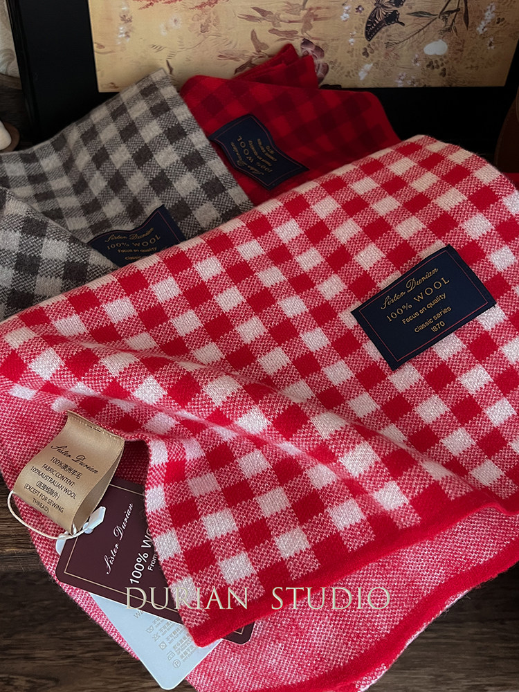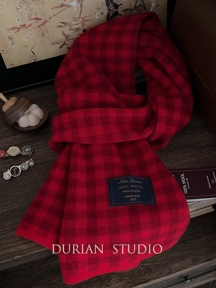 Selected Treasures: Australian Wool 100% Pure Wool Ancora Red Plaid Scarf, Thickened for Winter, Warm Neck Scarf