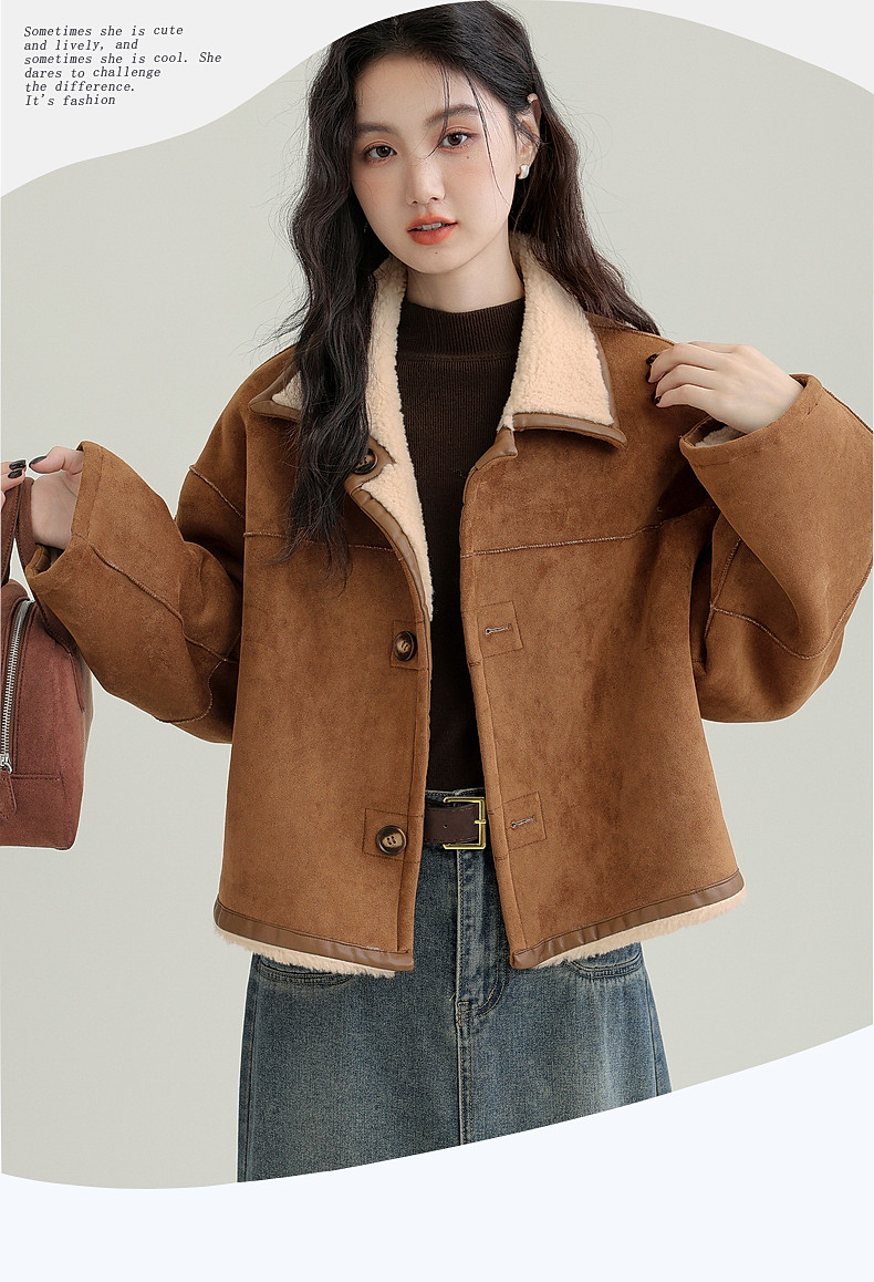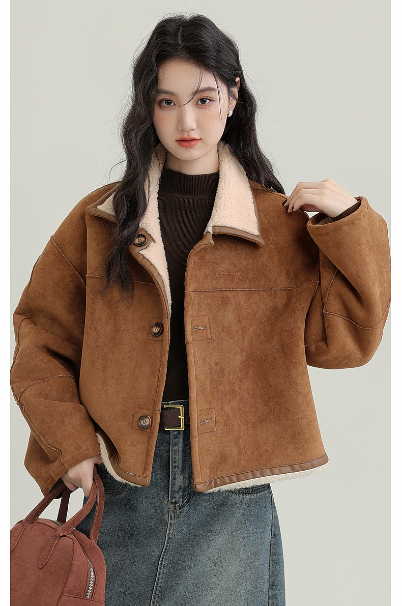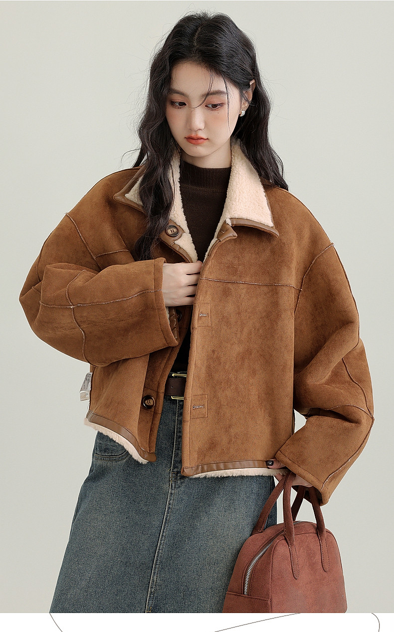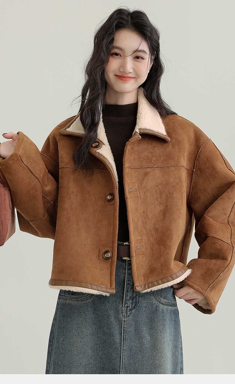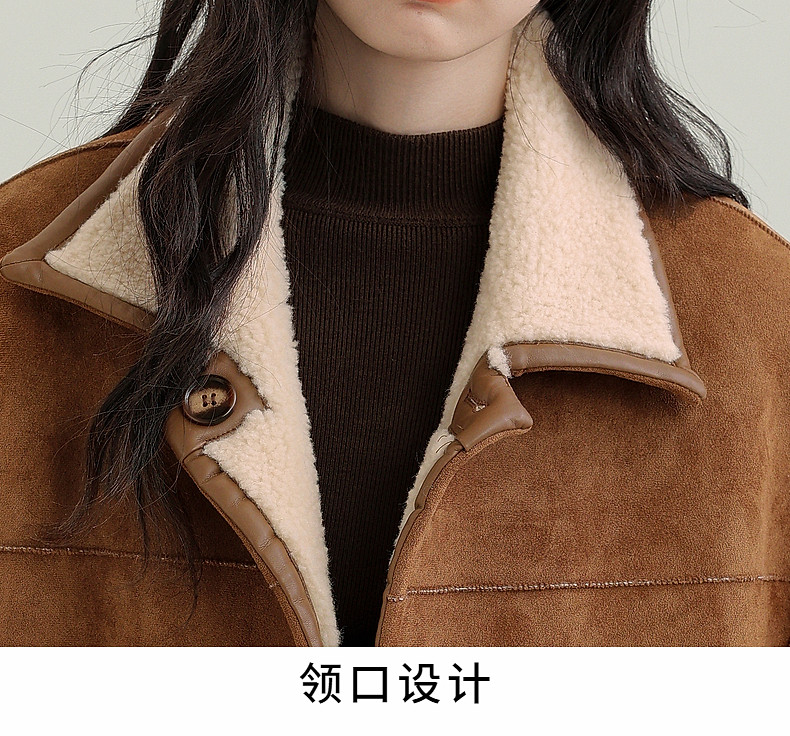 2024 winter new imitation suede reversible coat women's fur one-piece brown warm lapel jacket cardigan