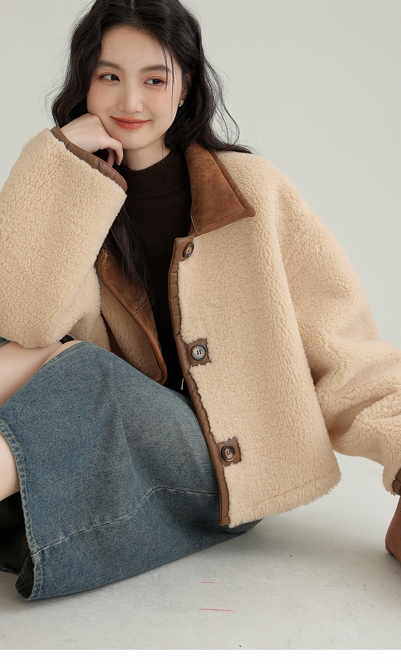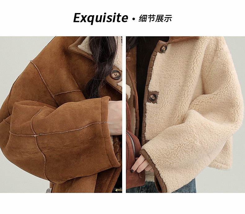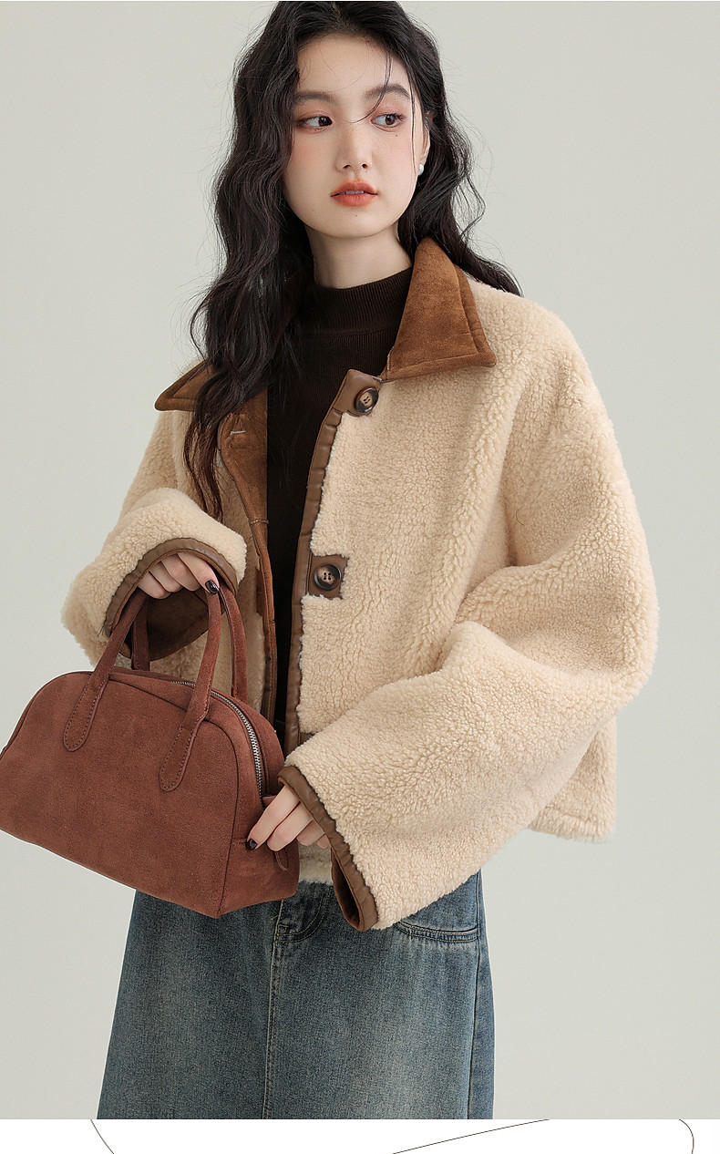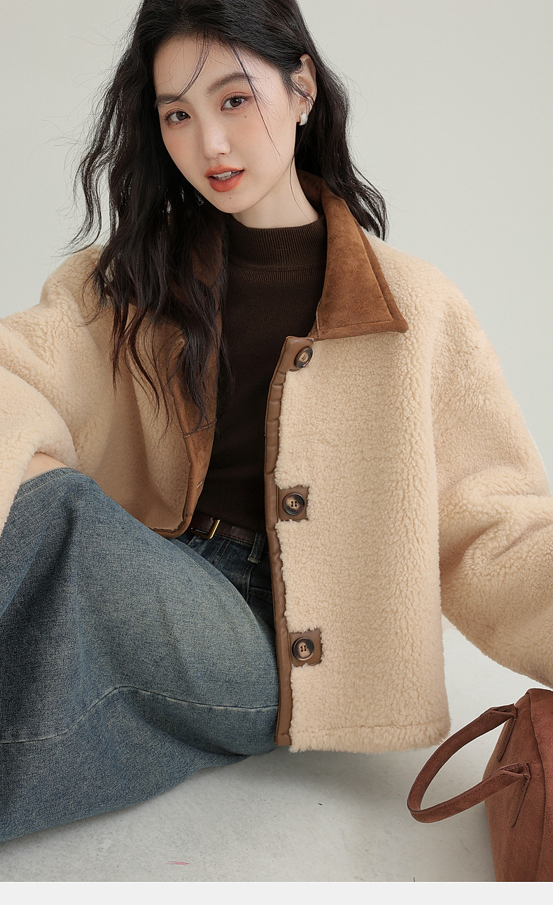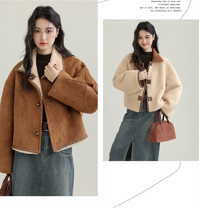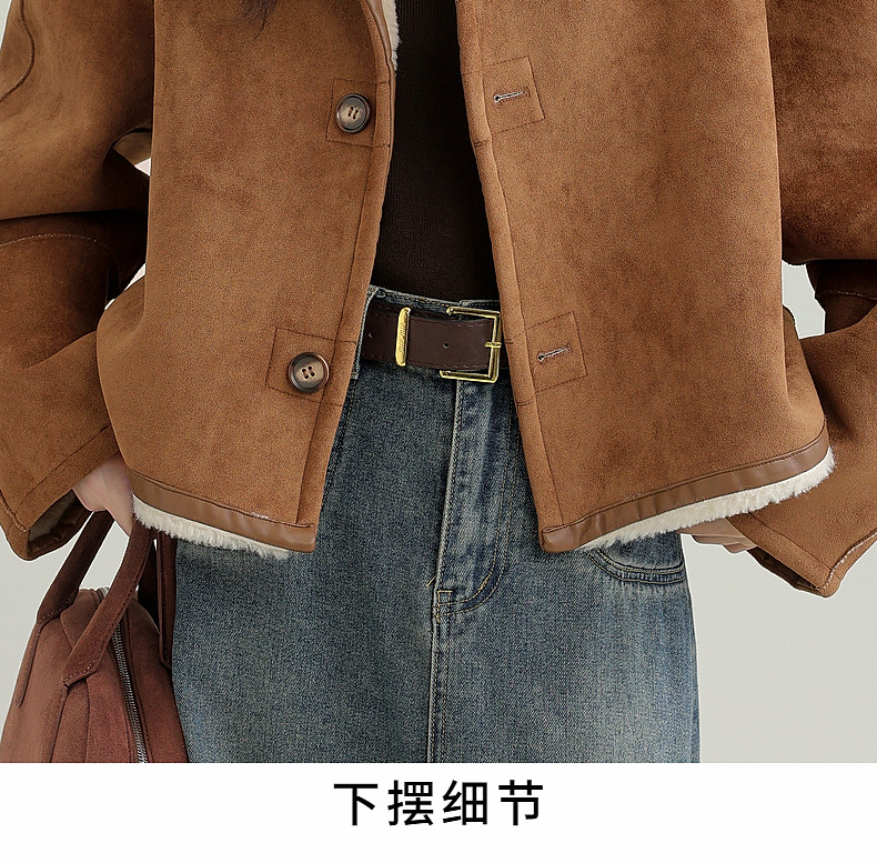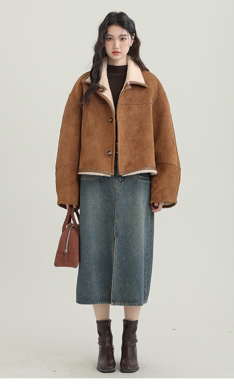 2024 winter new imitation suede reversible coat women's fur one-piece brown warm lapel jacket cardigan