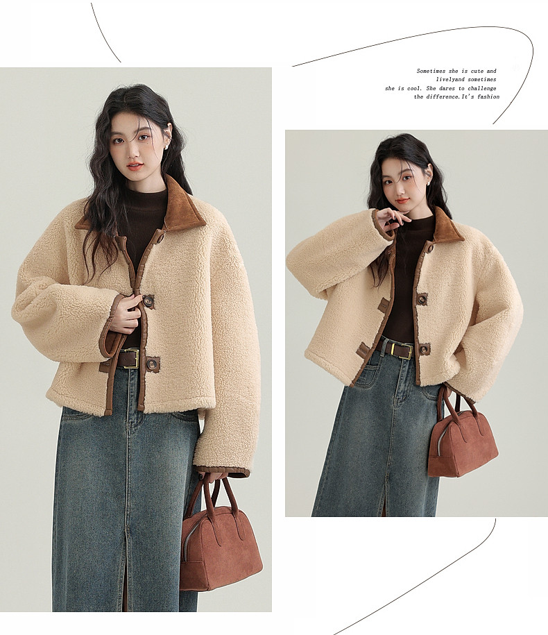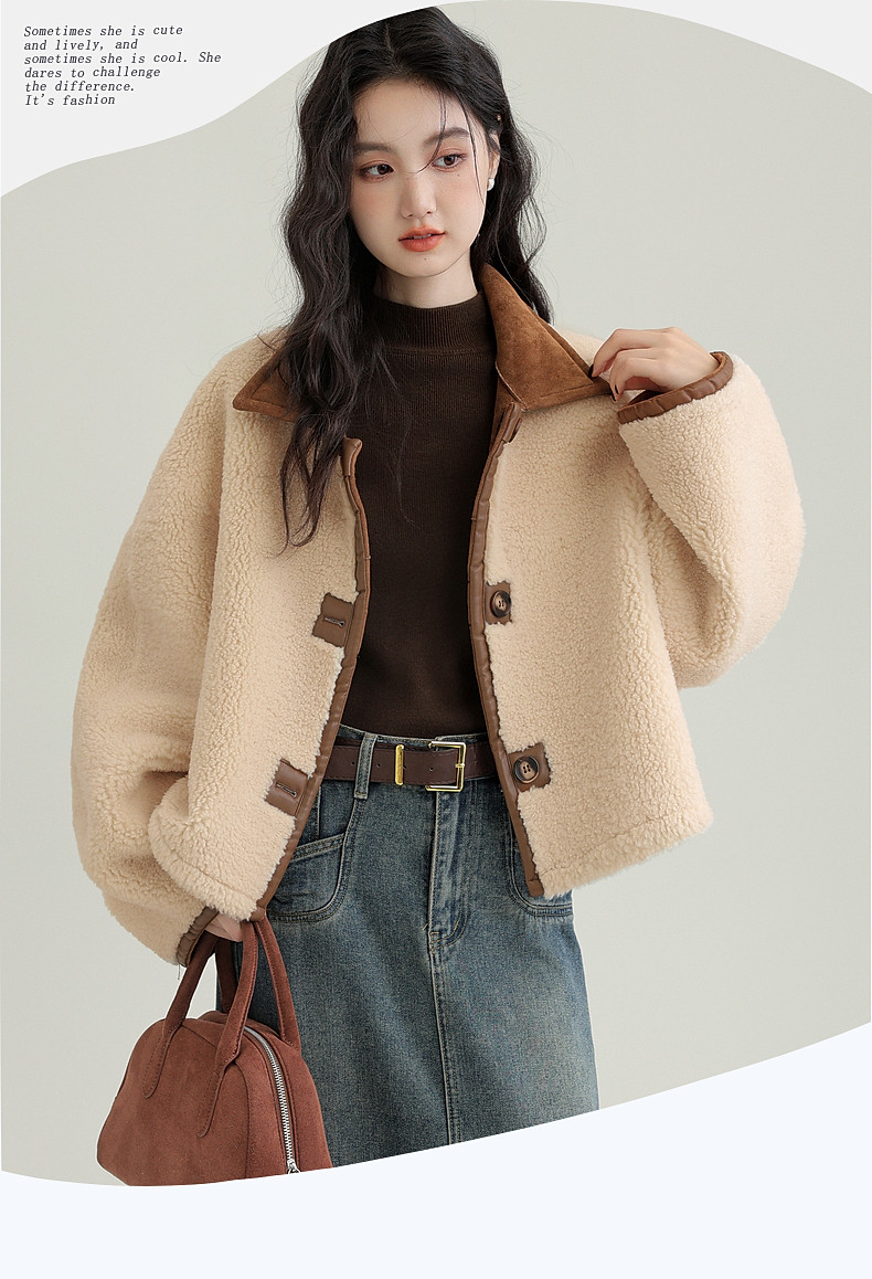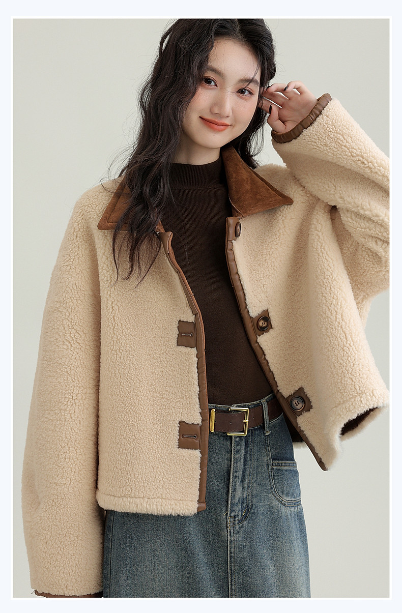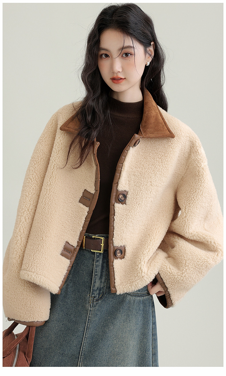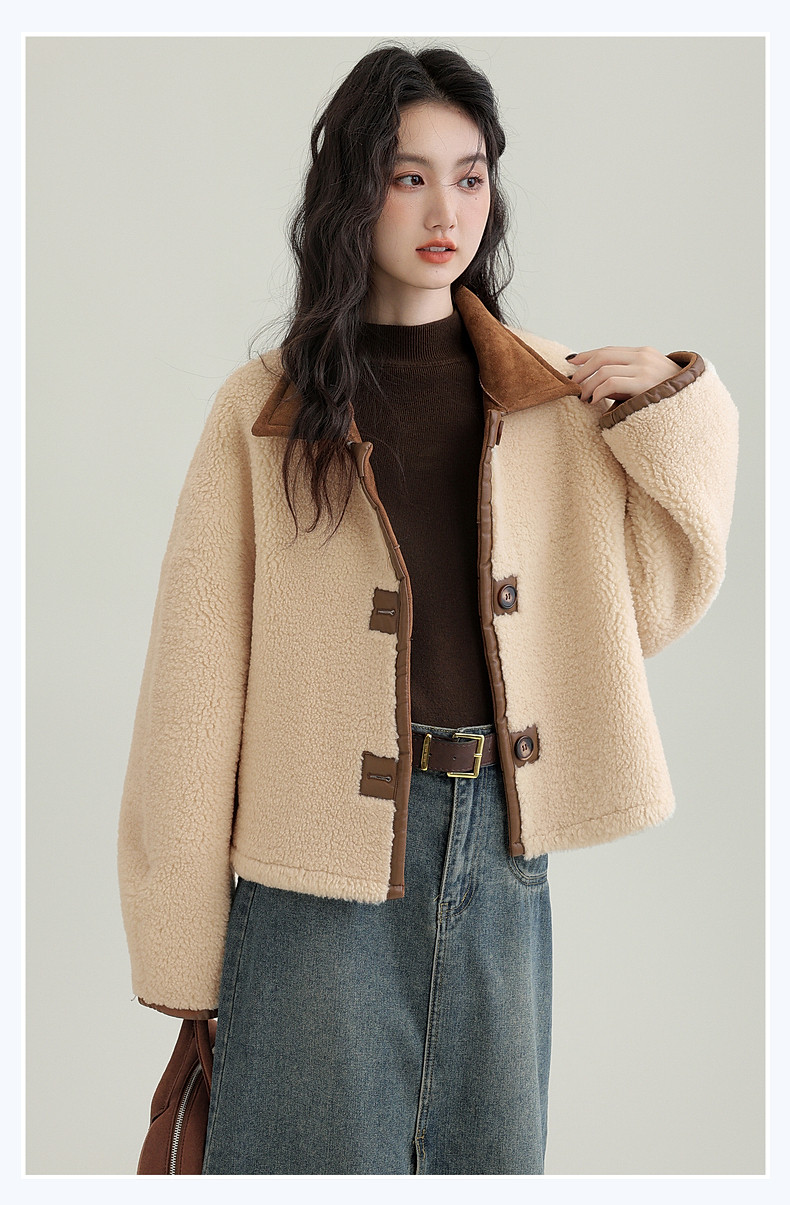 2024 winter new imitation suede reversible coat women's fur one-piece brown warm lapel jacket cardigan
