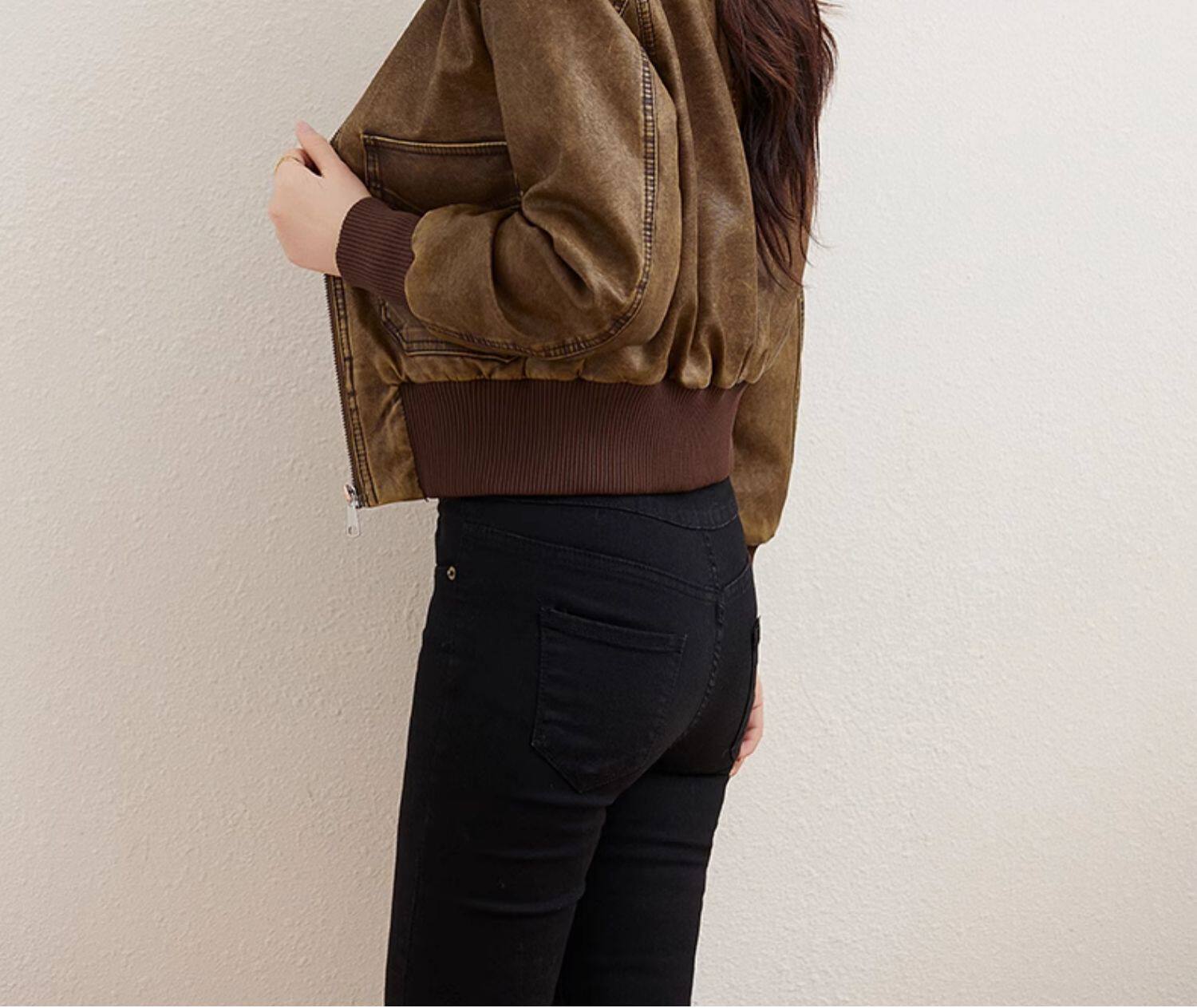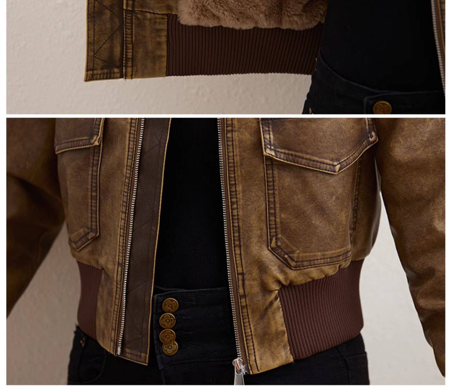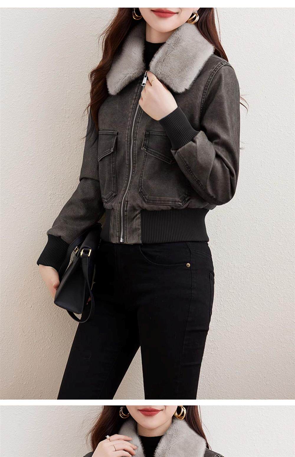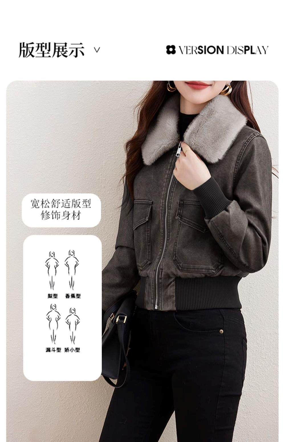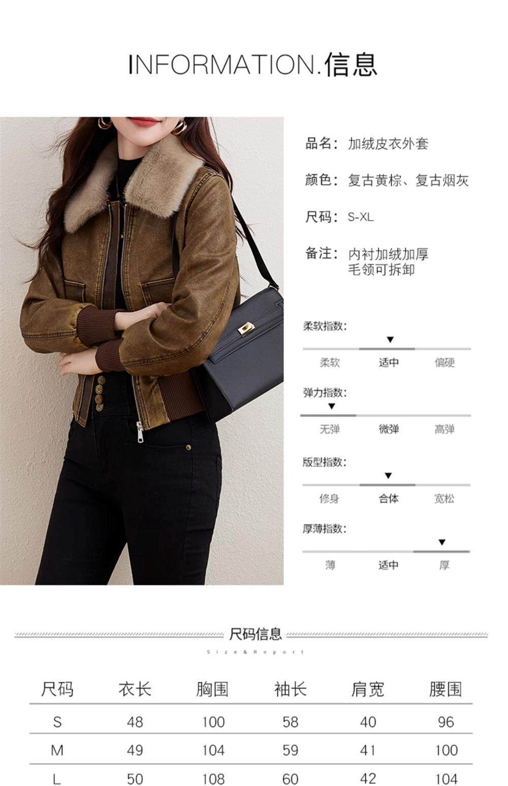 Retro frosted plus velvet leather jacket for women 2025 winter new style small short style trendy motorcycle jacket leather jacket