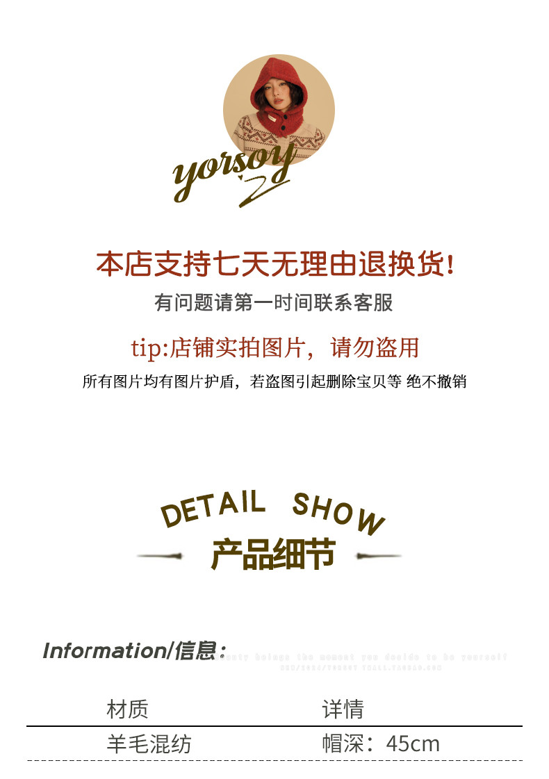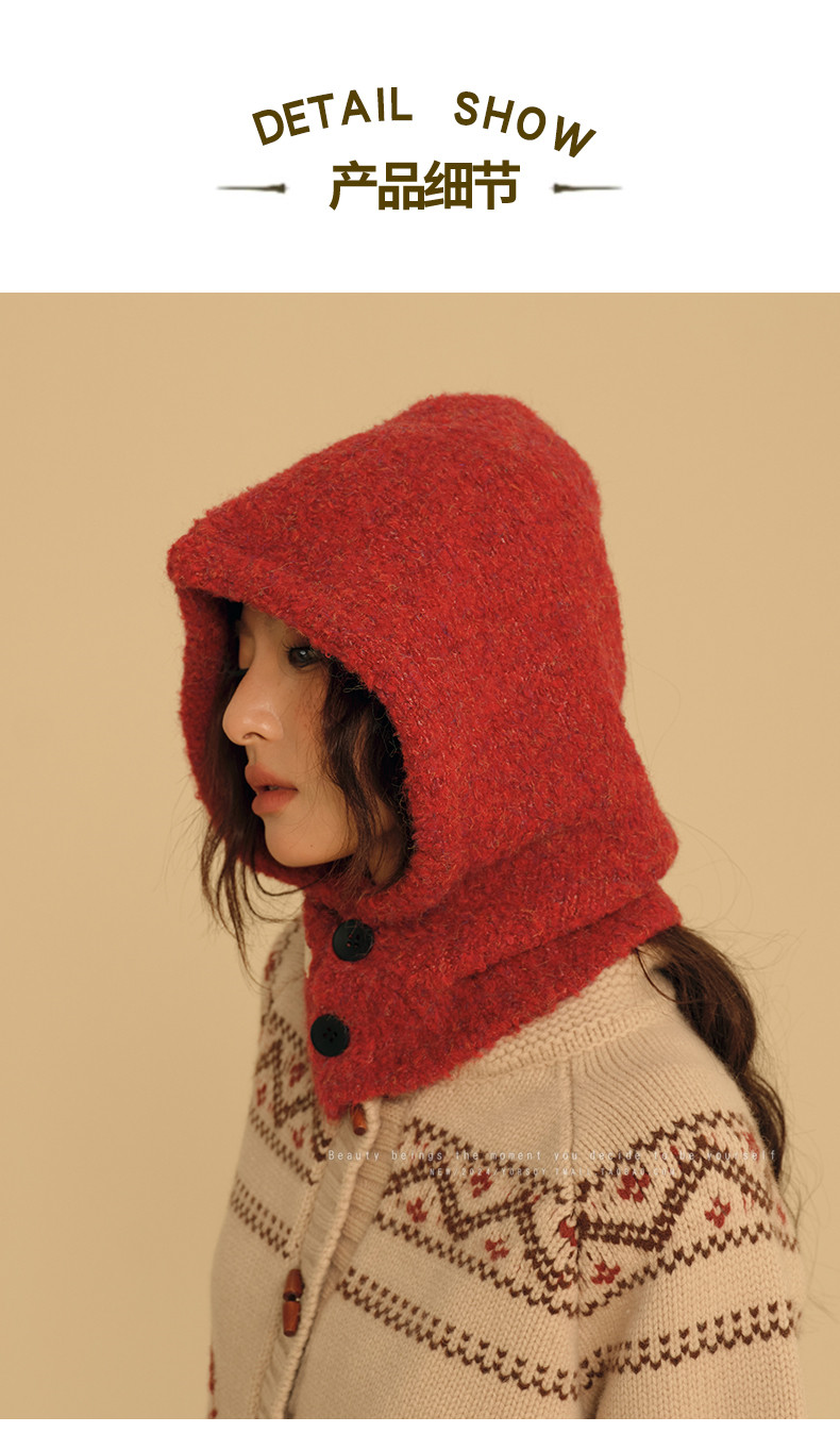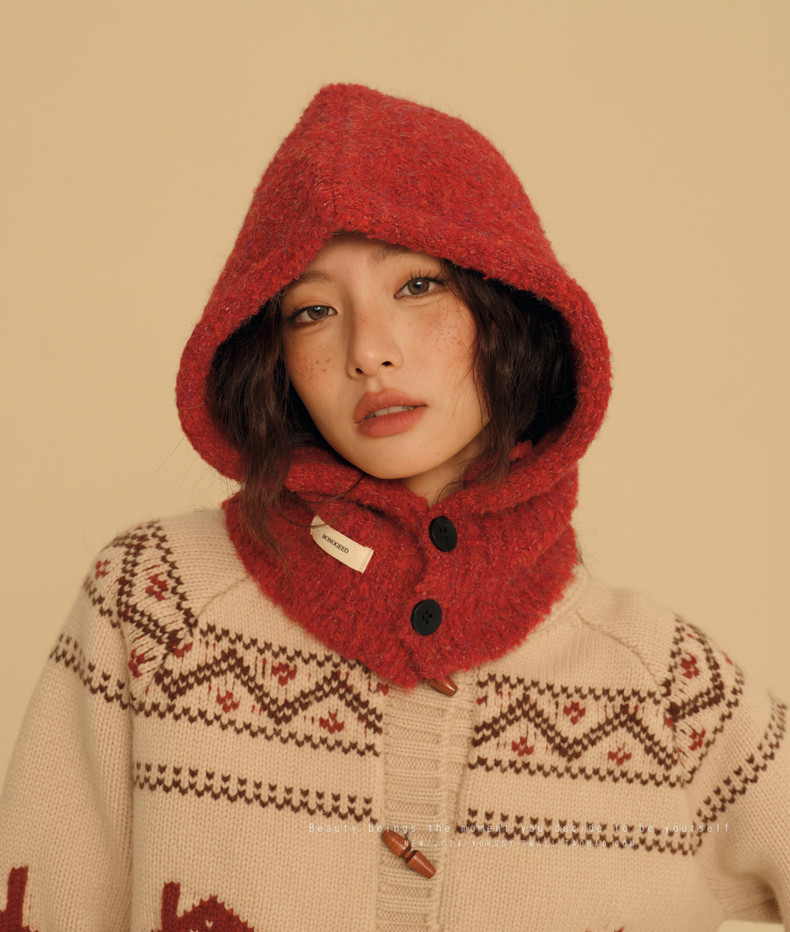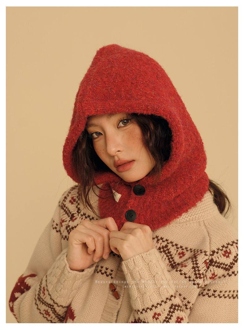 New Year Red Hat for Women, Winter Ear Protection Balaclava, Warm Retro Scarf Integrated Knitted Wool Hat