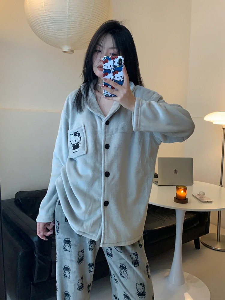 KT Cat 2024 new coral velvet pajamas for women in autumn and winter flannel high-quality plus velvet thickening warm and cute