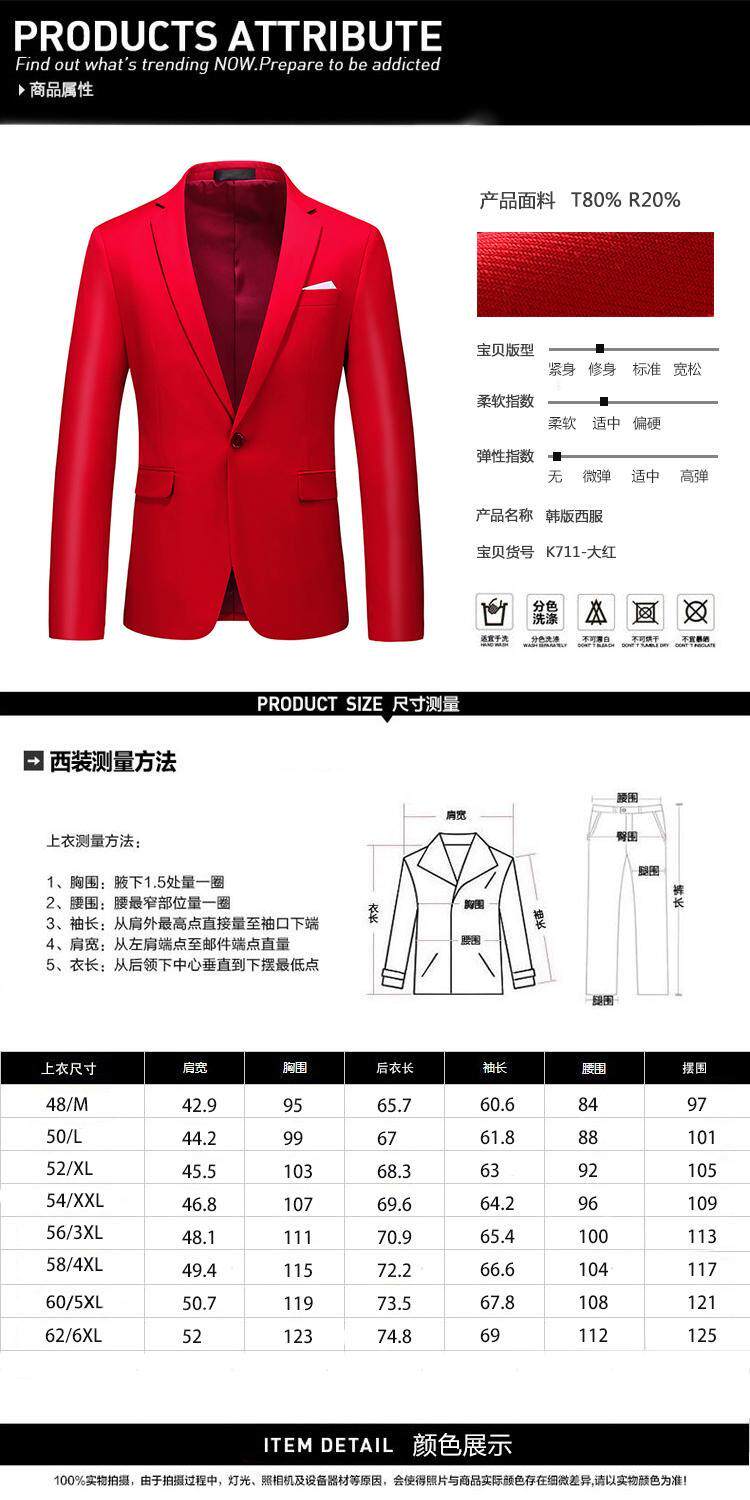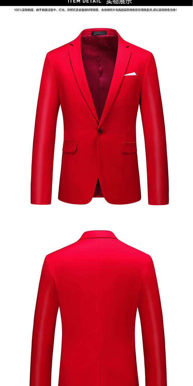 Pure Red Zodiac Year Men's Business Suit for Work, Slim Fit, Notch Lapel, Single-Breasted, Suitable for Hosting and Performances