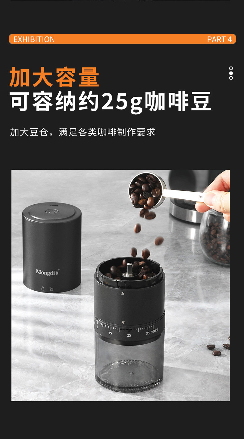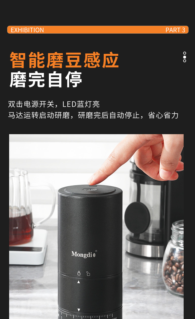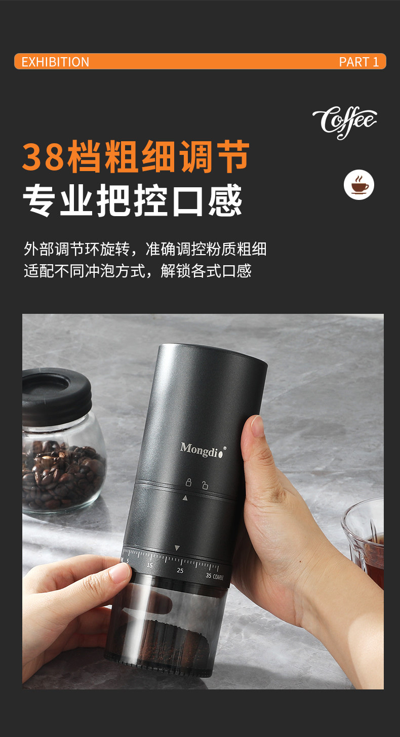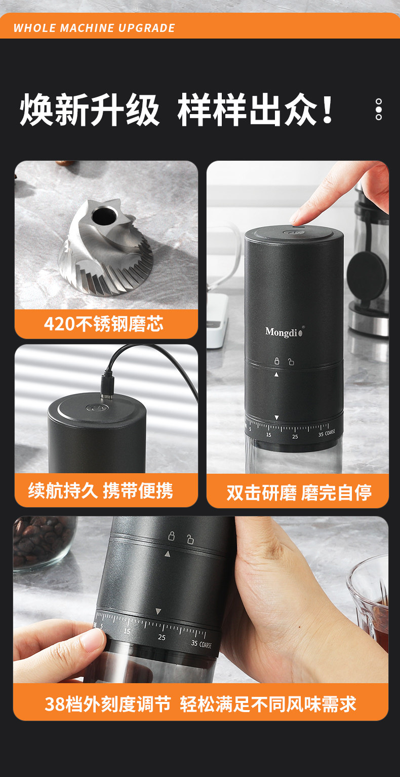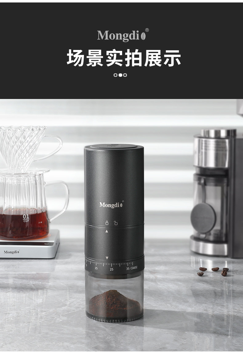 Mongdio electric bean grinder coffee bean grinder household CNC steel core portable coffee grinder bean grinder