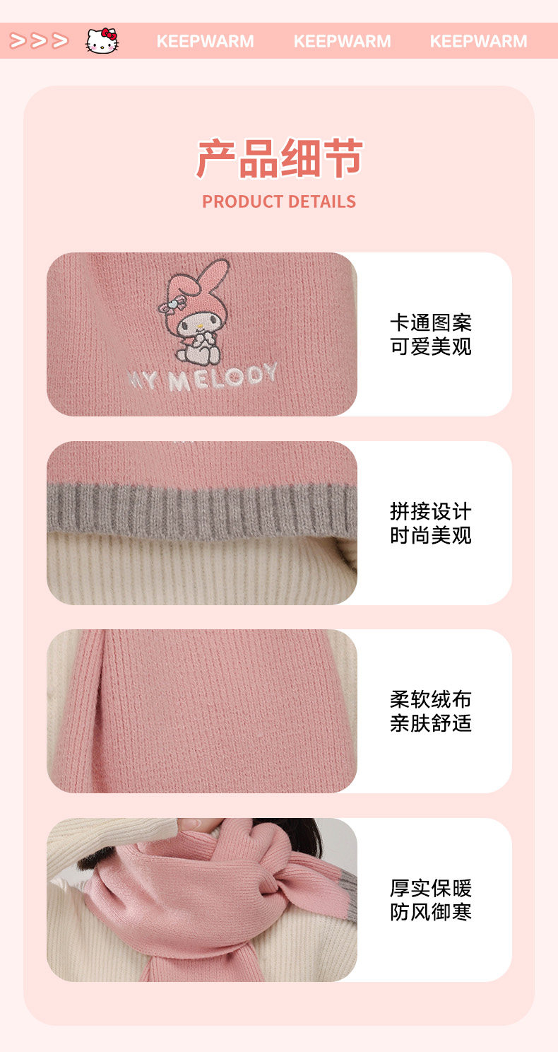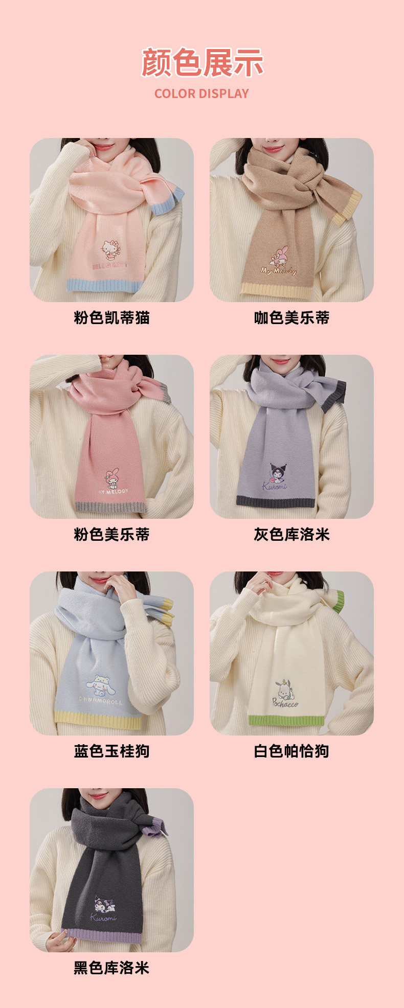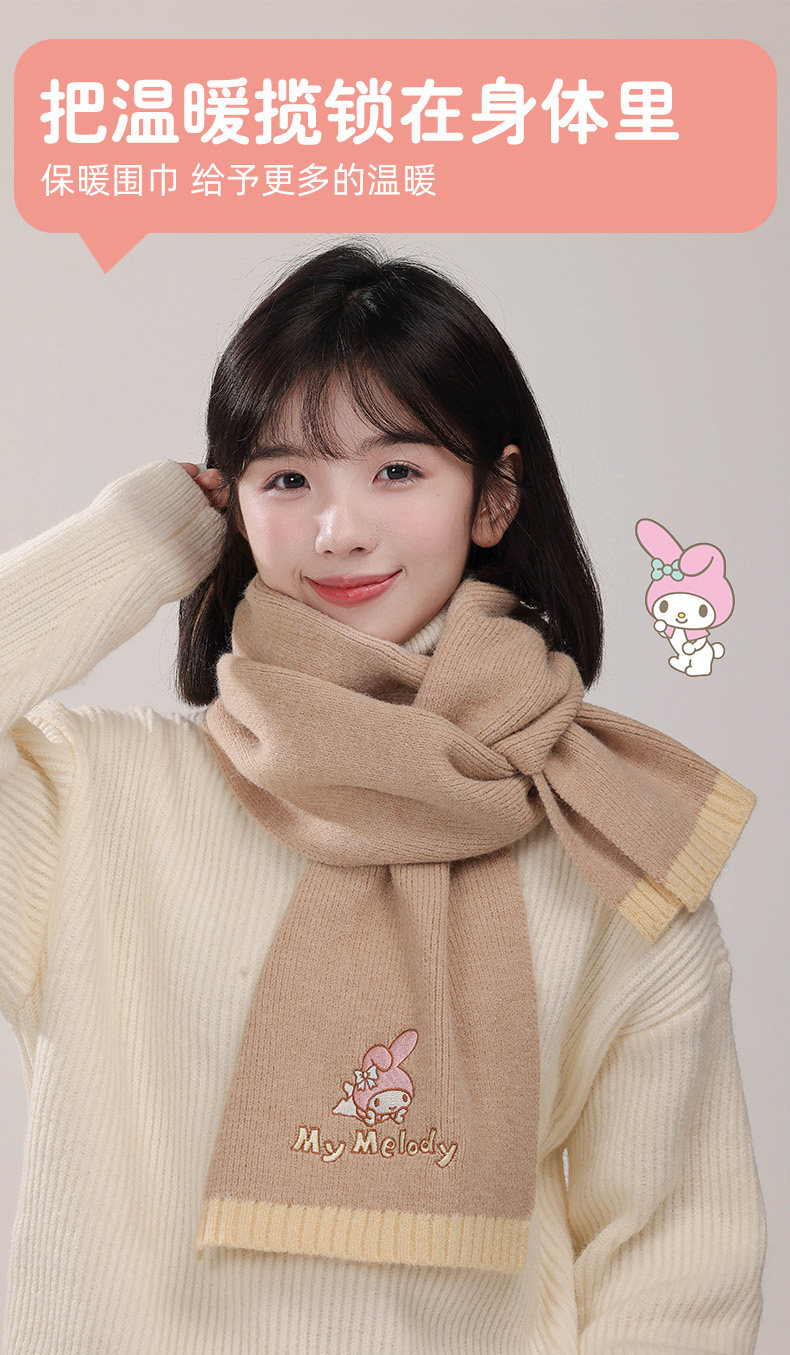 Sanrio genuine knitted scarf 2025 new autumn and winter cute scarf to keep warm for your girlfriend, fashionable and versatile