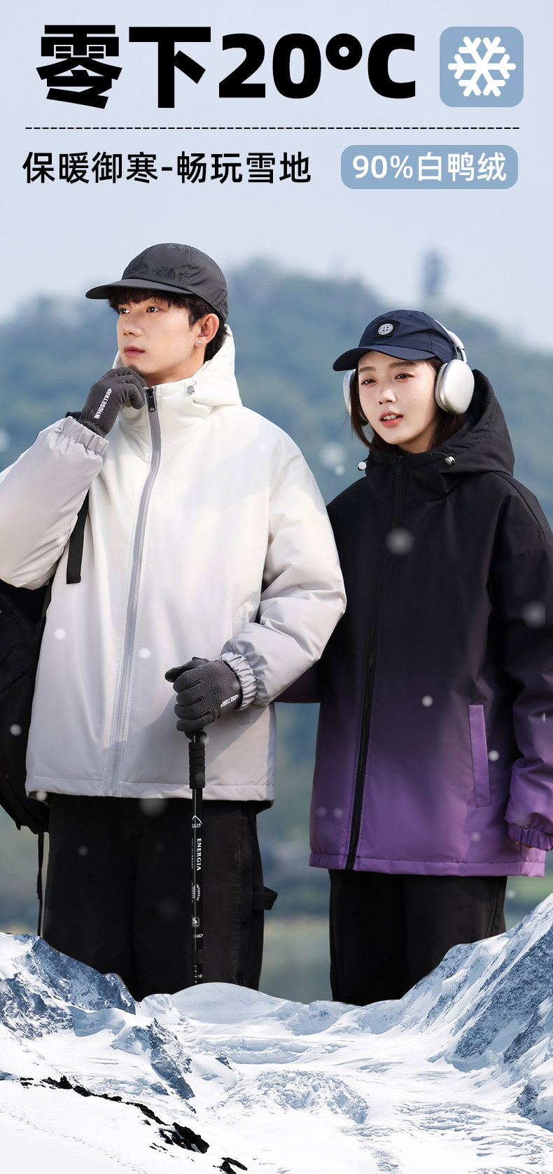 Gradient Down Jacket Men's Jacket Winter 2024 New Youth Loose Warm White Duck Down Coldproof Jacket for Men
