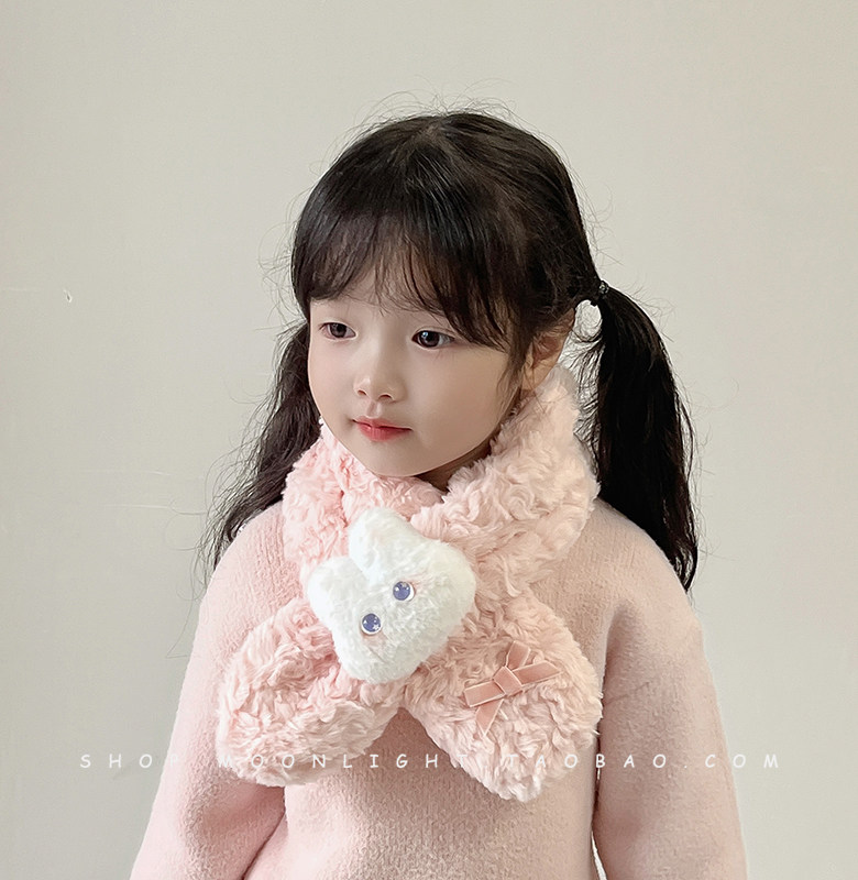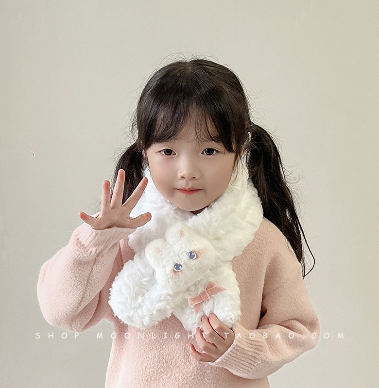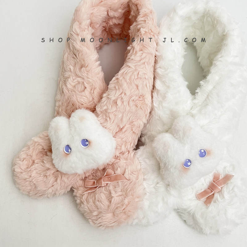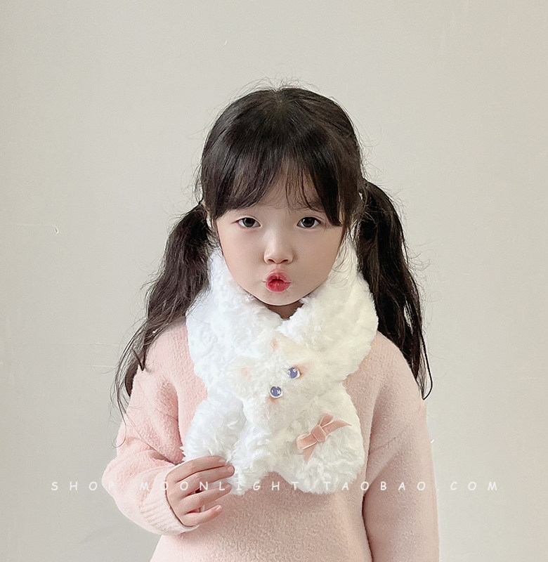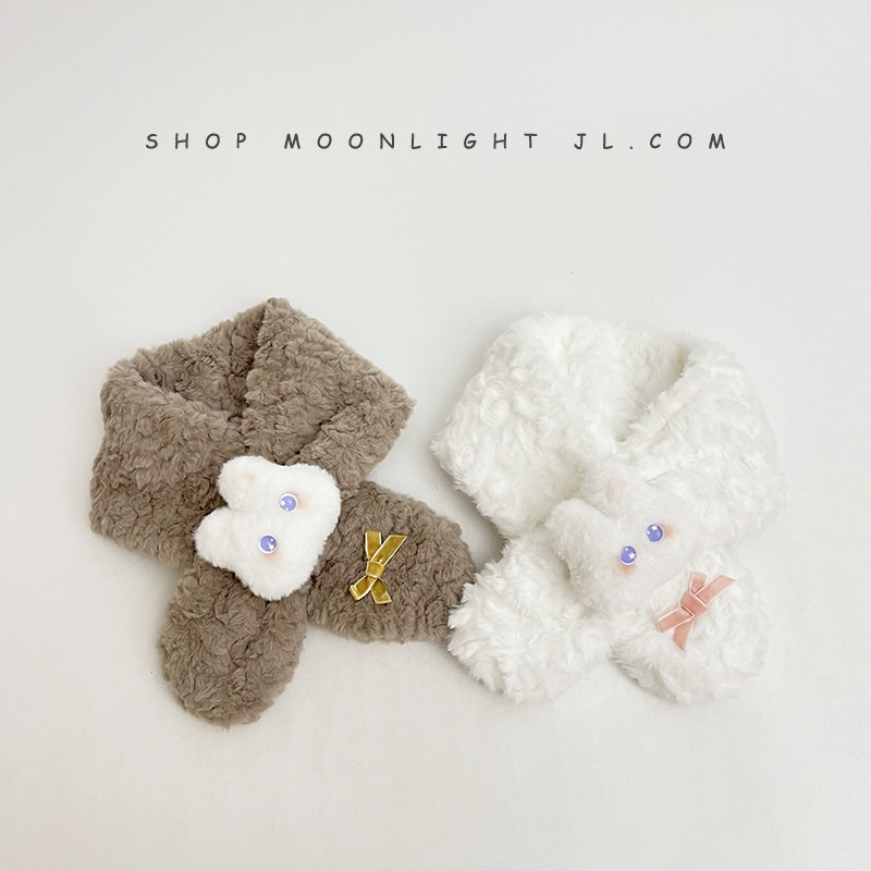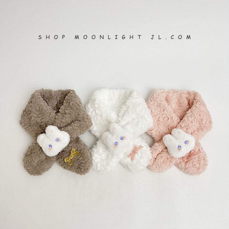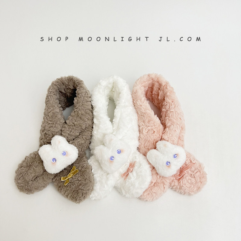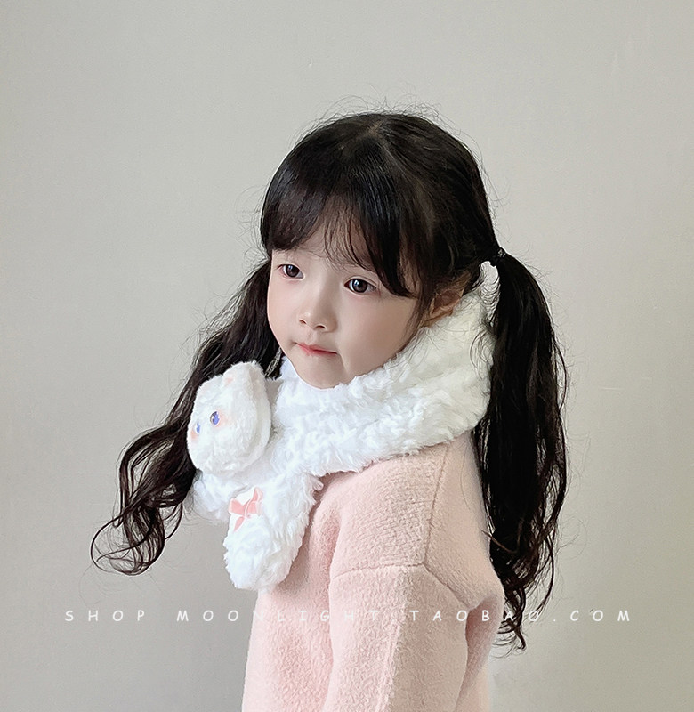 Children's scarf winter thickened plush warm windproof cute bunny doll female baby baby cross scarf