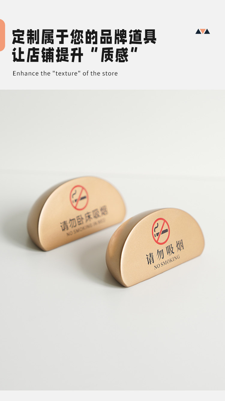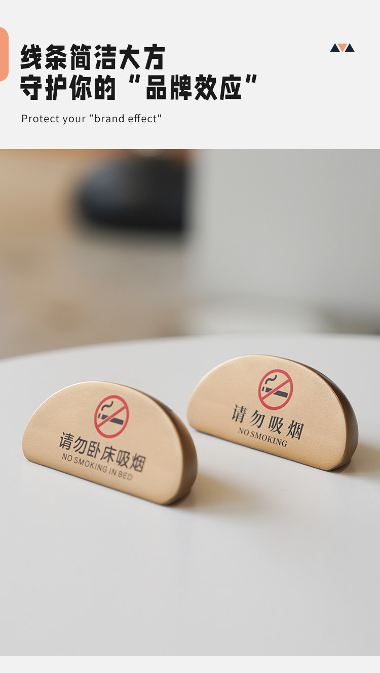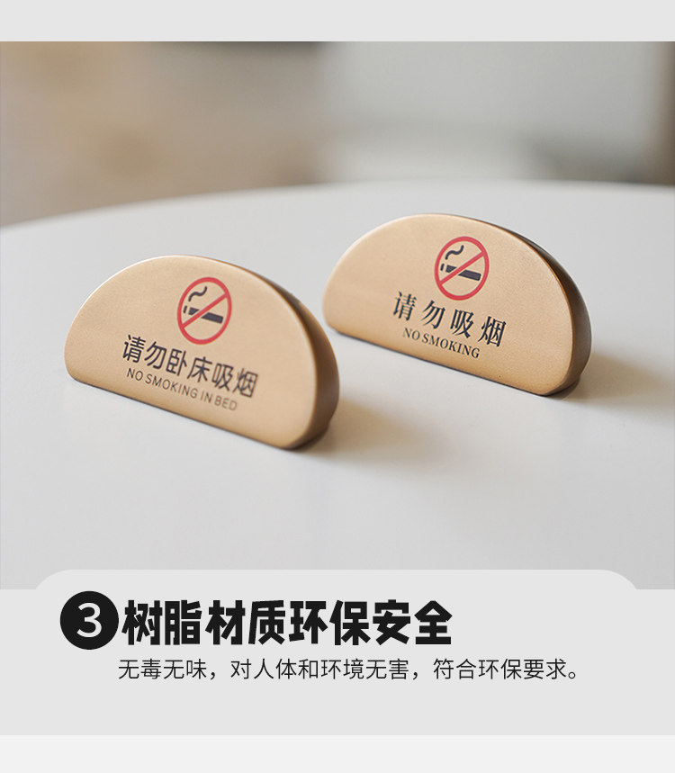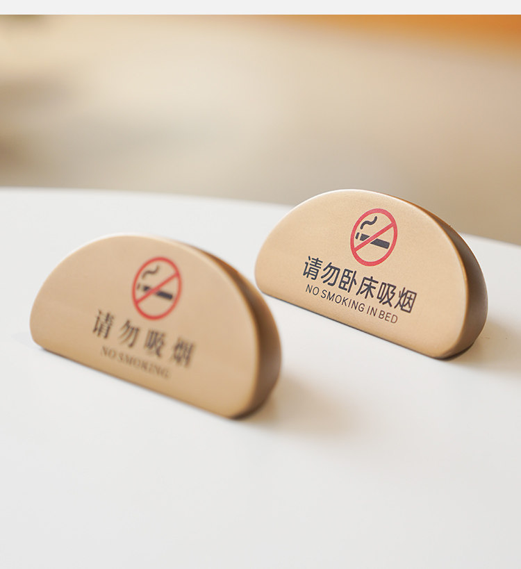 No smoking warning sign, high-end B&B hotel room, please do not lie in bed, smoking table sign, bedside table display