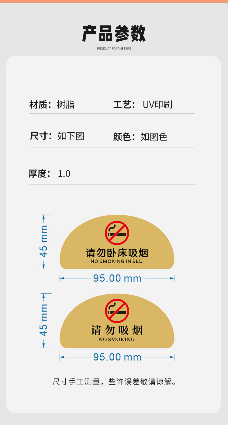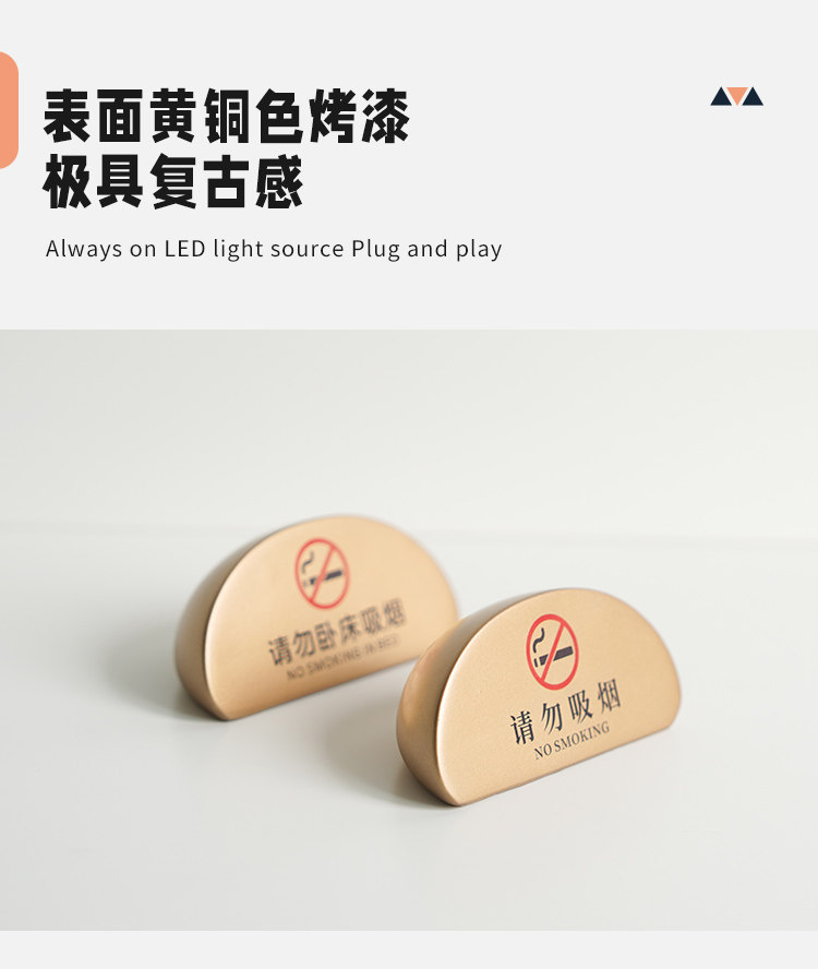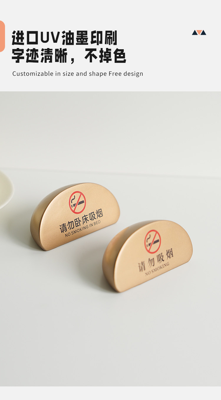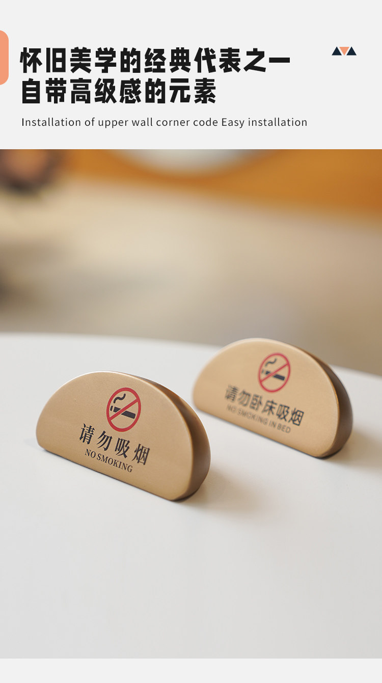 No smoking warning sign, high-end B&B hotel room, please do not lie in bed, smoking table sign, bedside table display