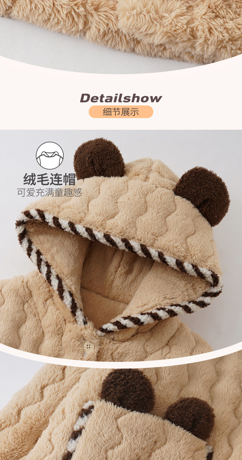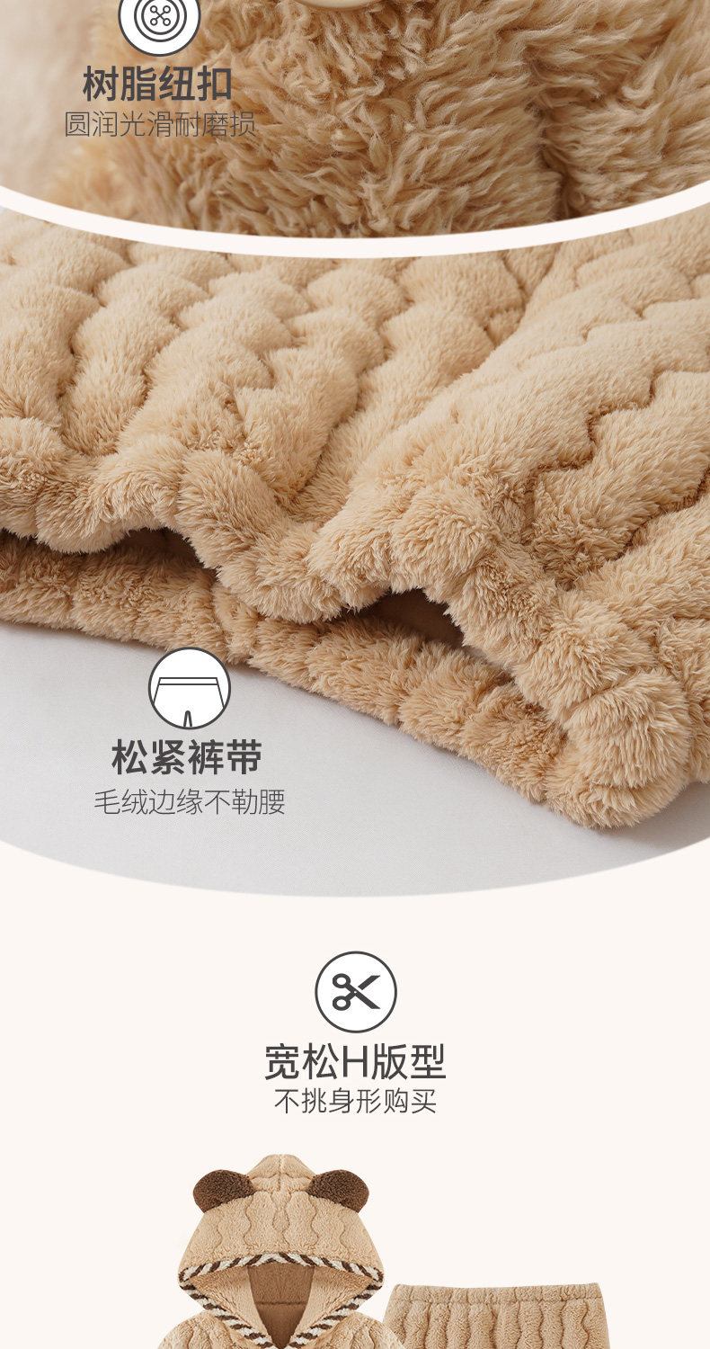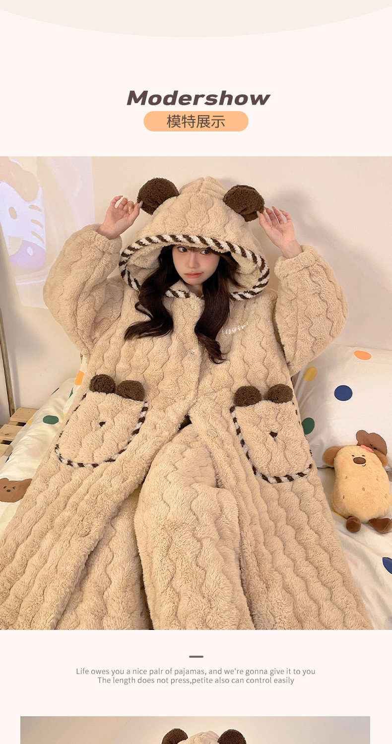 Three-Layer Quilted Coral Fleece Plus Velvet Thickened Autumn and Winter New Women's Robe Large Size Pajama Set Loungewear