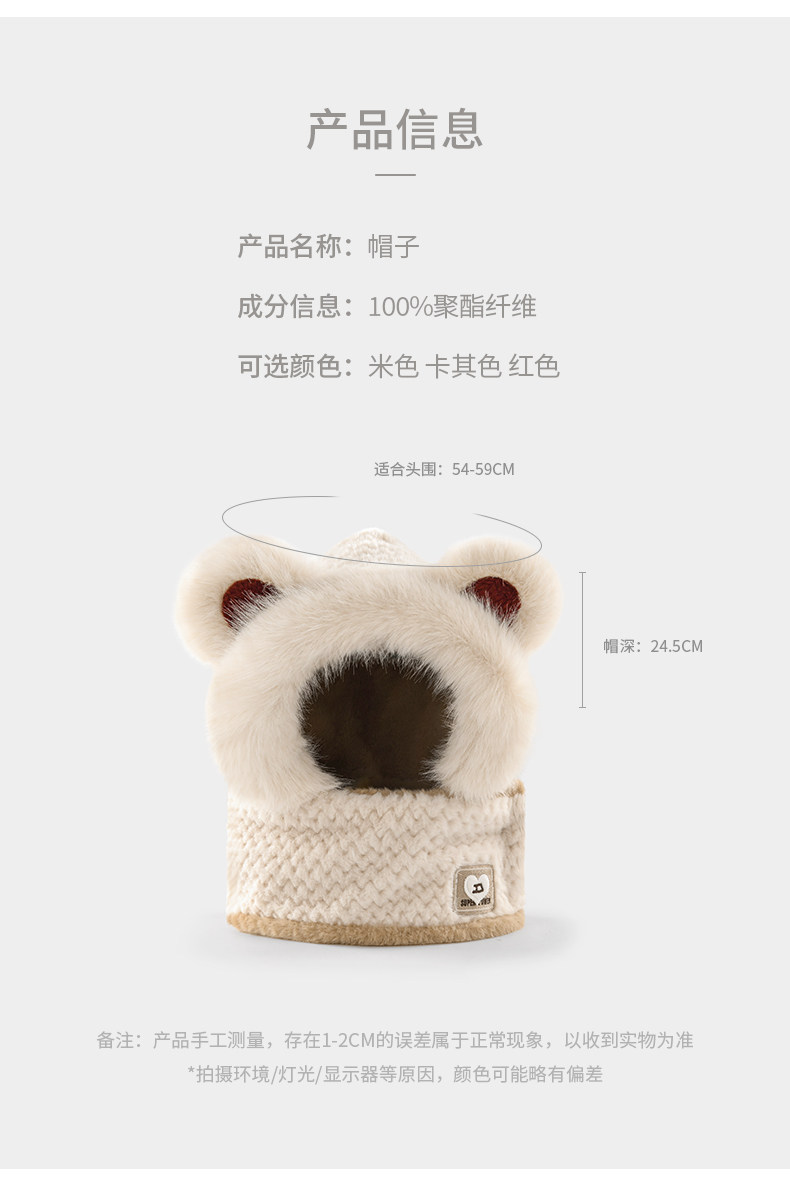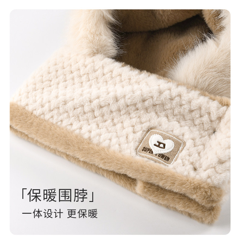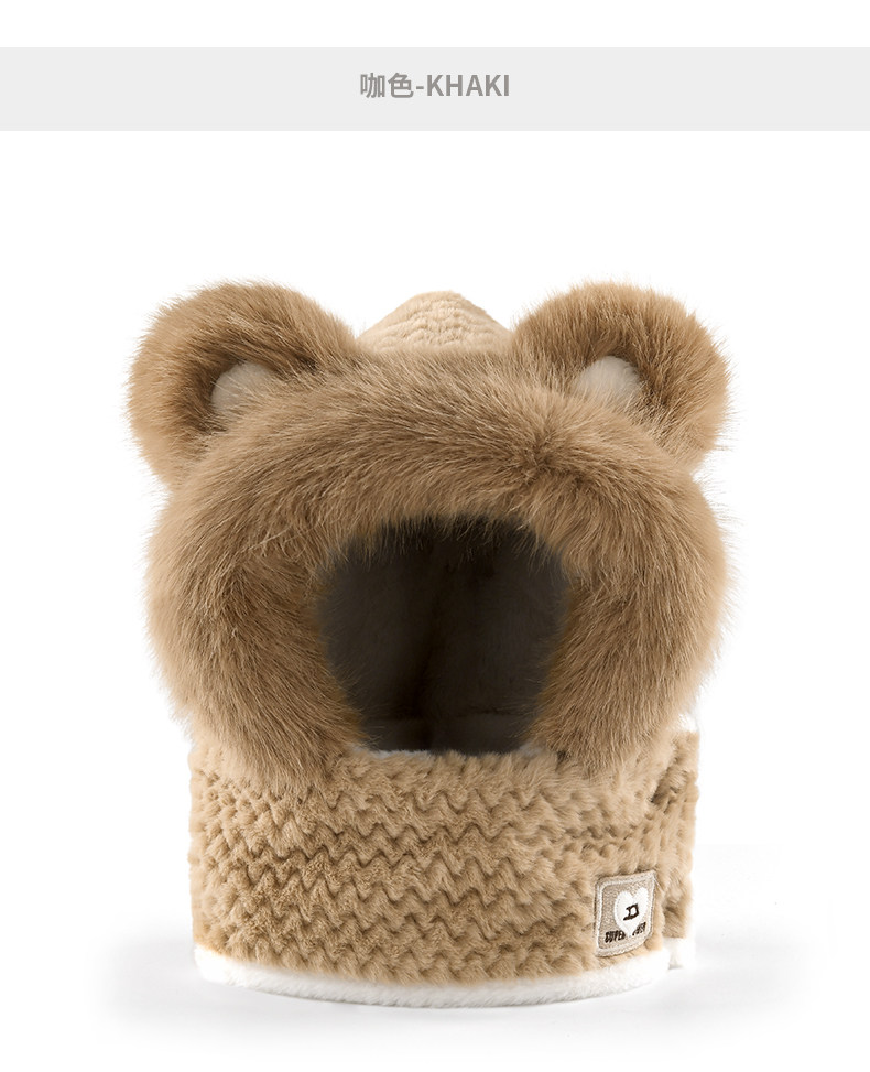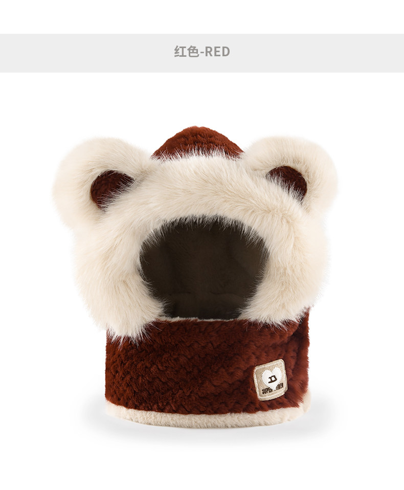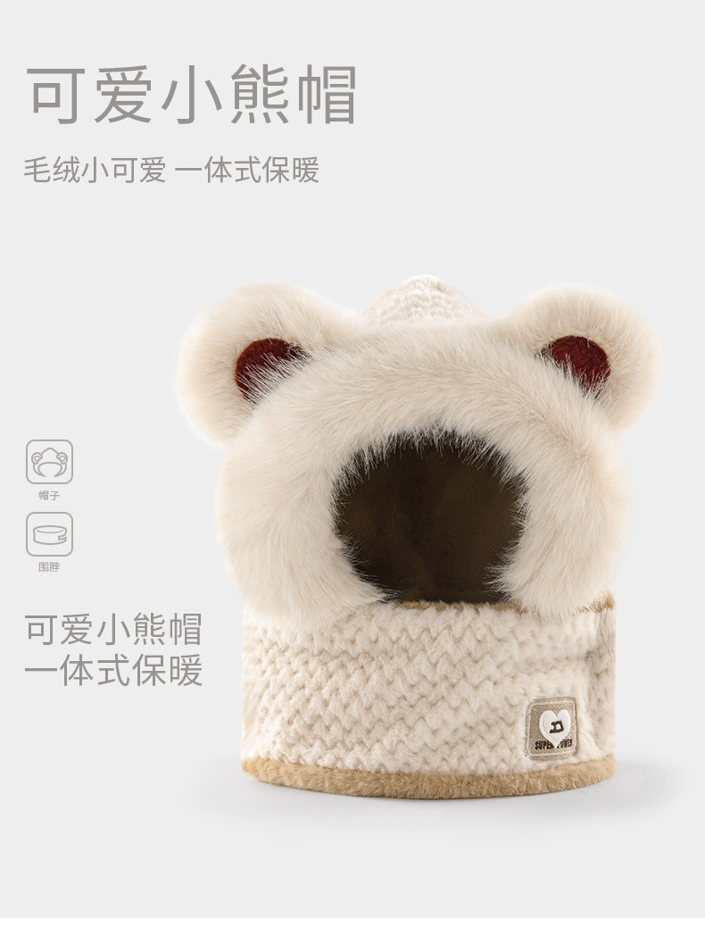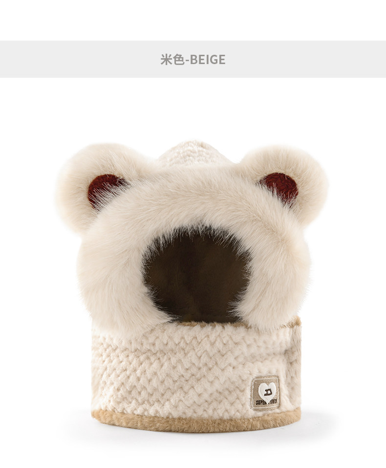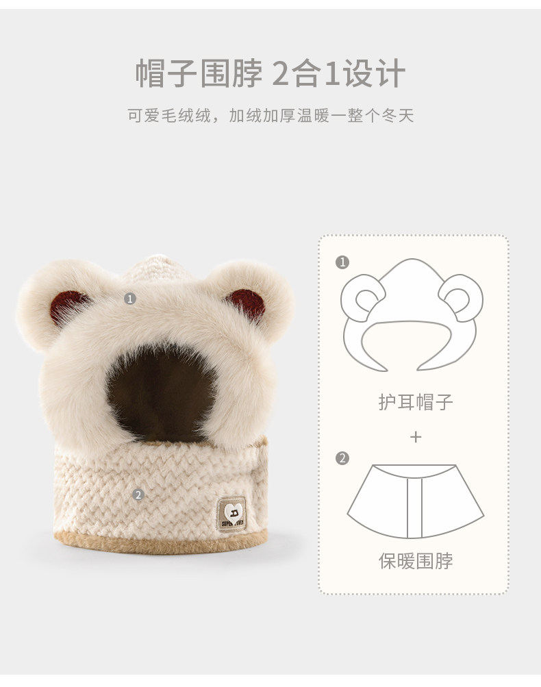 Coso Kidsren's Hat and Scarf Integrated Autumn and Winter Cute Baby Bear Plush Scarf for Boys and Girls with Ear Protection and Warmth