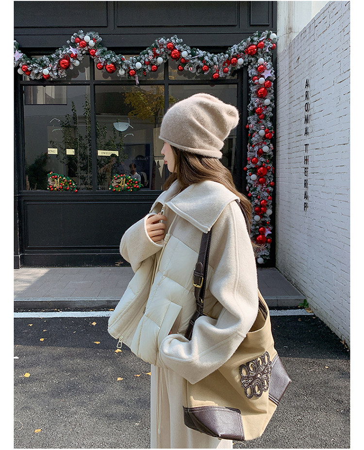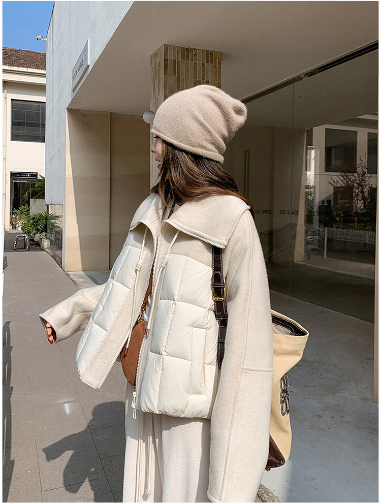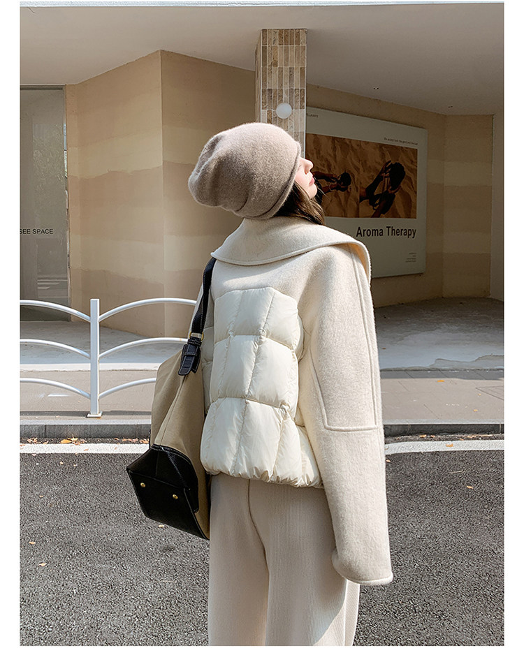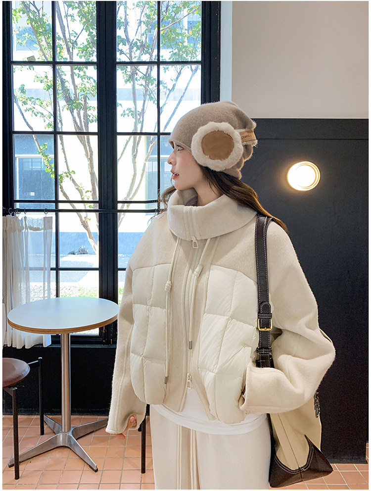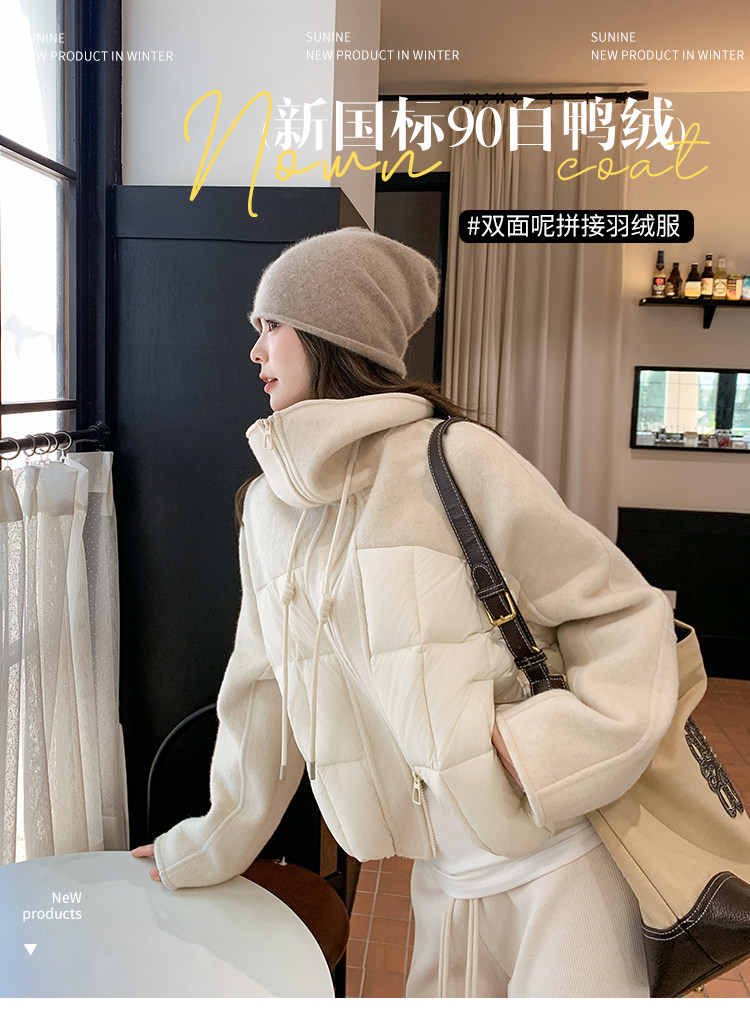 Off-White Patchwork Short down Jacket for Women, 2025 Winter New Style, Unique and Stylish Design, 90% White Duck down Coat