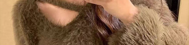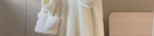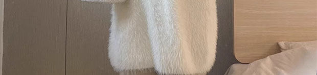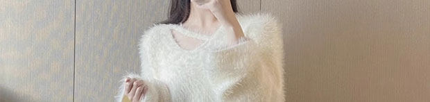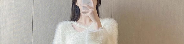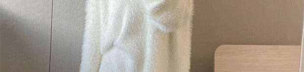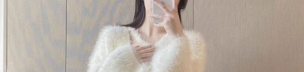 White Faux Mink Velvet Soft and Fluffy Sweater for Women, Autumn and Winter, Petite Loose Mid-Length V-Neck Knitwear