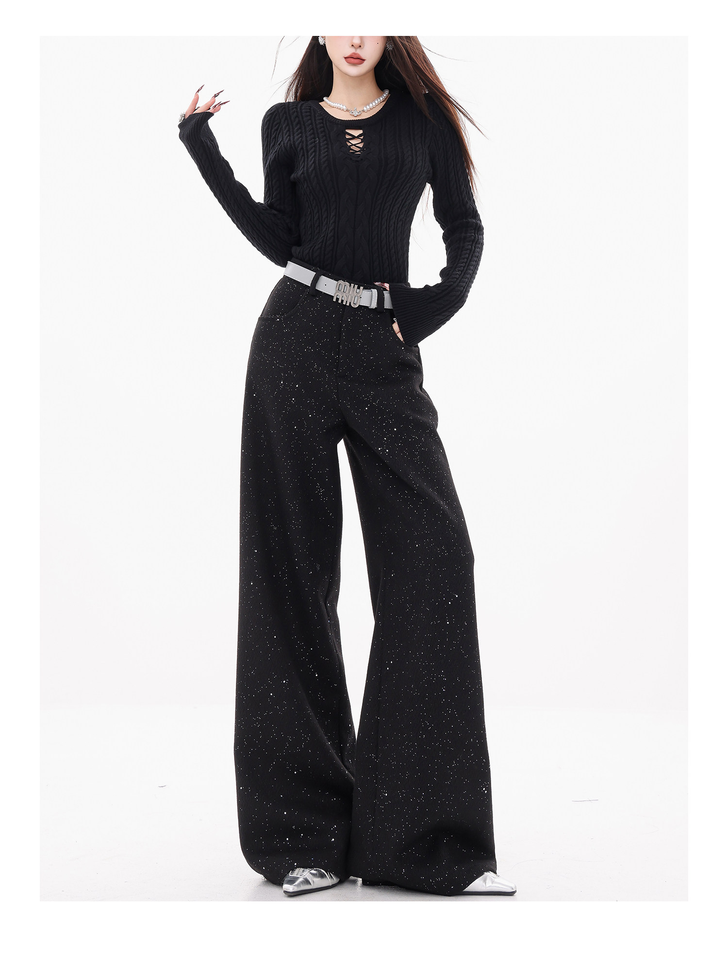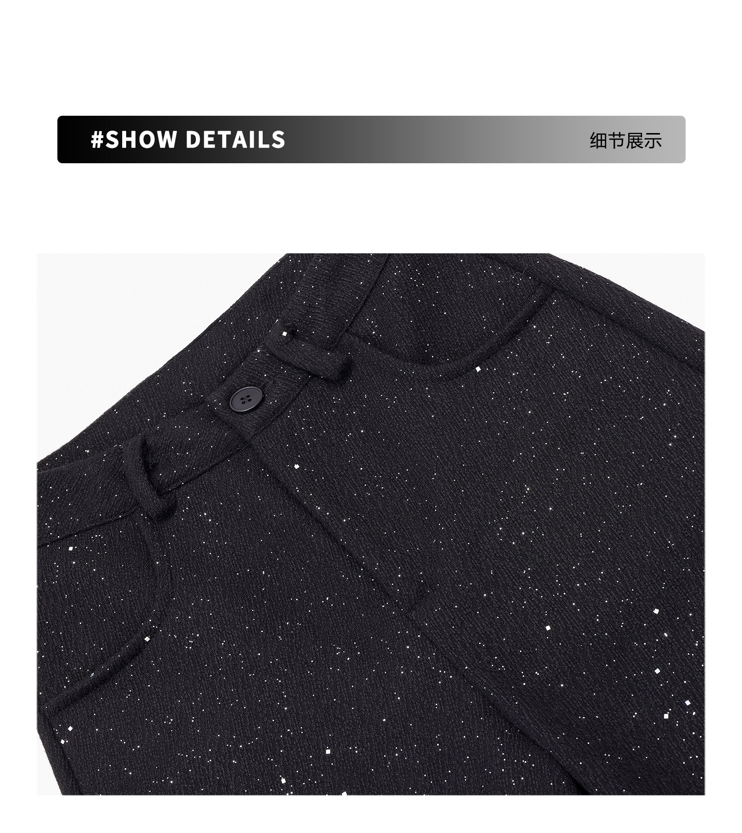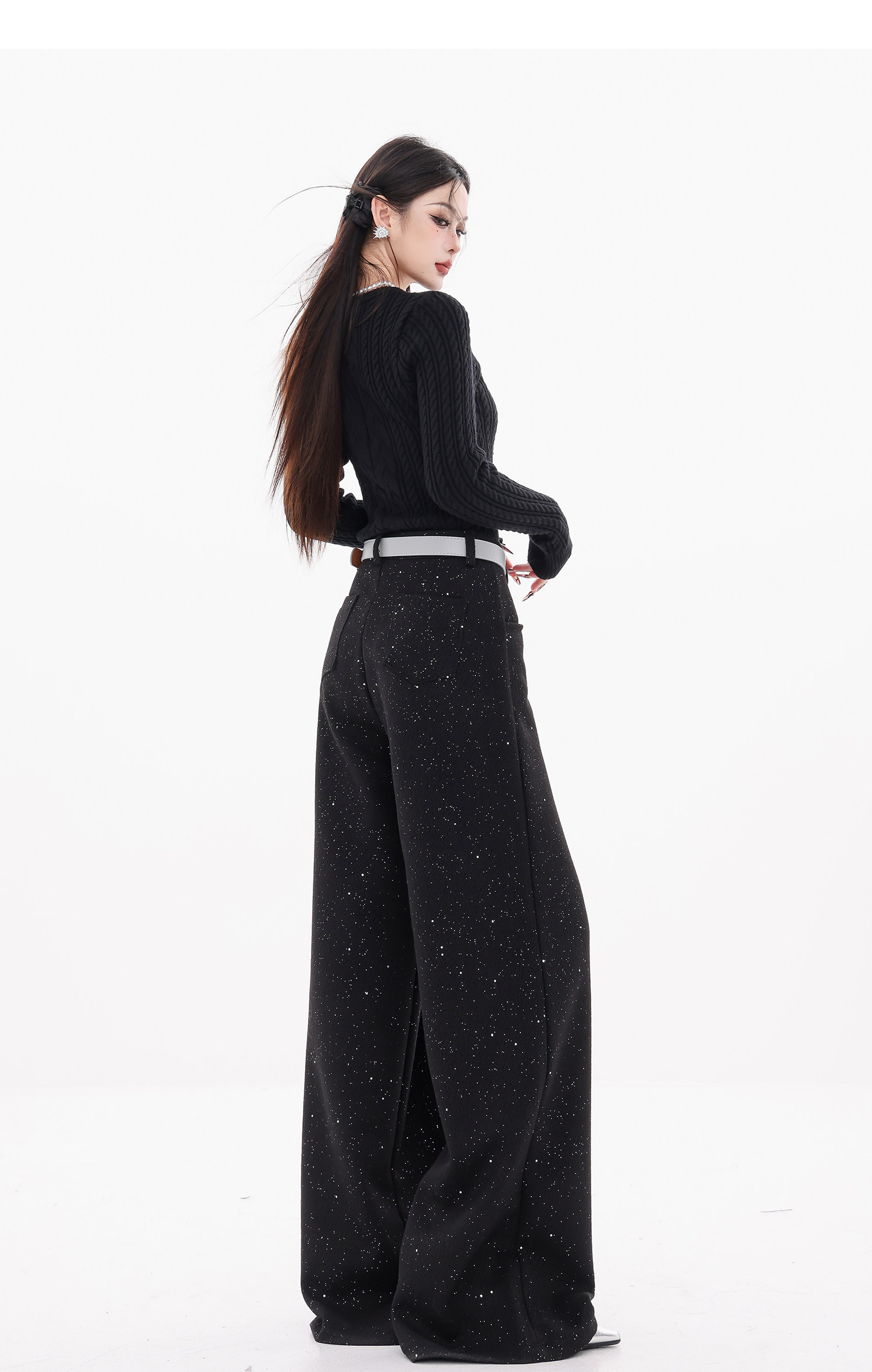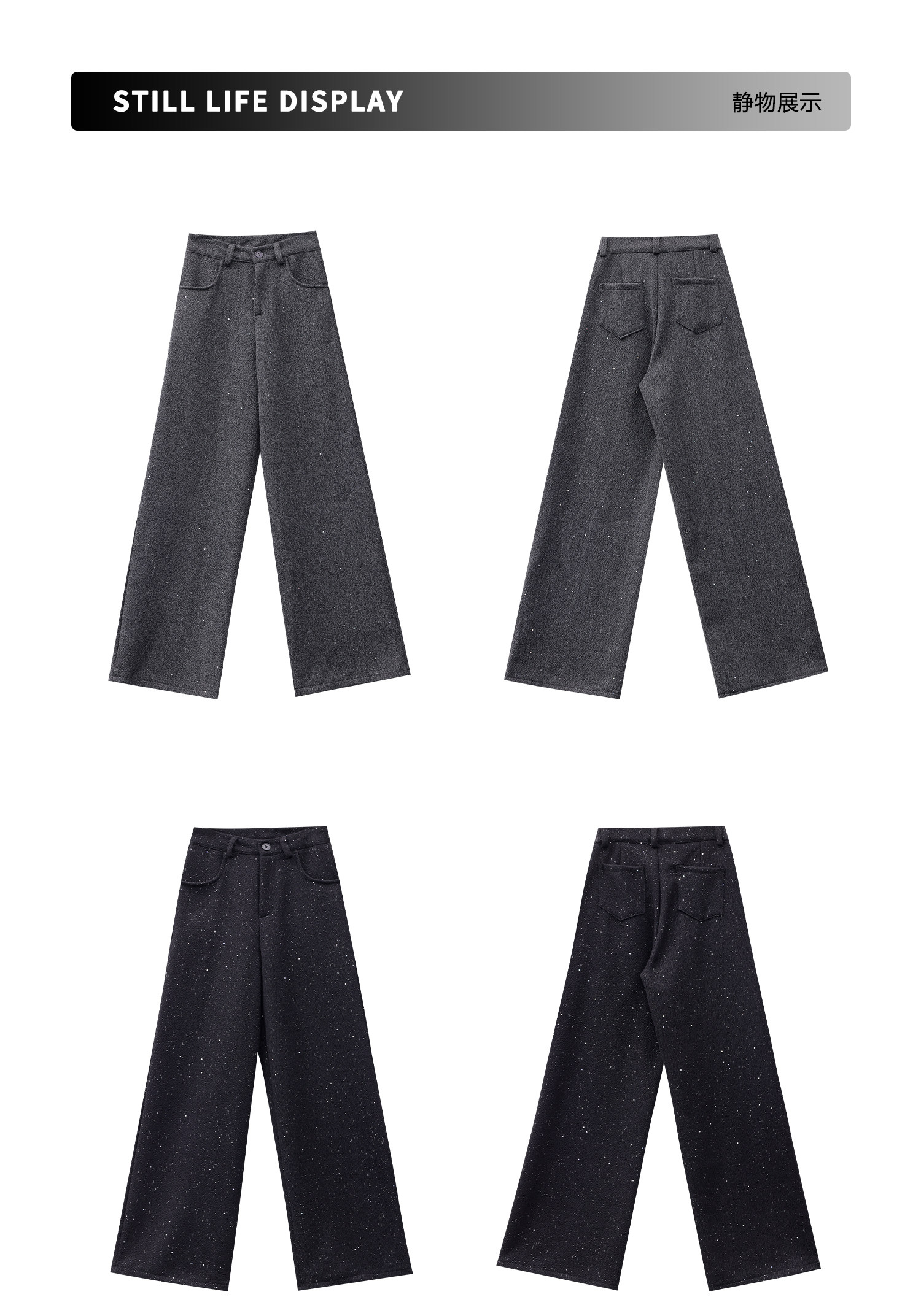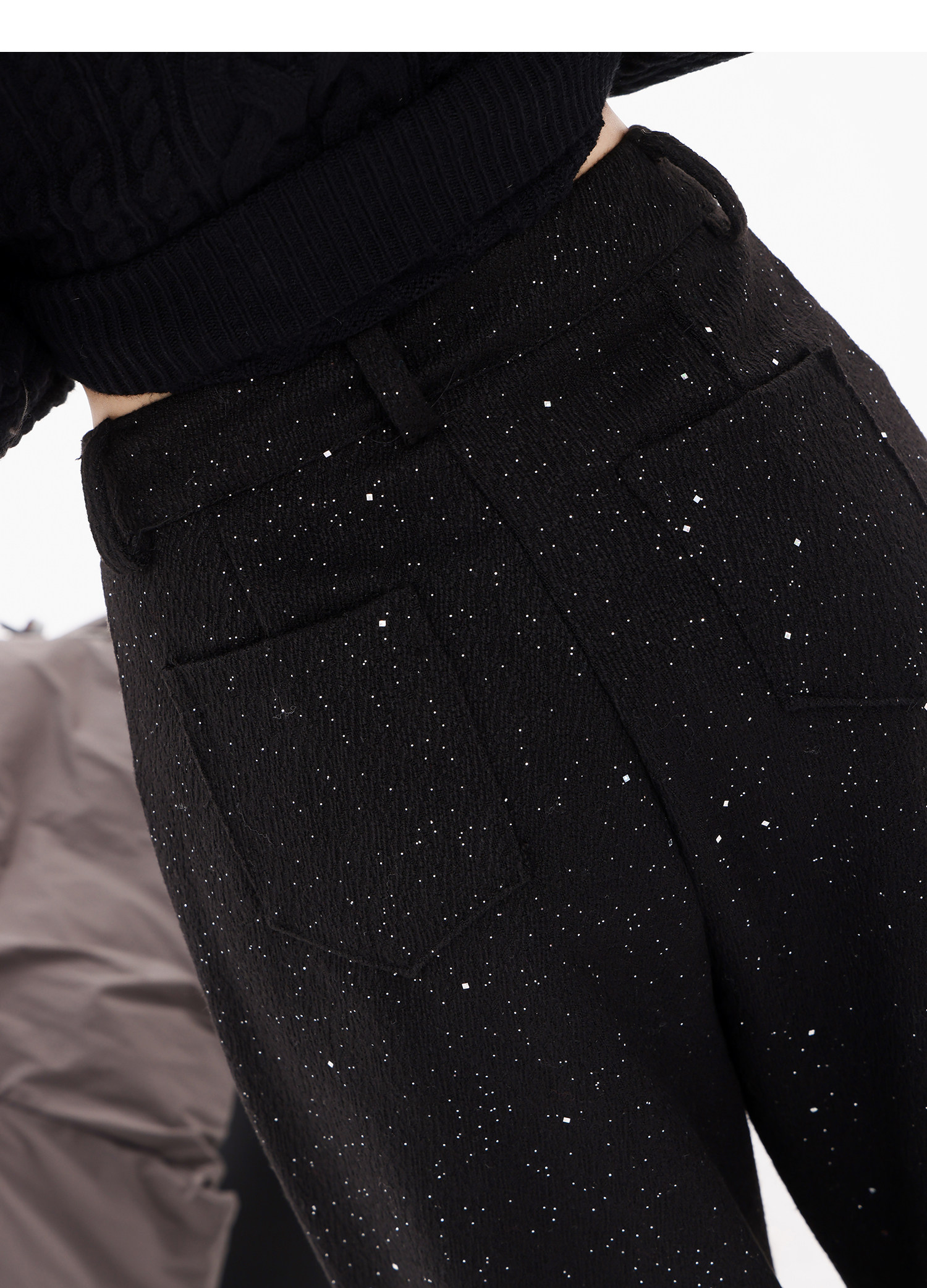 Abwear St. Luoyue Night-Original Black Woolen Sequin Suit Pants Women's 2024 Autumn and Winter Wide Leg Straight-Leg Pants