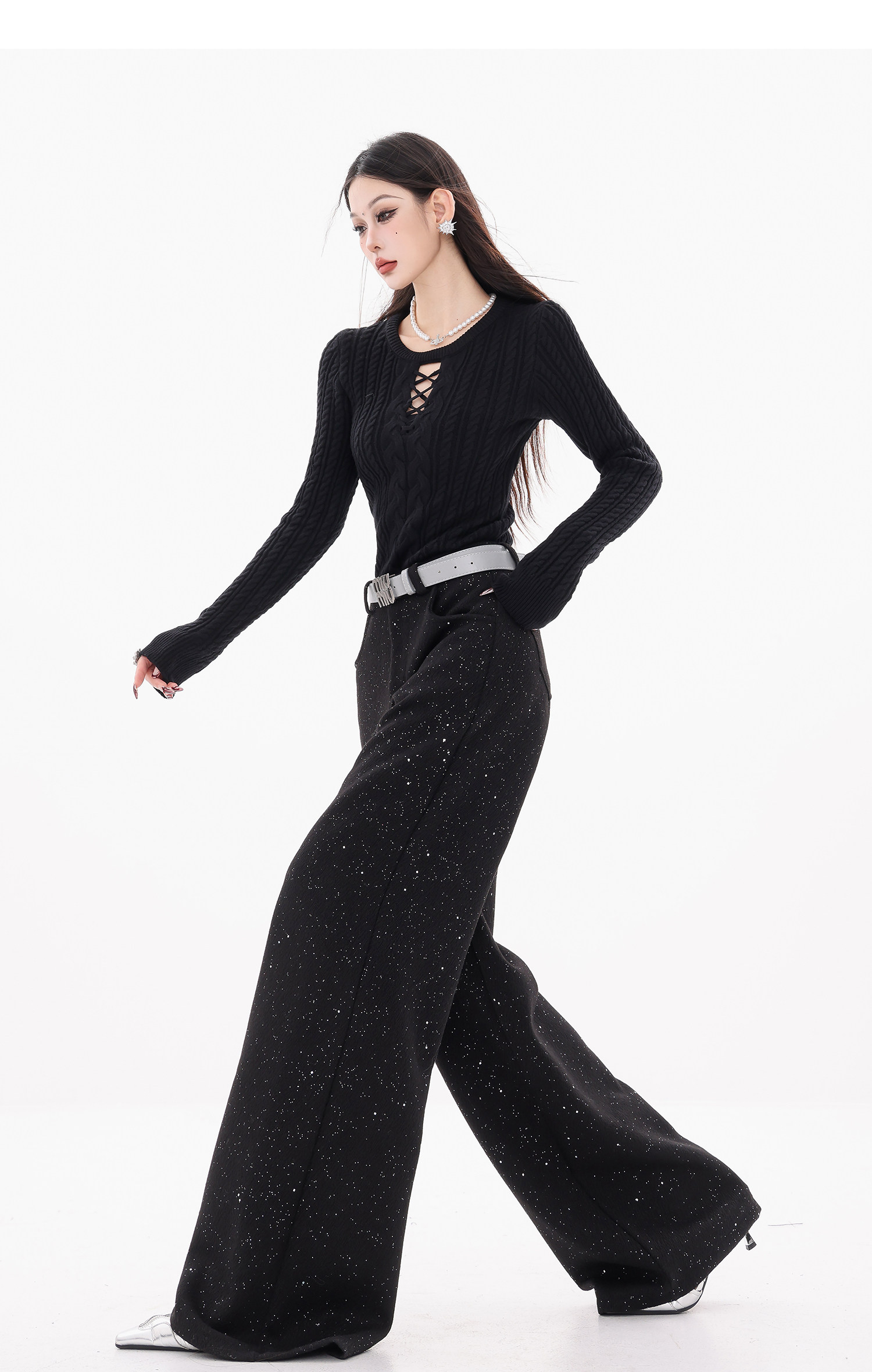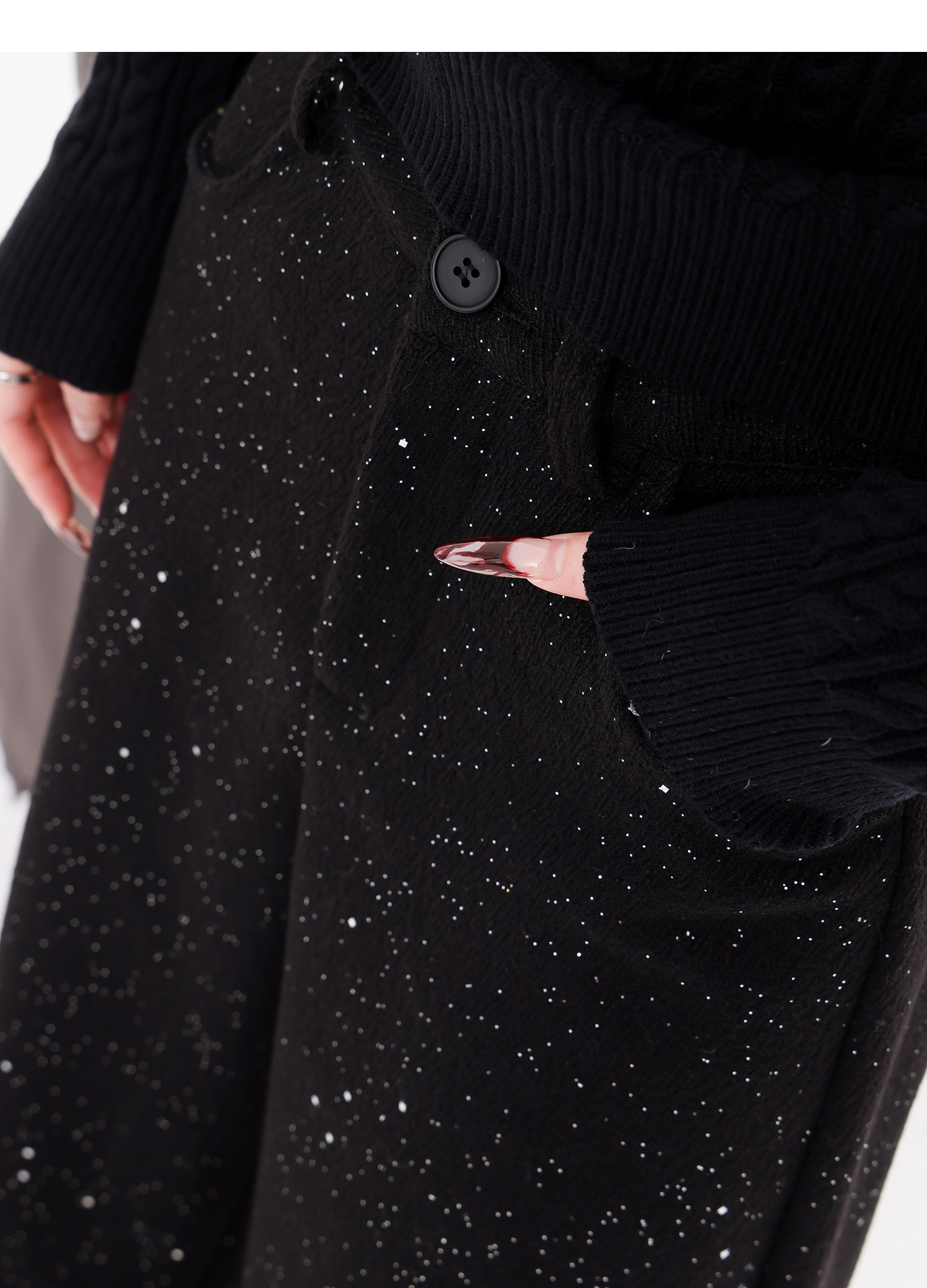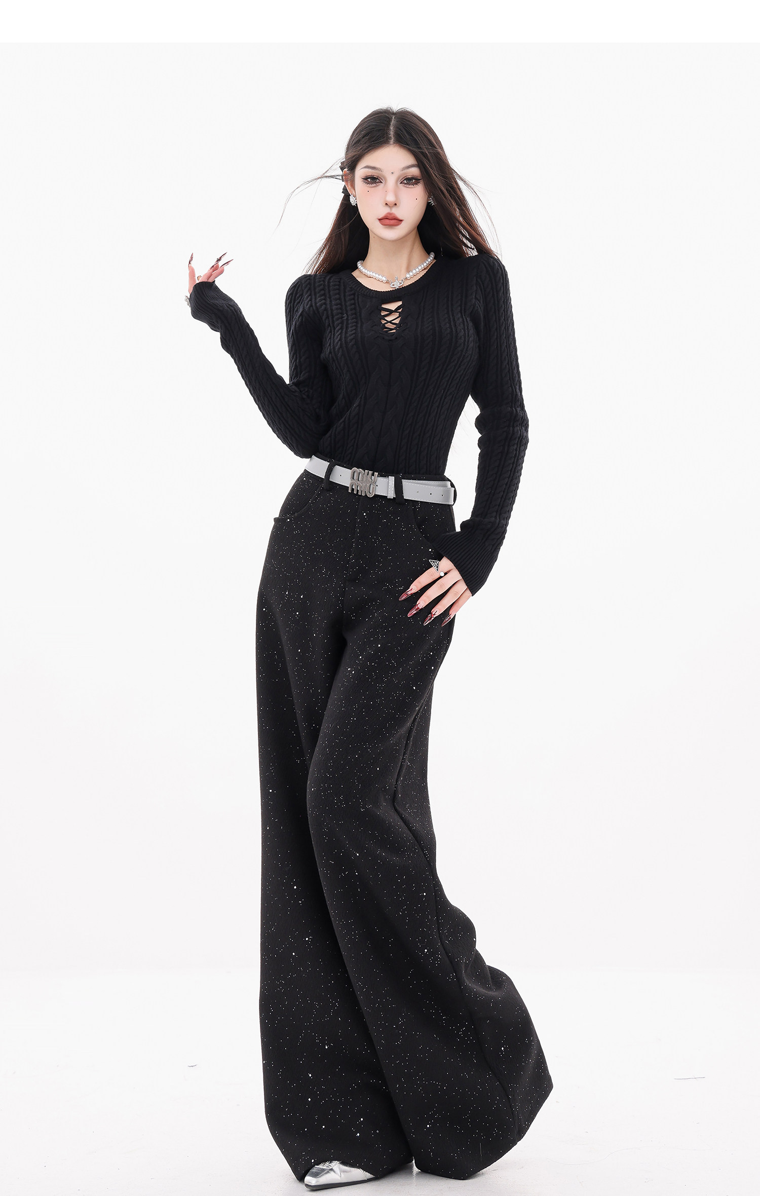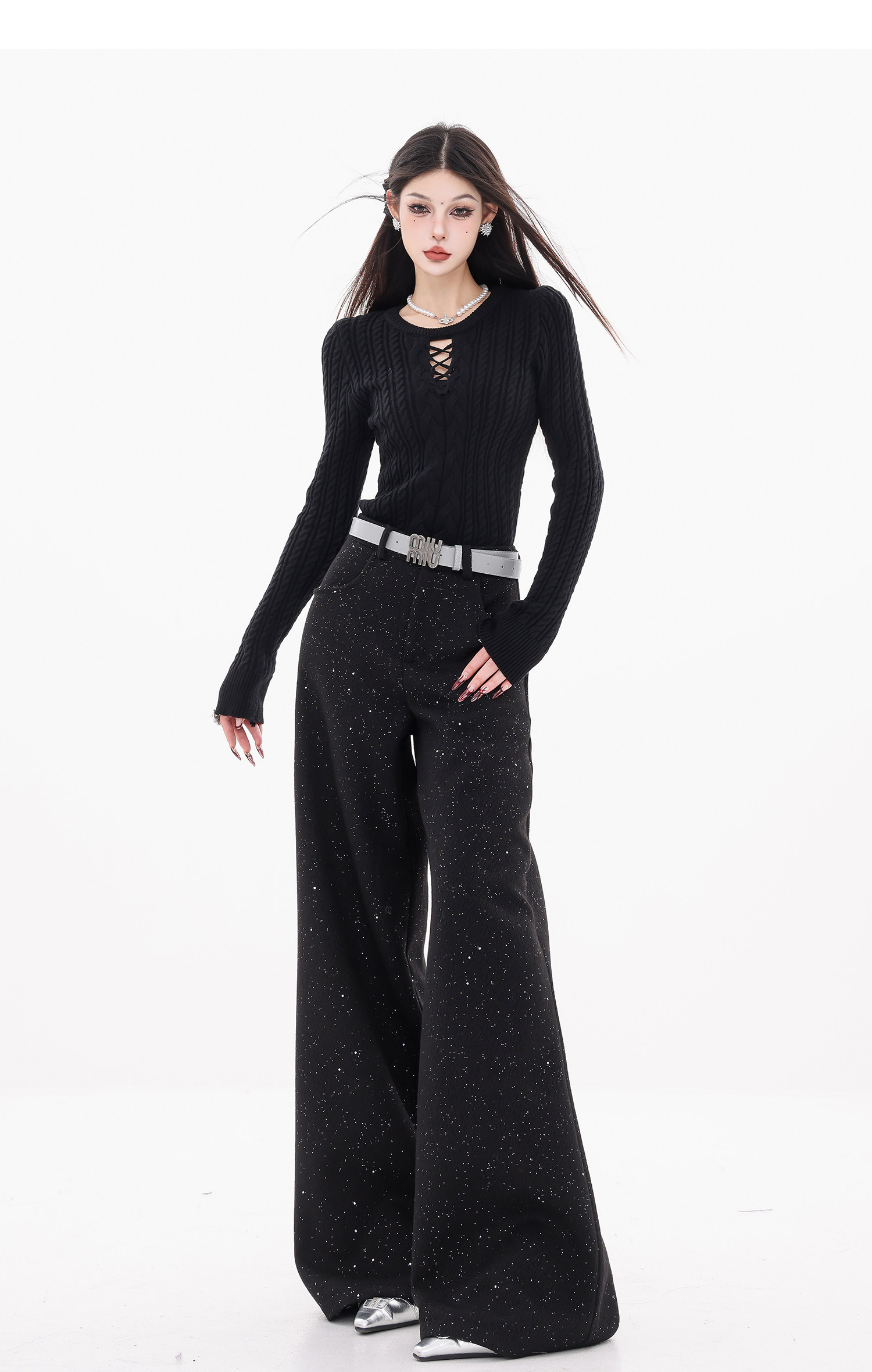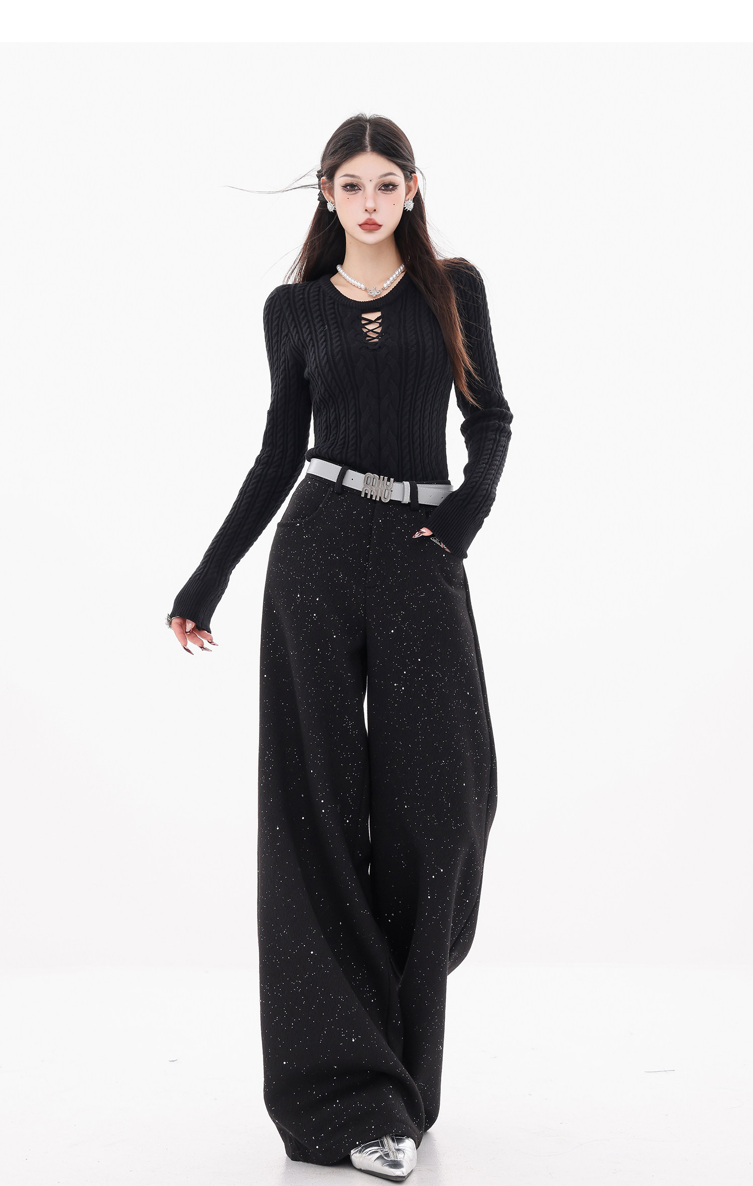 Abwear St. Luoyue Night-Original Black Woolen Sequin Suit Pants Women's 2024 Autumn and Winter Wide Leg Straight-Leg Pants
