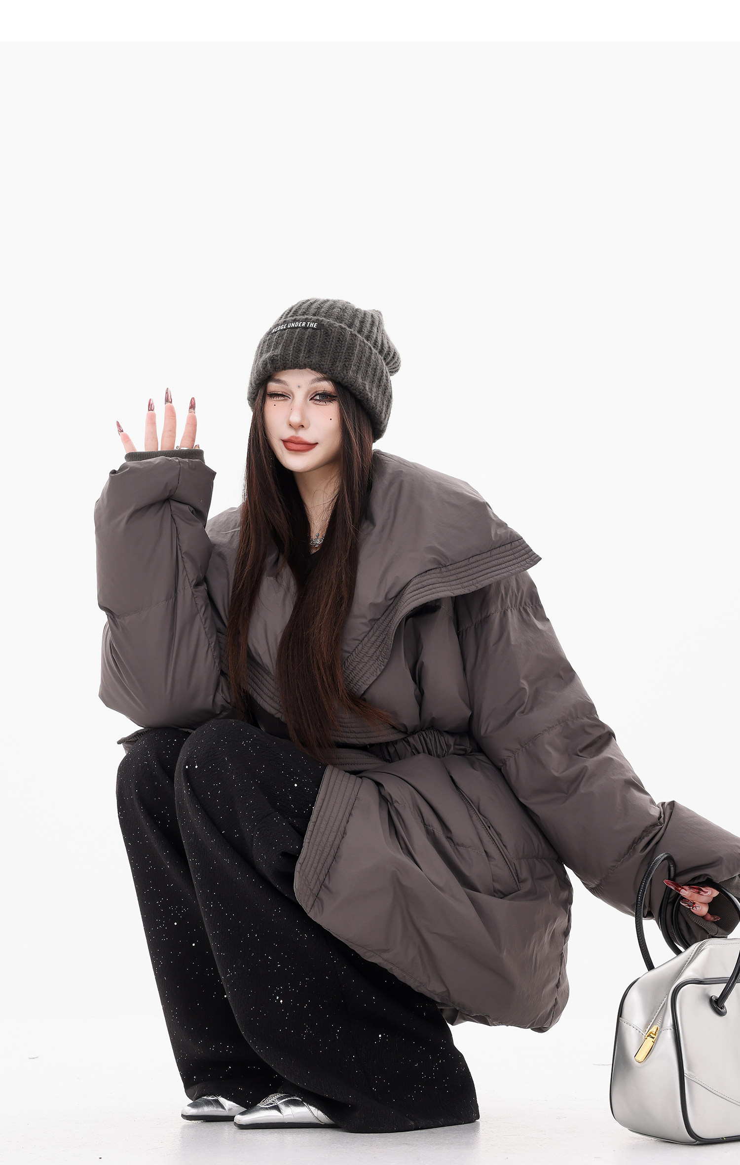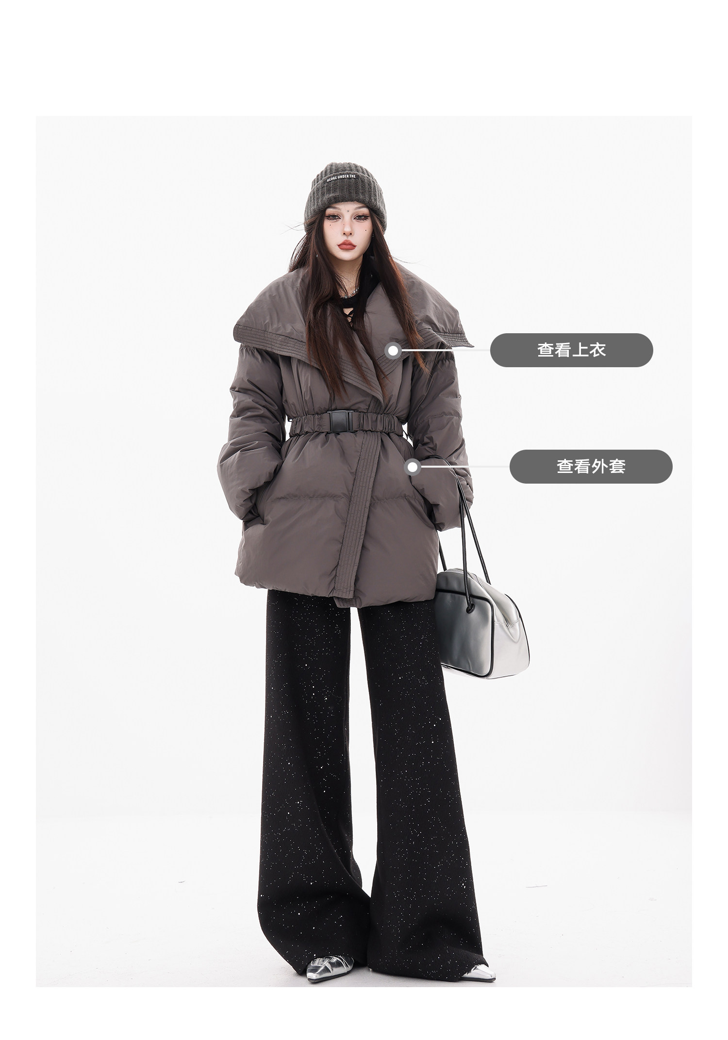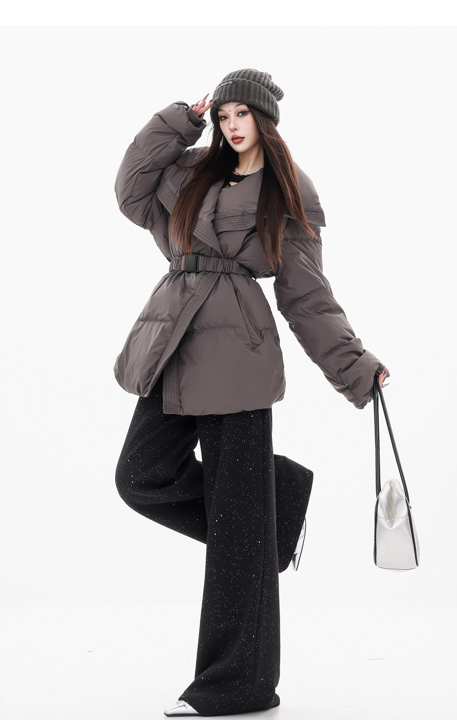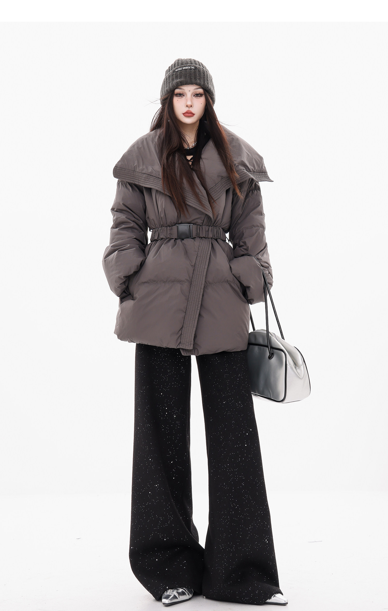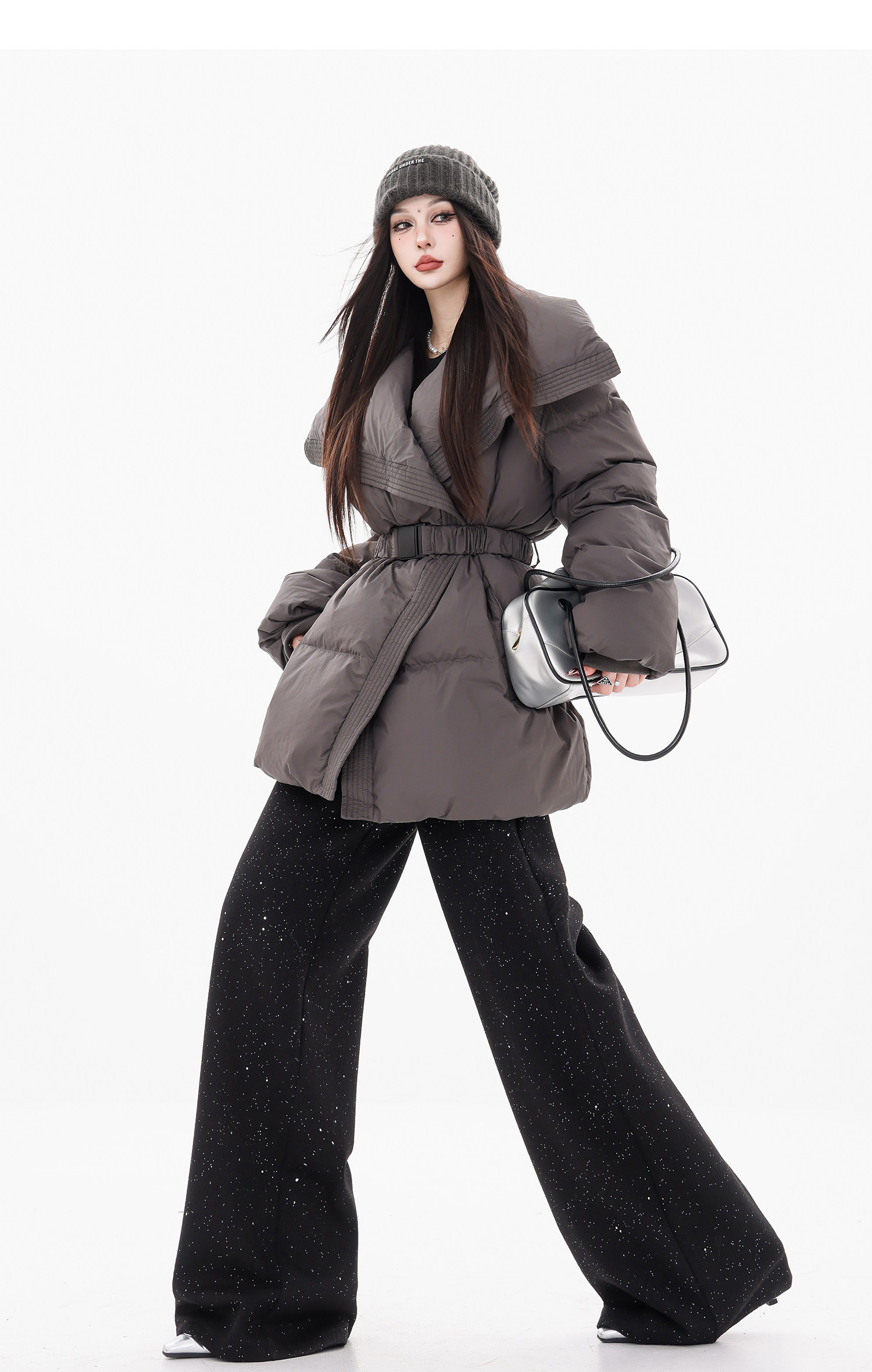 Abwear St. Luoyue Night-Original Black Woolen Sequin Suit Pants Women's 2024 Autumn and Winter Wide Leg Straight-Leg Pants