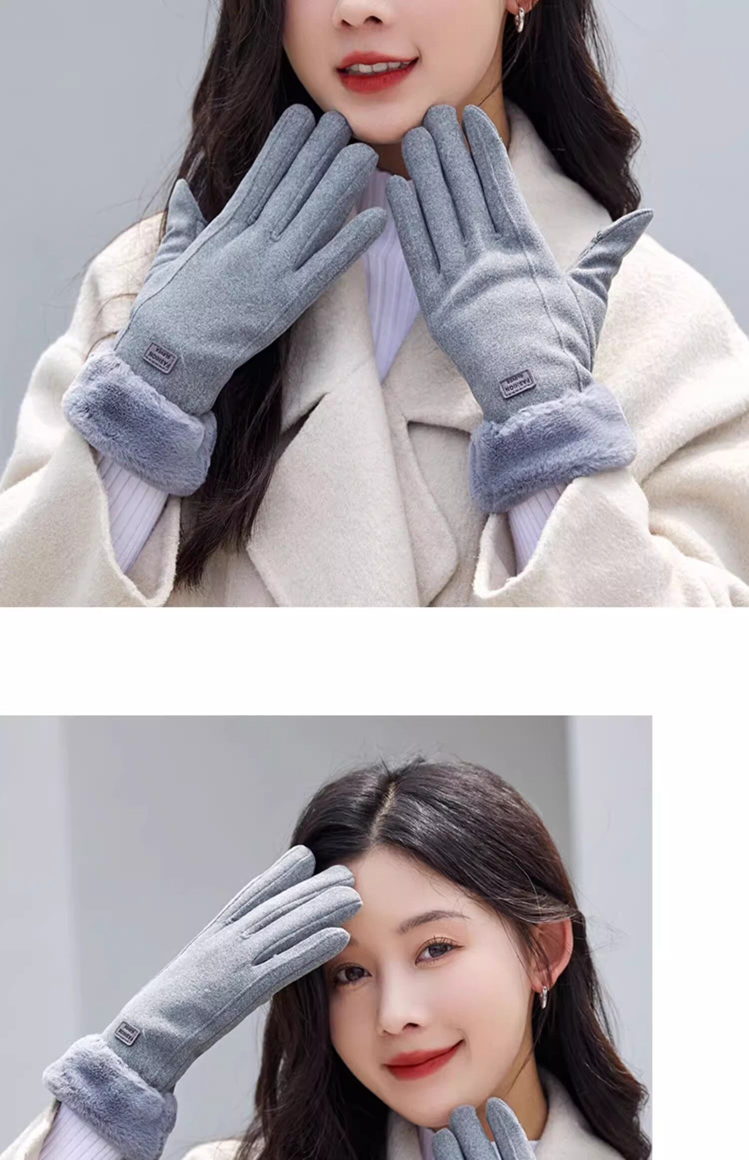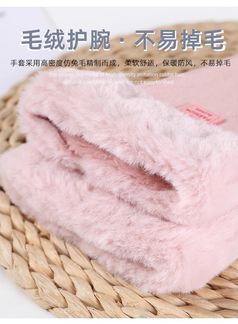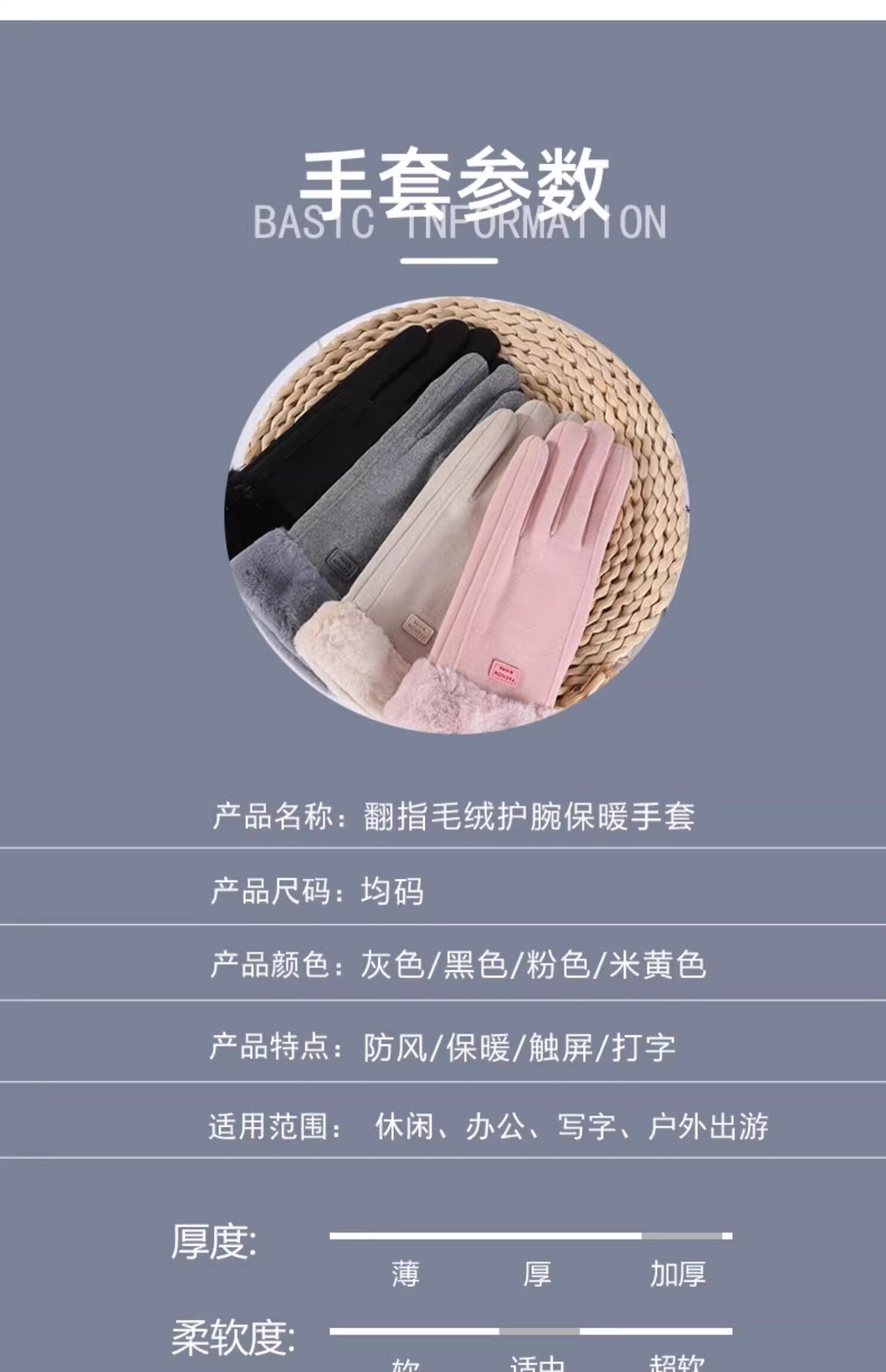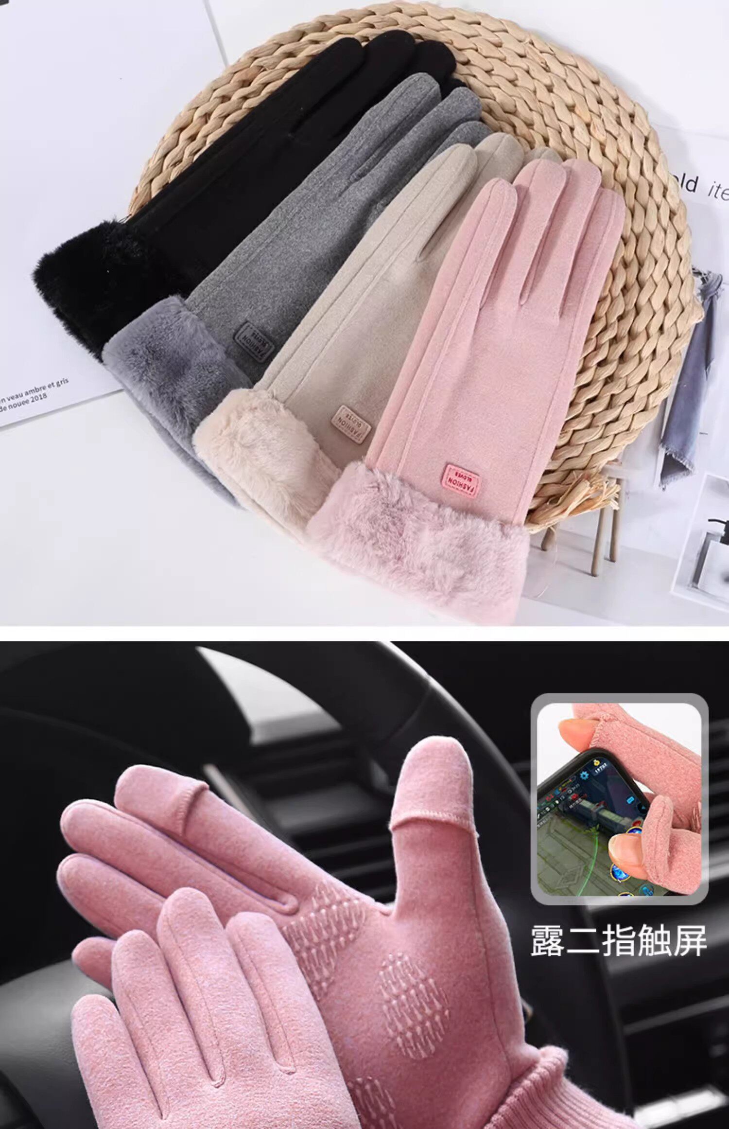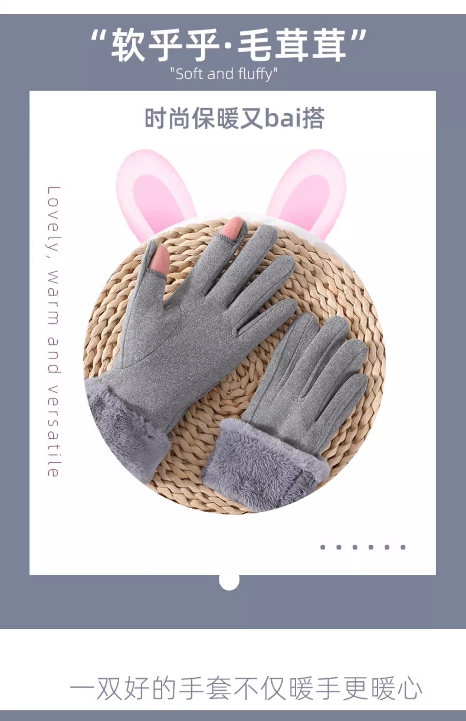 Women's new winter gloves for students with flip-top revealing two-finger touch screen leaking fingers plus velvet and thickening to keep warm and cold-proof for riding