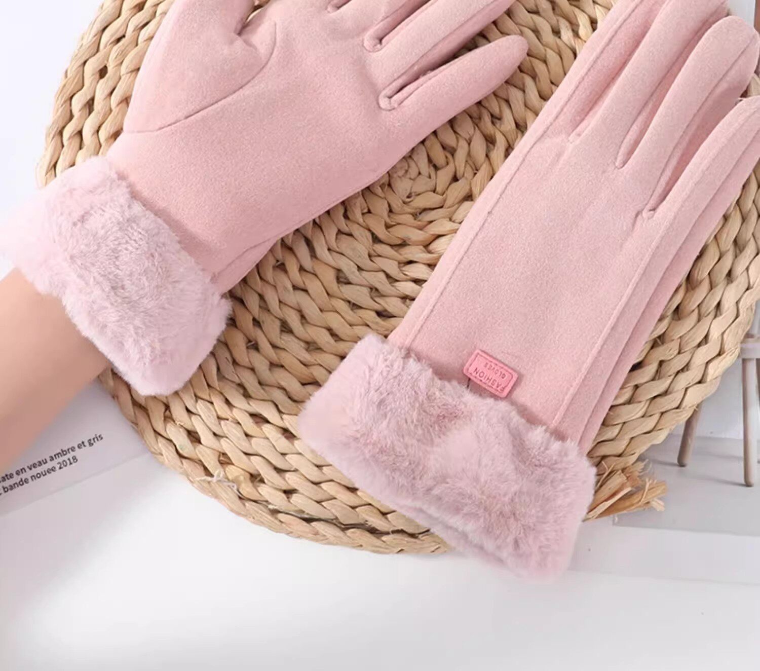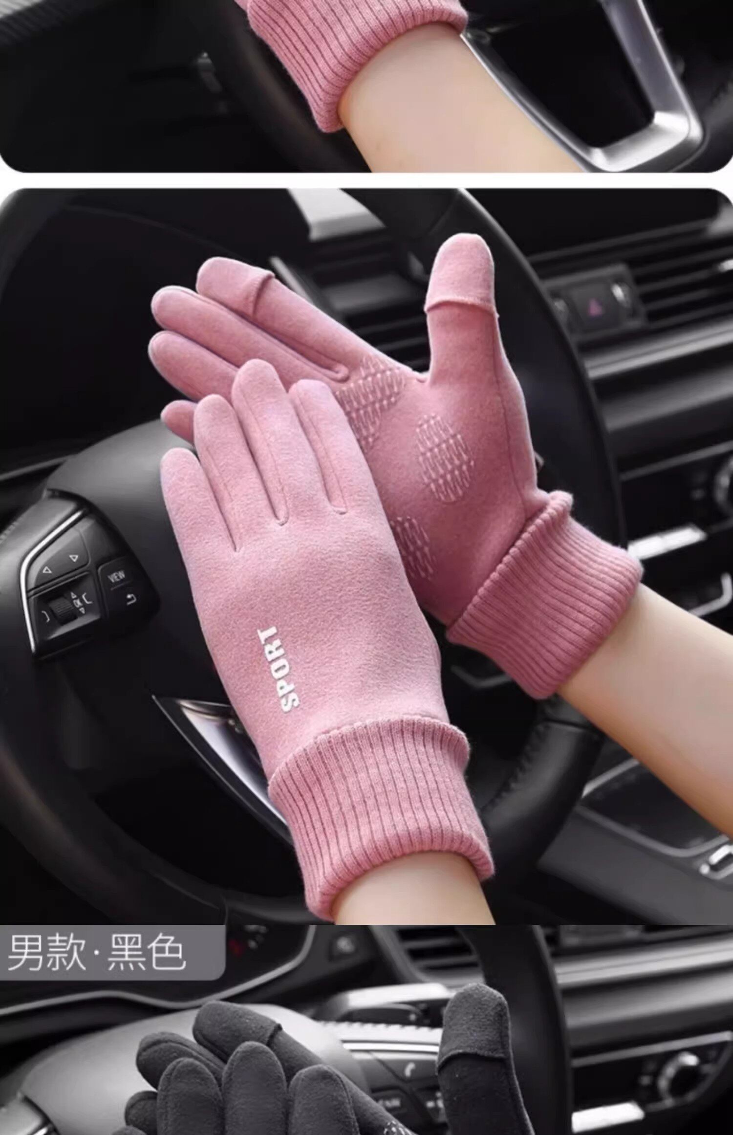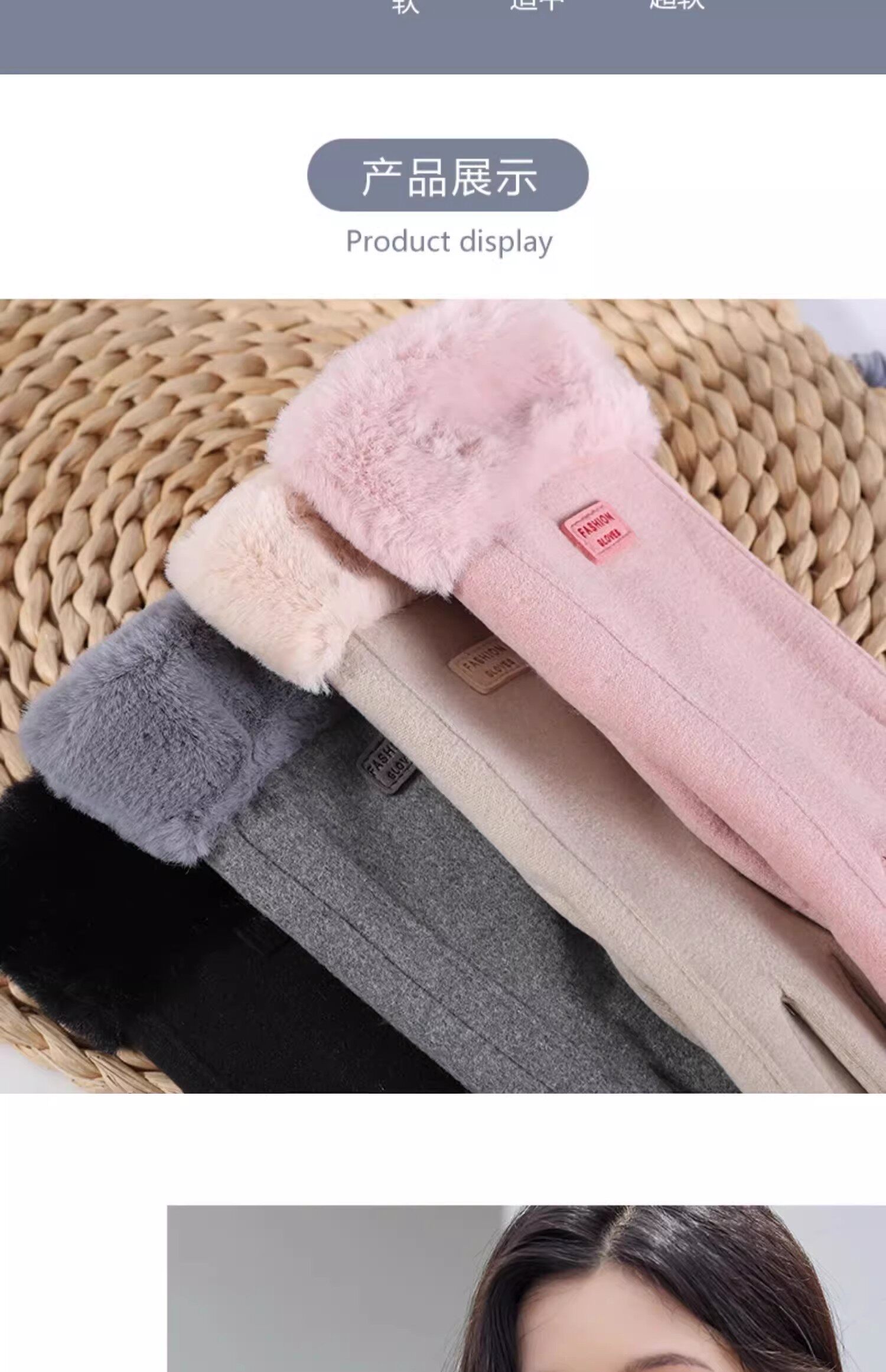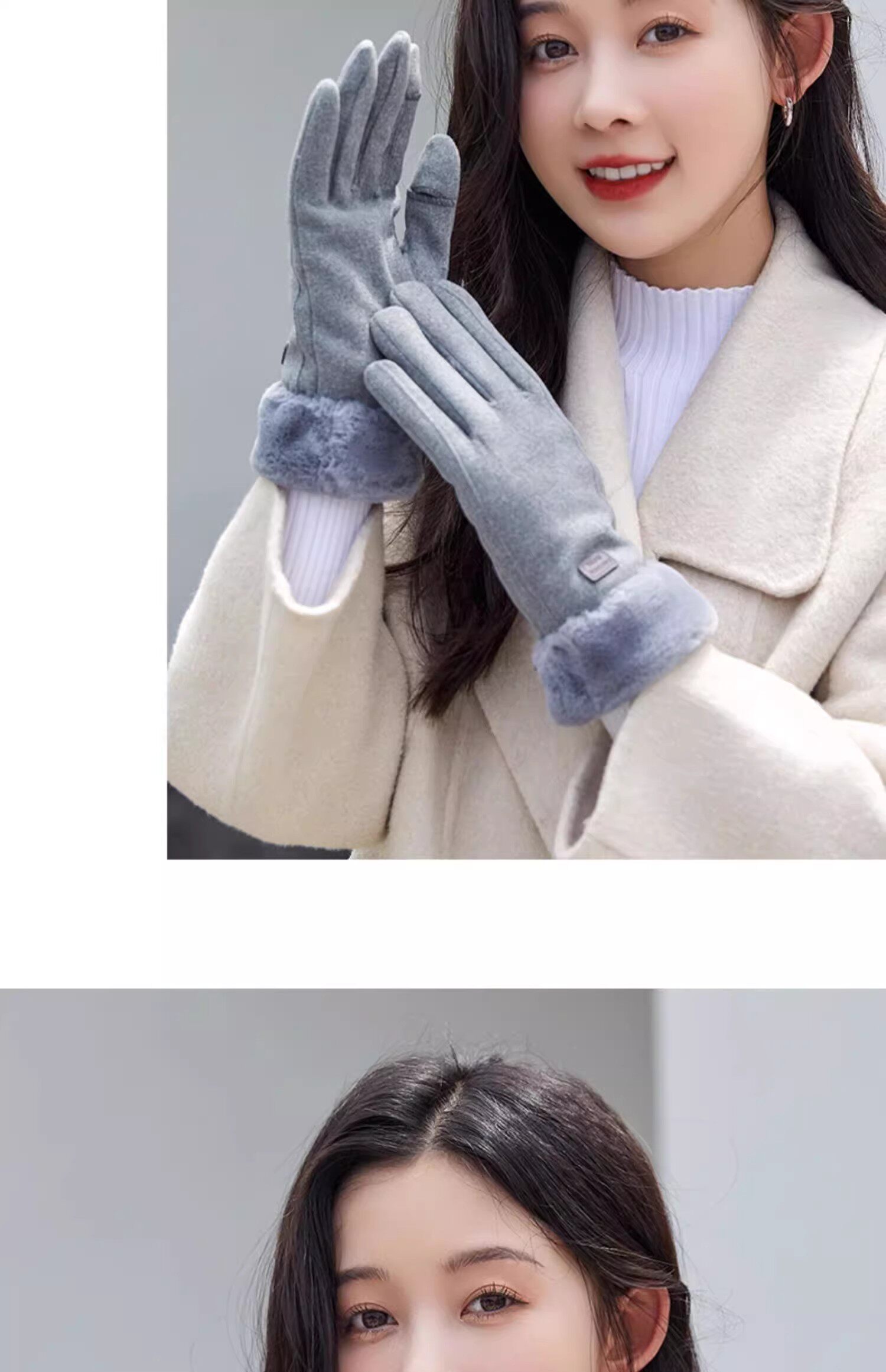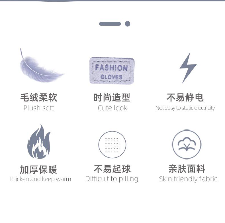 Women's new winter gloves for students with flip-top revealing two-finger touch screen leaking fingers plus velvet and thickening to keep warm and cold-proof for riding