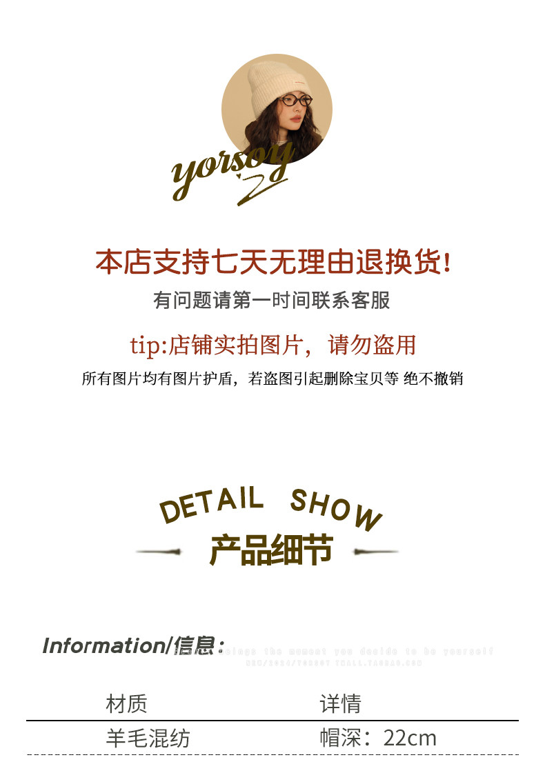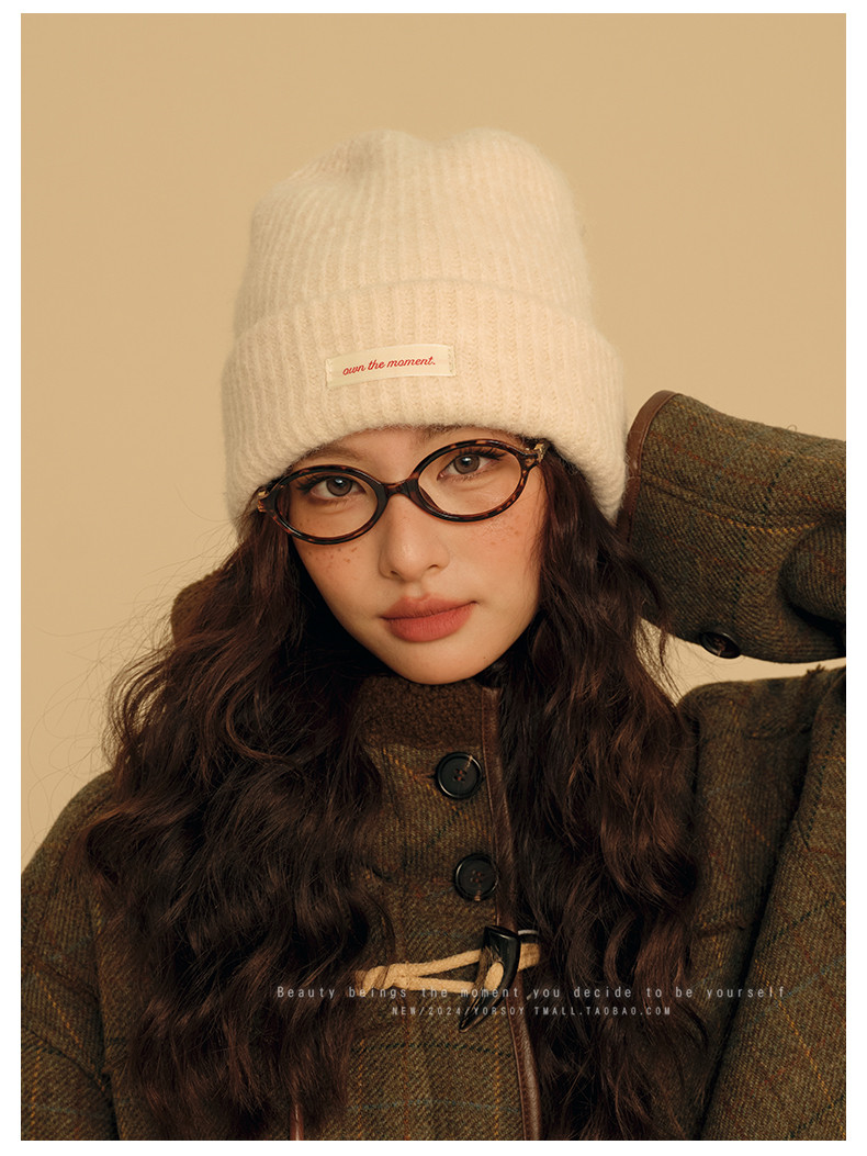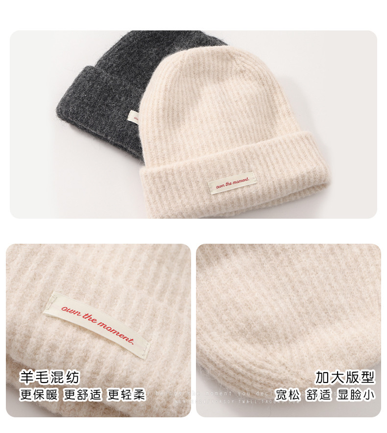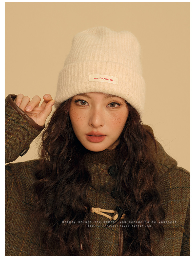 Wool Off-White College-Style Knitted Beanie for Women, Winter Warm Thickened Ear-Protecting Slouchy Hat