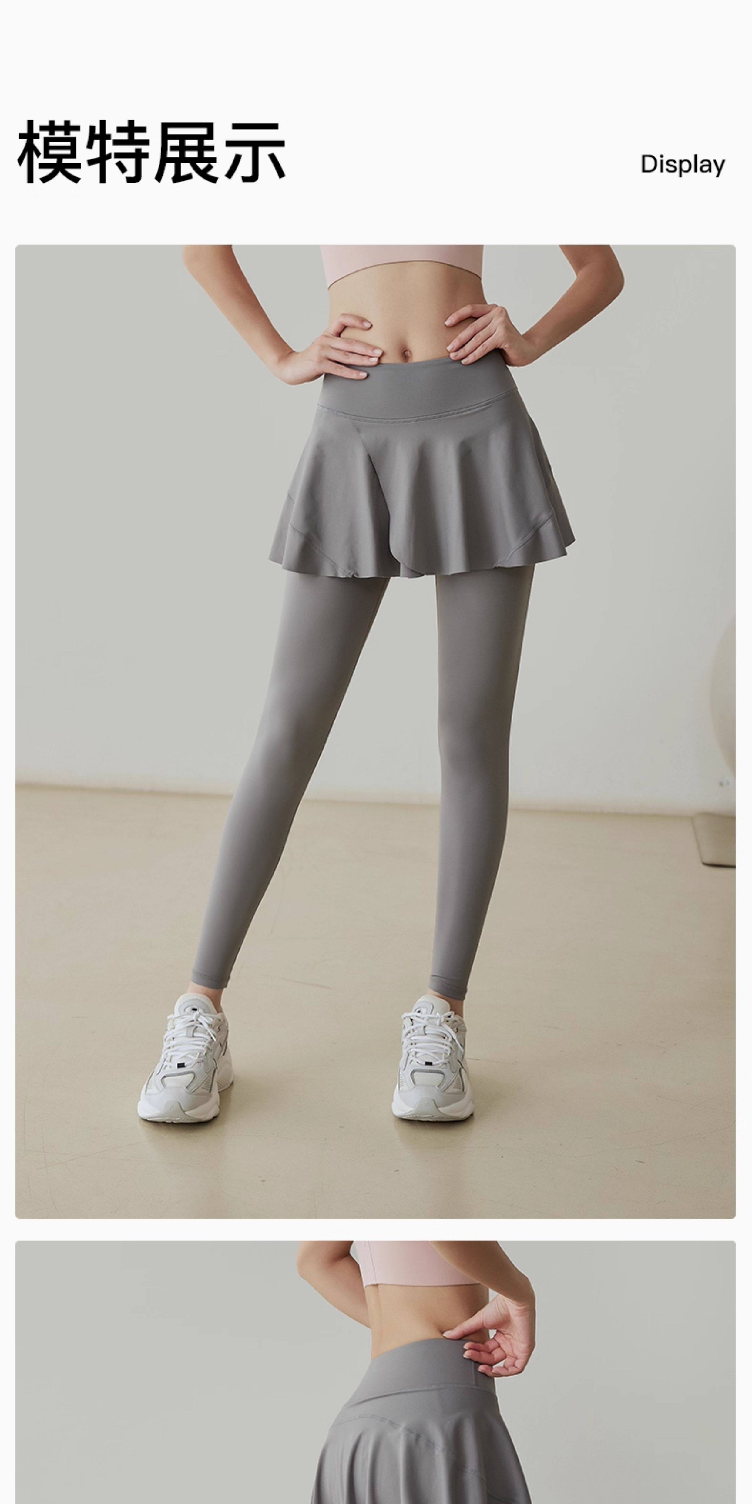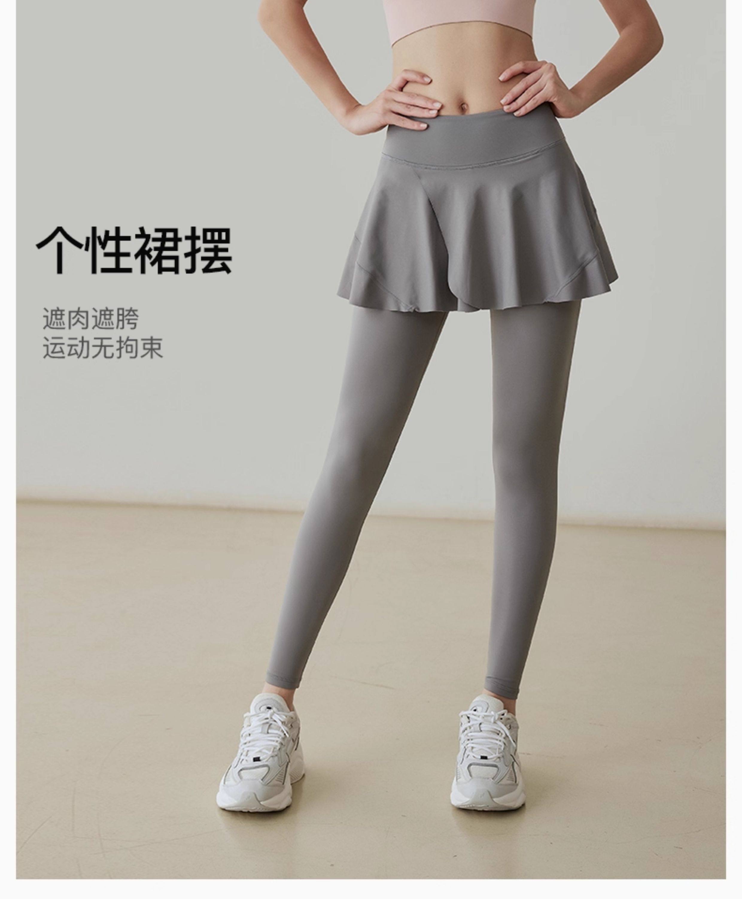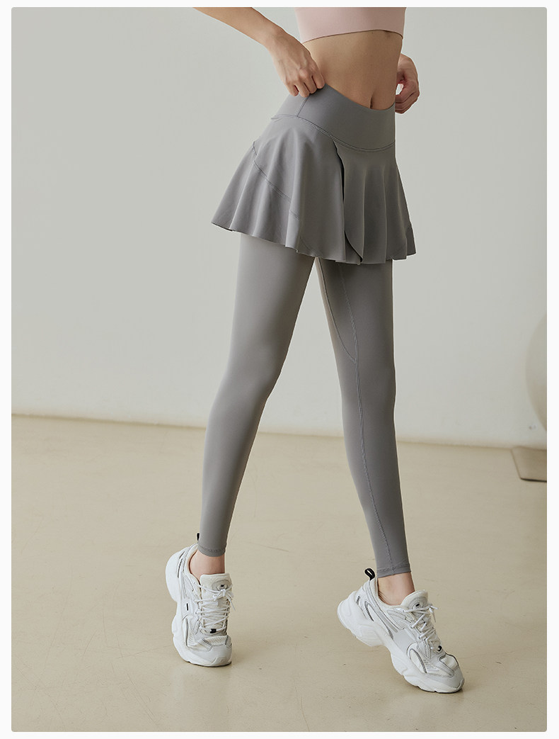Fake two-piece yoga pants for women, high-waisted hip-lifting sports running tight dance skirt, light-proof, quick-drying, spring and autumn fitness pants