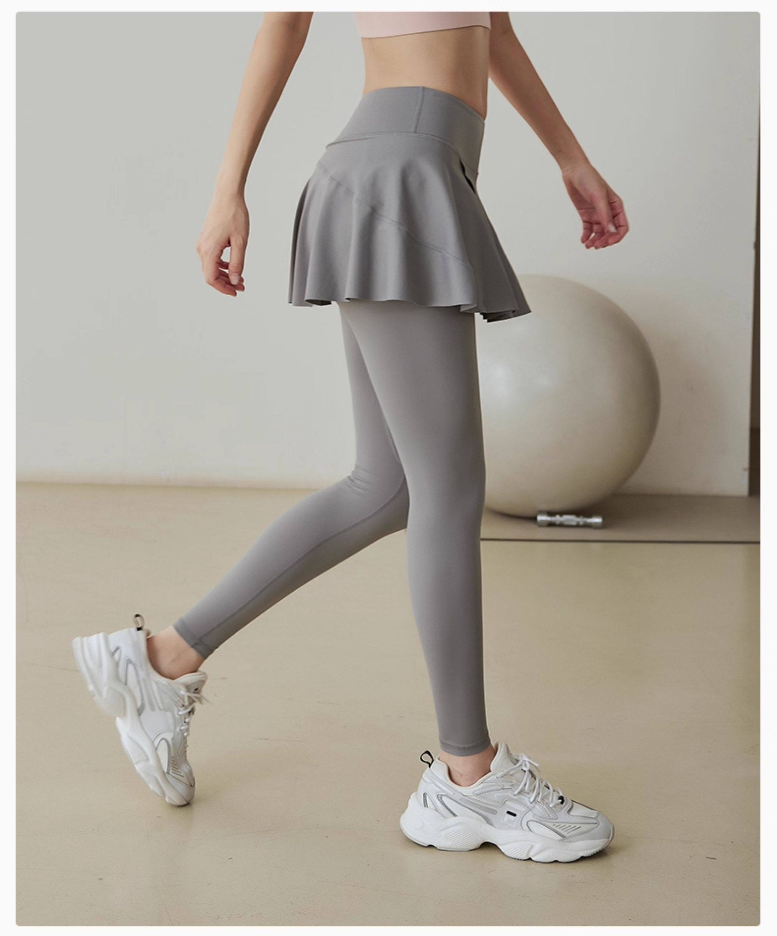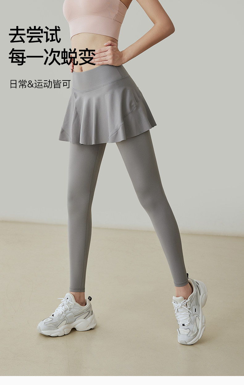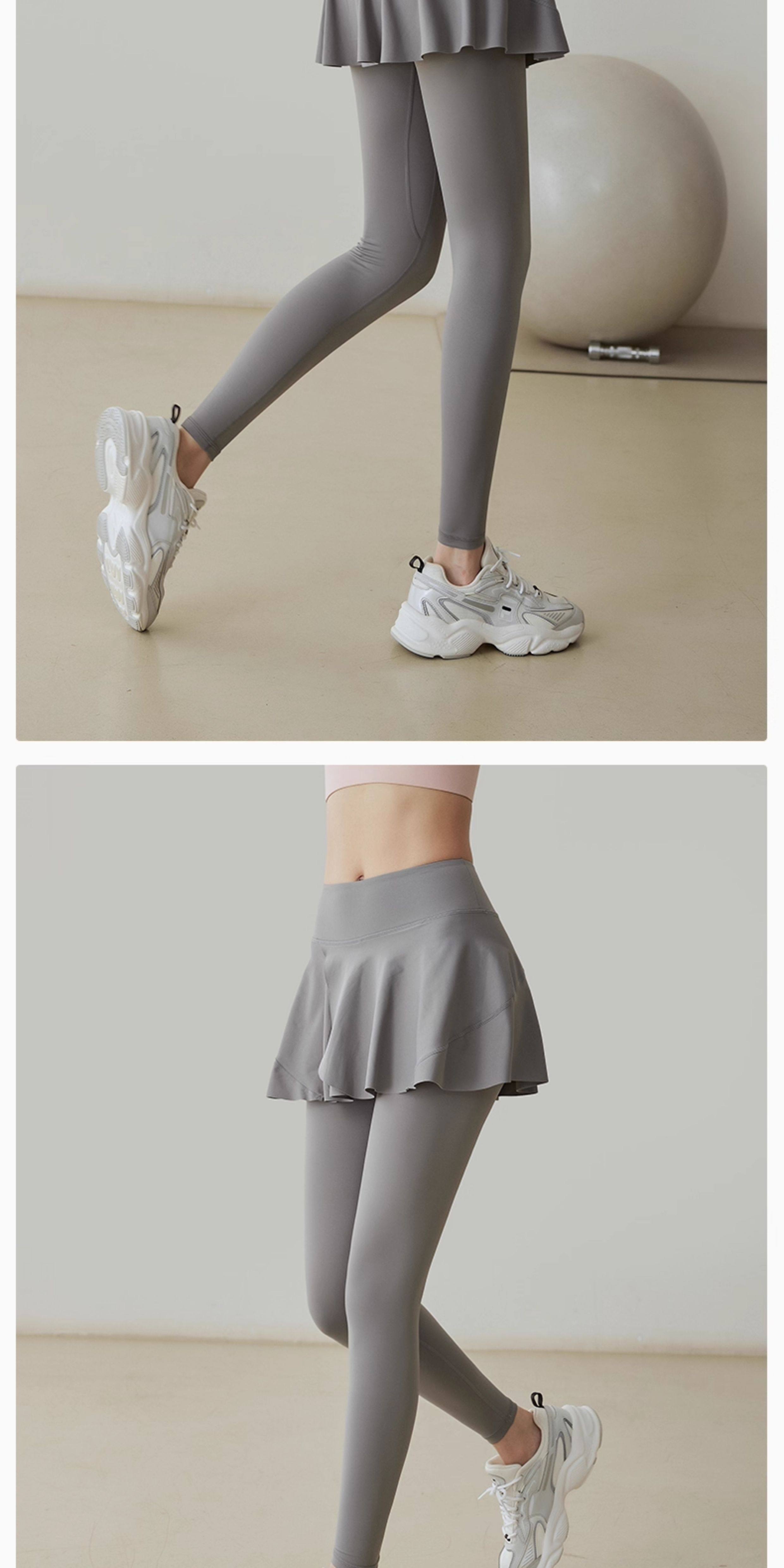 Fake two-piece yoga pants for women, high-waisted hip-lifting sports running tight dance skirt, light-proof, quick-drying, spring and autumn fitness pants
