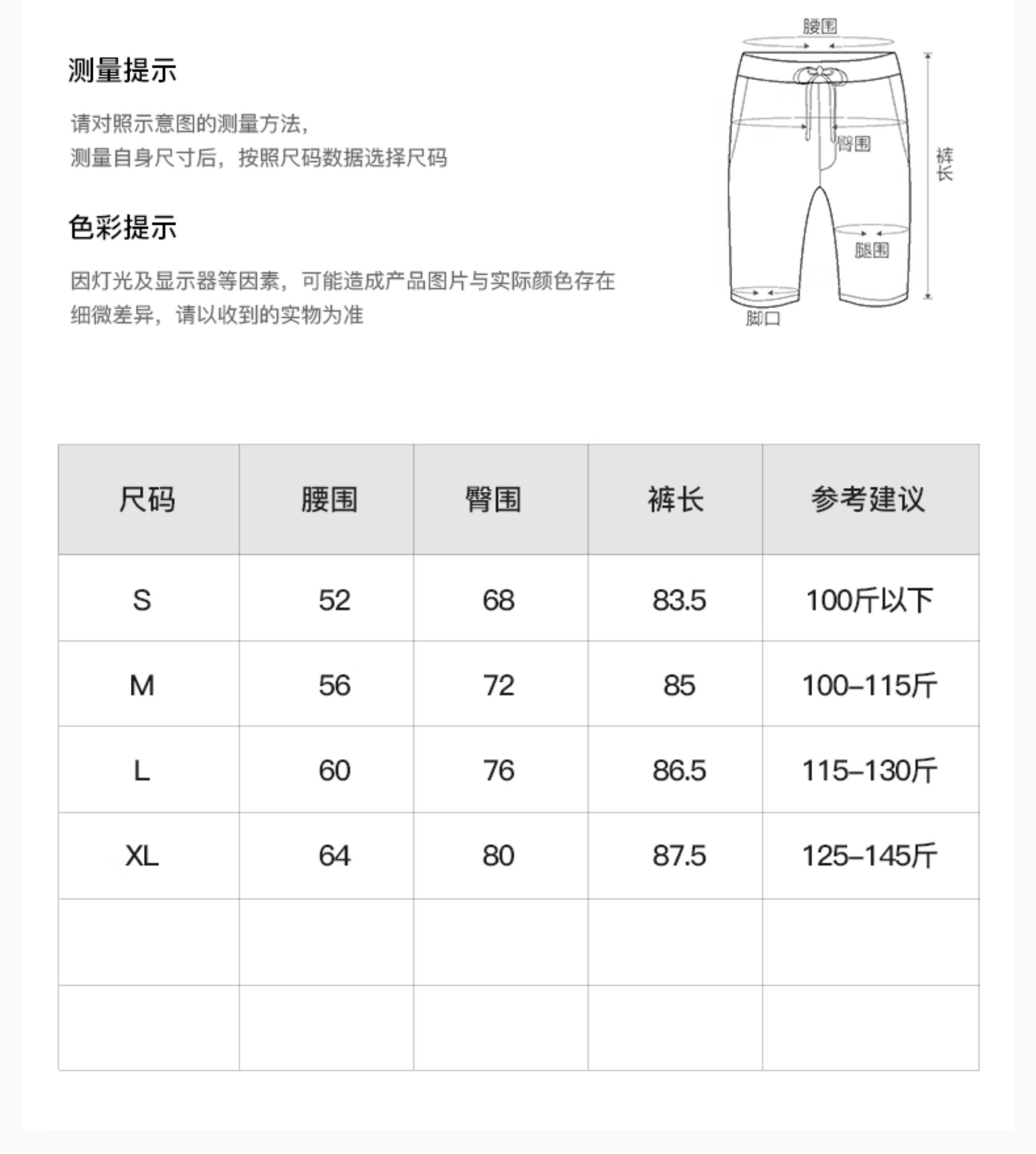 Size S (recommended below 100),M (recommended 100-115 Jin Jin equals 0.5 kg),L (recommends that 115-130 Jin Jin is equal to 0.5 kg),XL (recommended 125-145 Jin Jin equals 0.5 kg)